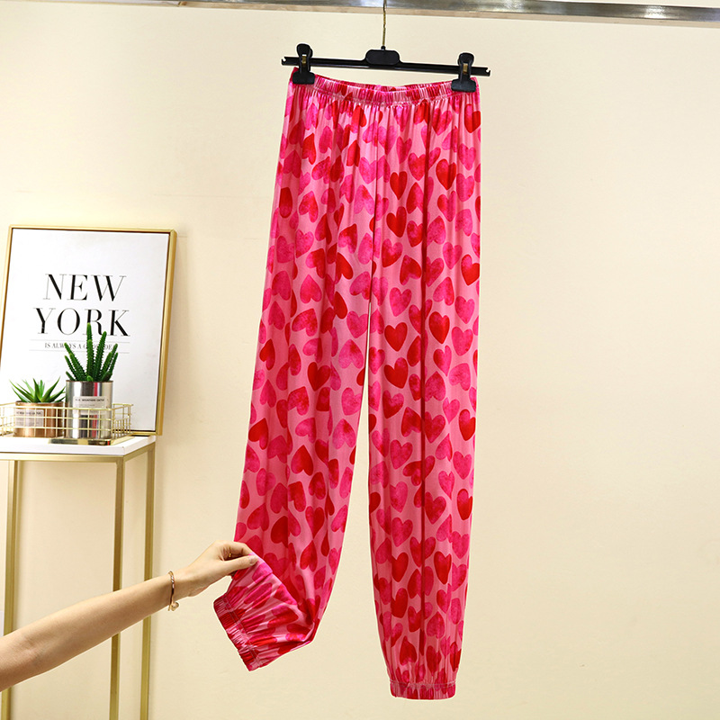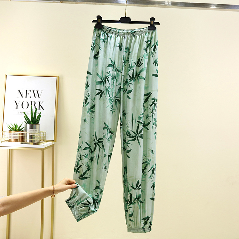 면 실크 블루머스 여성의 여름 성인 안티 모기 바지 비치 바지 인공 면 잠옷 캐주얼 느슨한 발목 바지