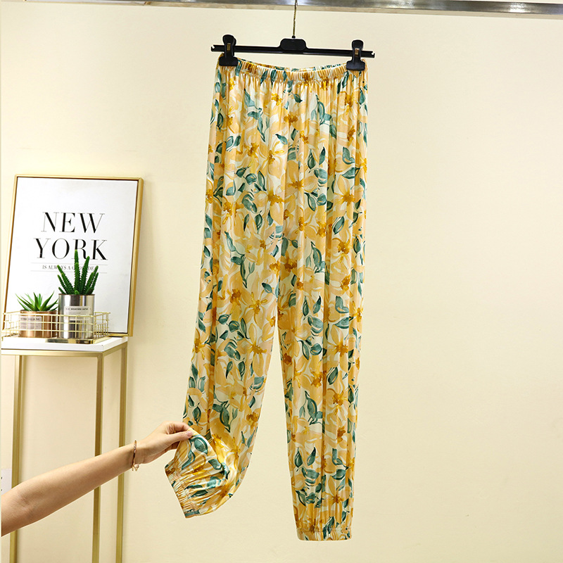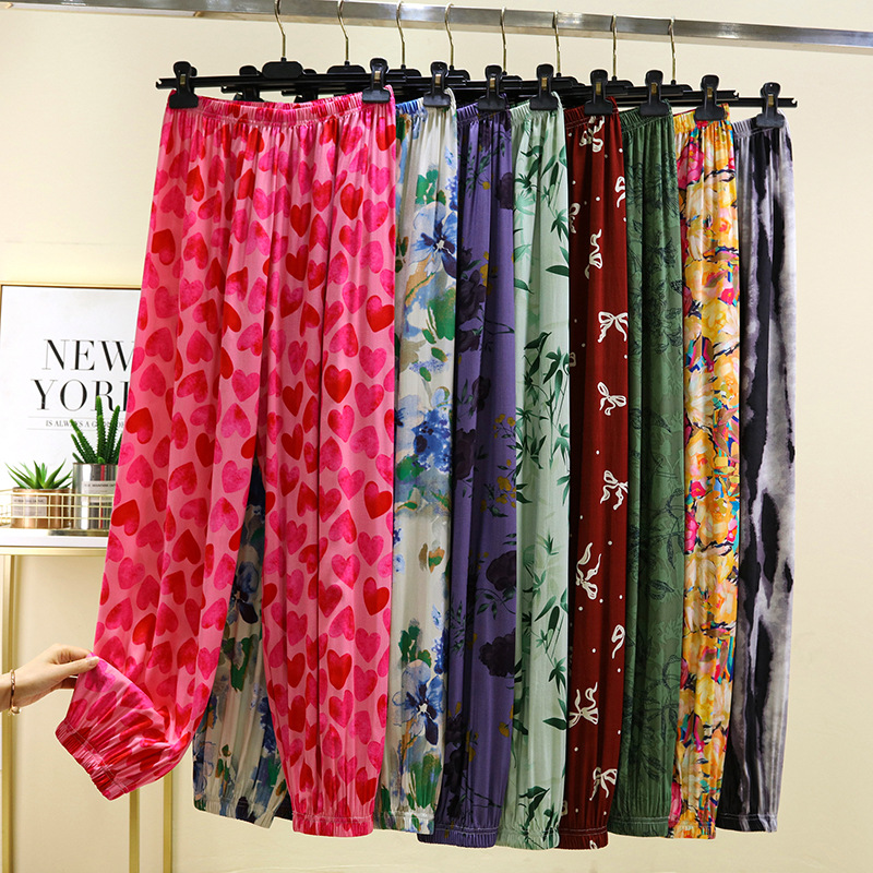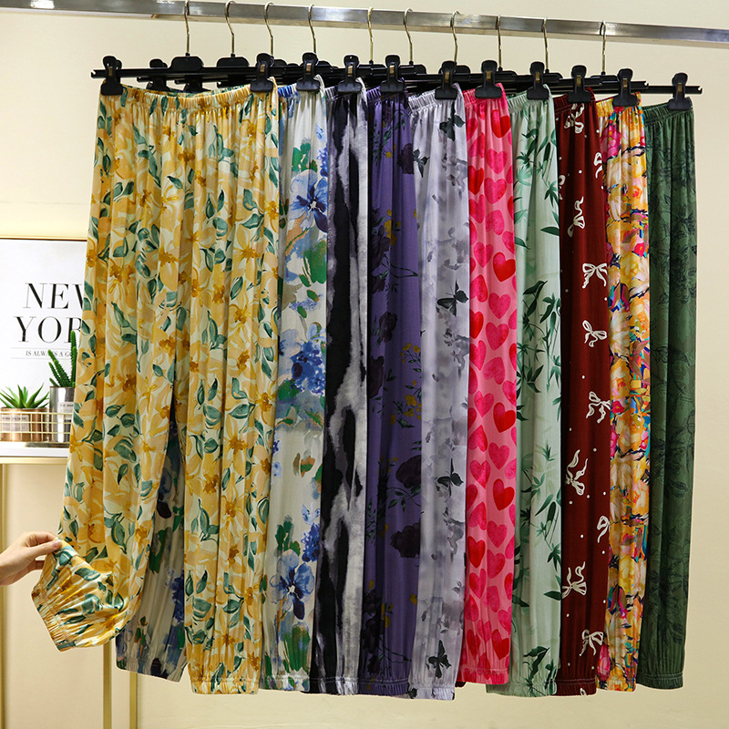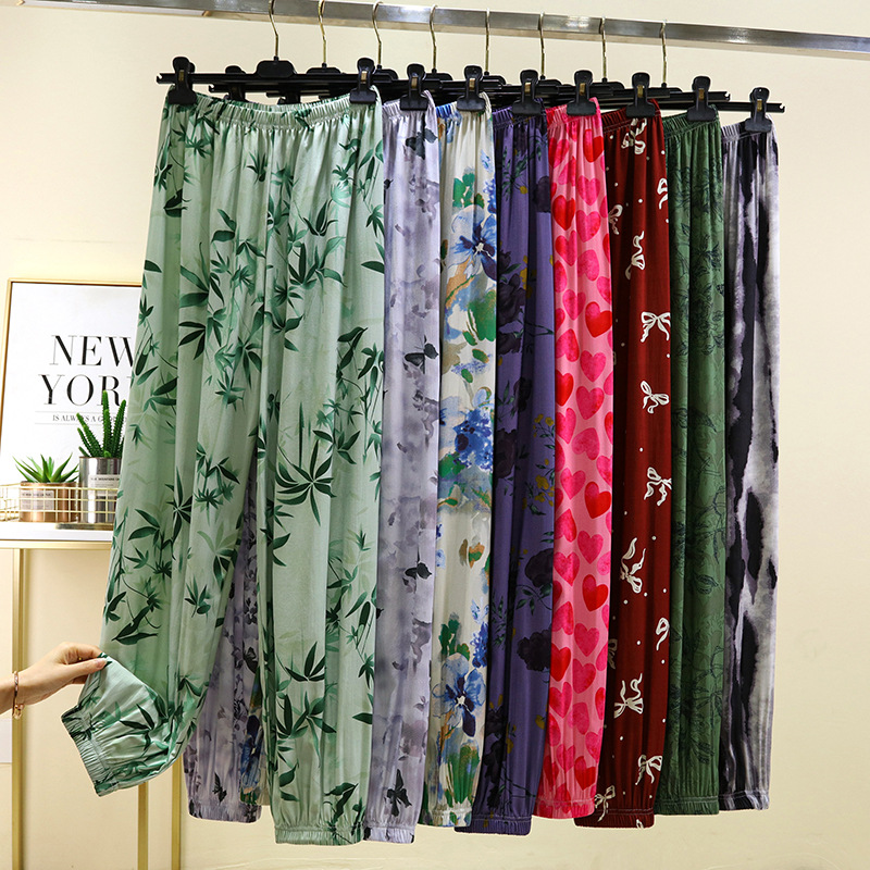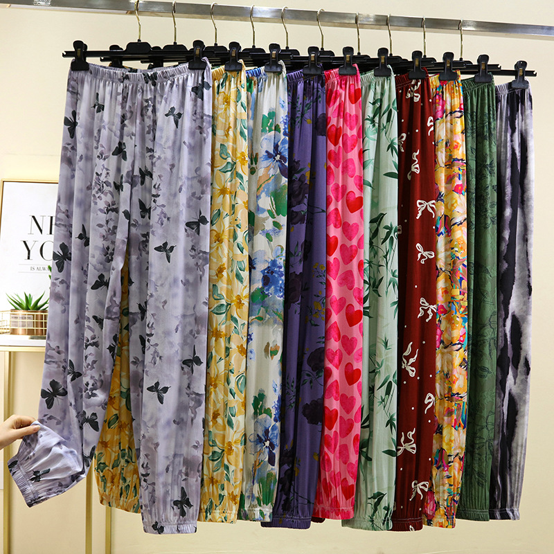 면 실크 블루머스 여성의 여름 성인 안티 모기 바지 비치 바지 인공 면 잠옷 캐주얼 느슨한 발목 바지스토어 가기
