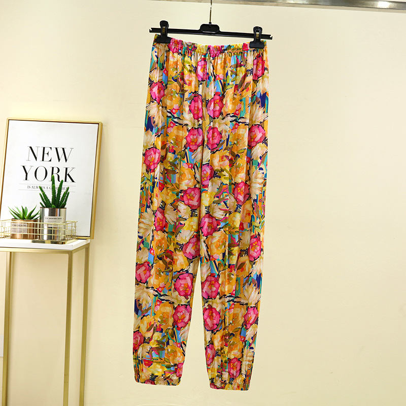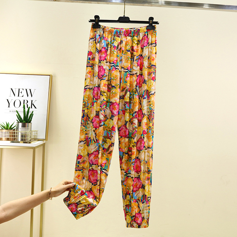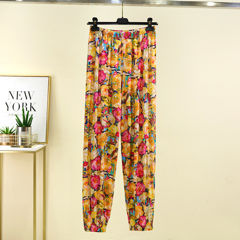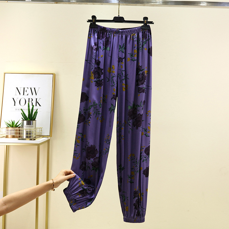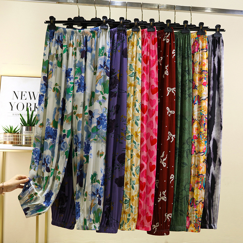 면 실크 블루머스 여성의 여름 성인 안티 모기 바지 비치 바지 인공 면 잠옷 캐주얼 느슨한 발목 바지스토어 가기