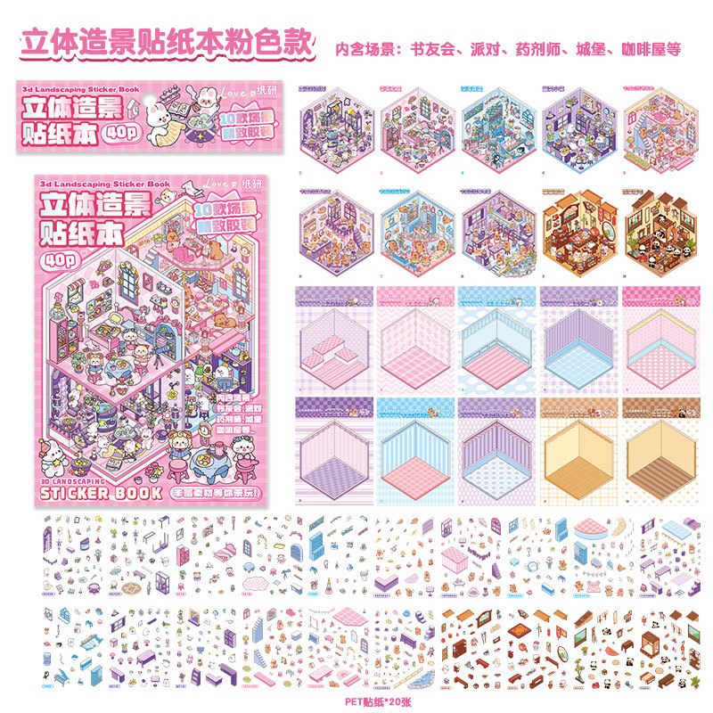 작은 동물 마이크로 스케일 장면 스티커 이 장면 작은 스티커 3D 스태킹 스테레오 비전 마이크로 스케일 캐빈 소녀스토어 가기