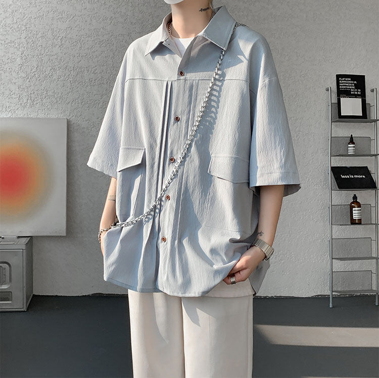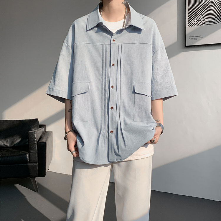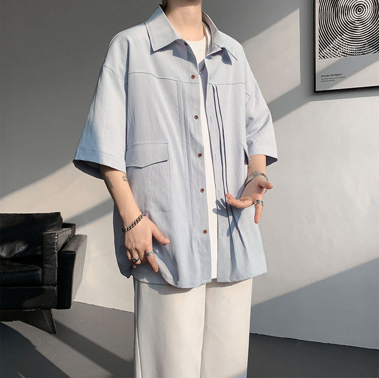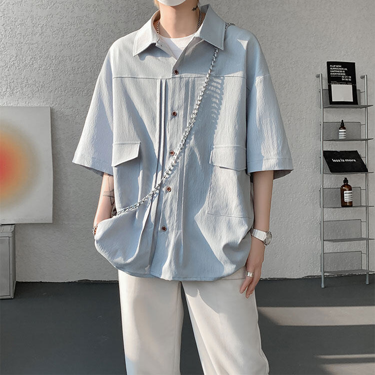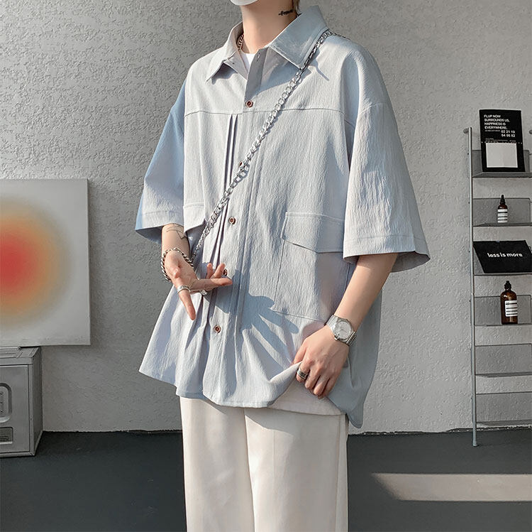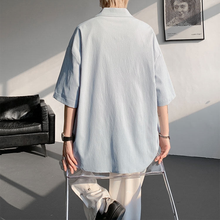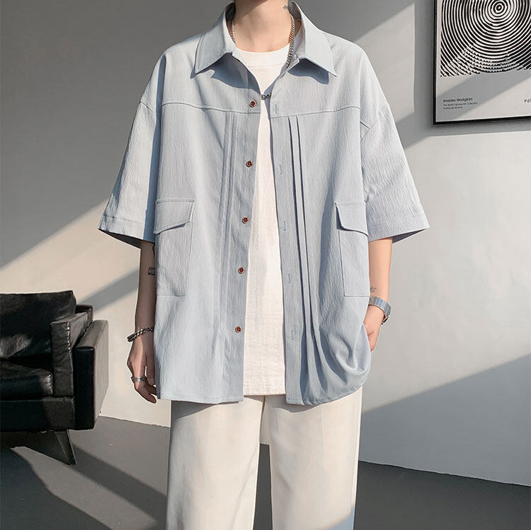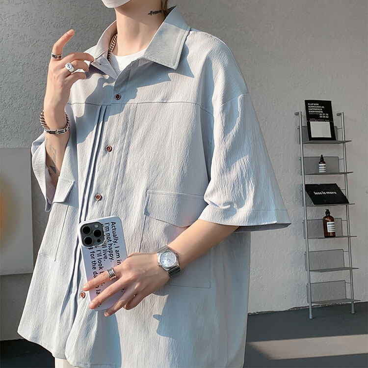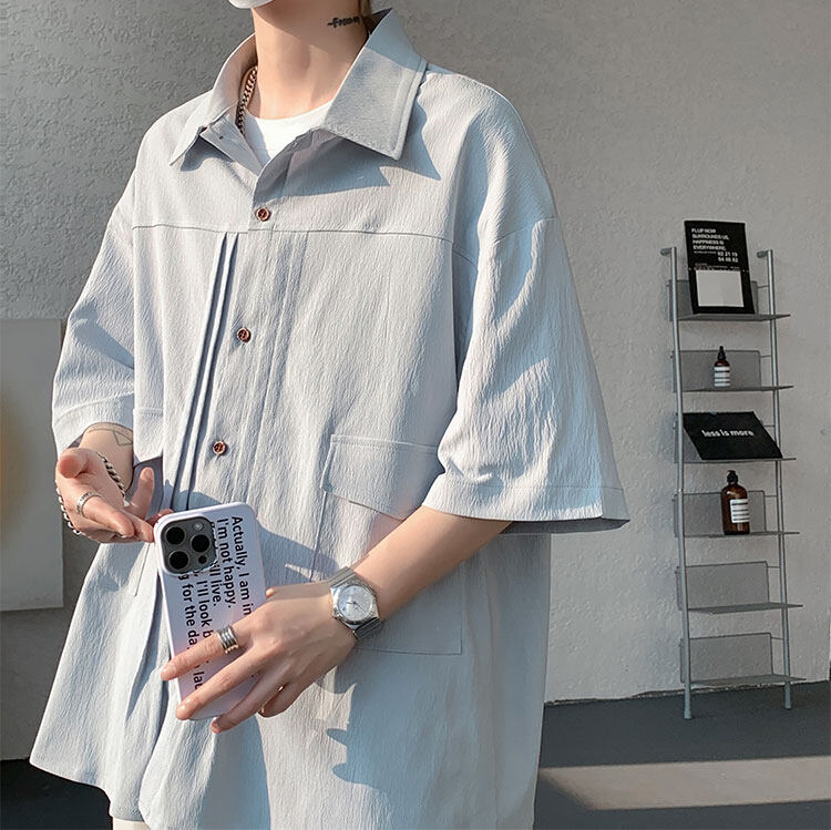 크록 반팔 셔츠 남자의 주름 디자인 아이스 실크 셔츠 여름 새로운 유행 느슨한 플러스 사이즈 반소매 재킷스토어 가기