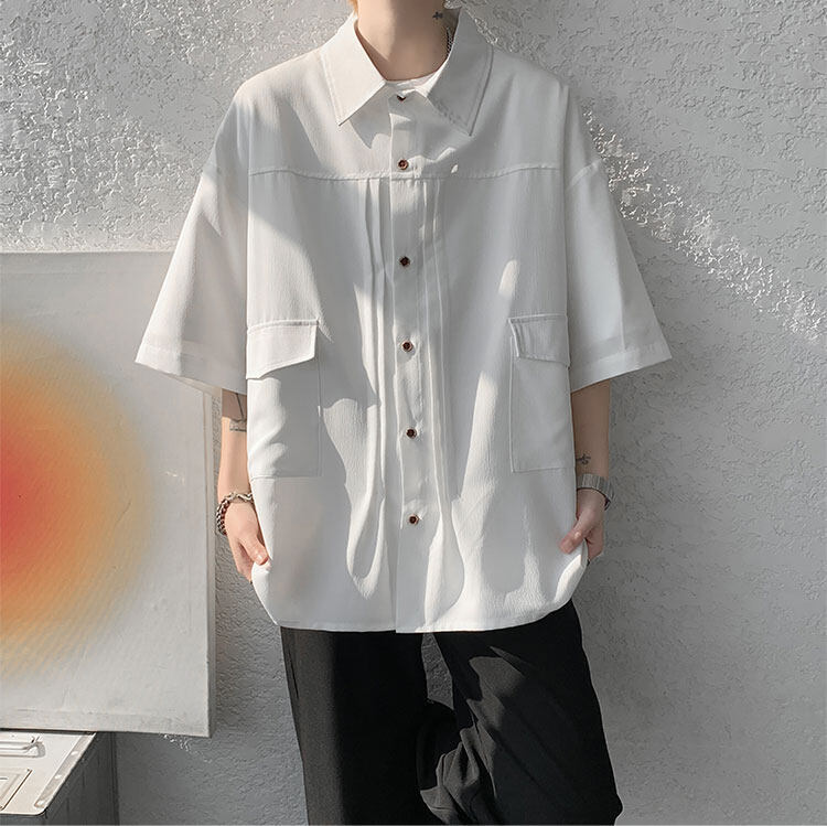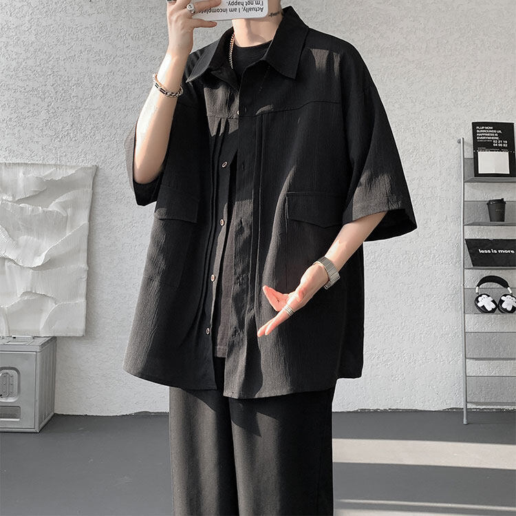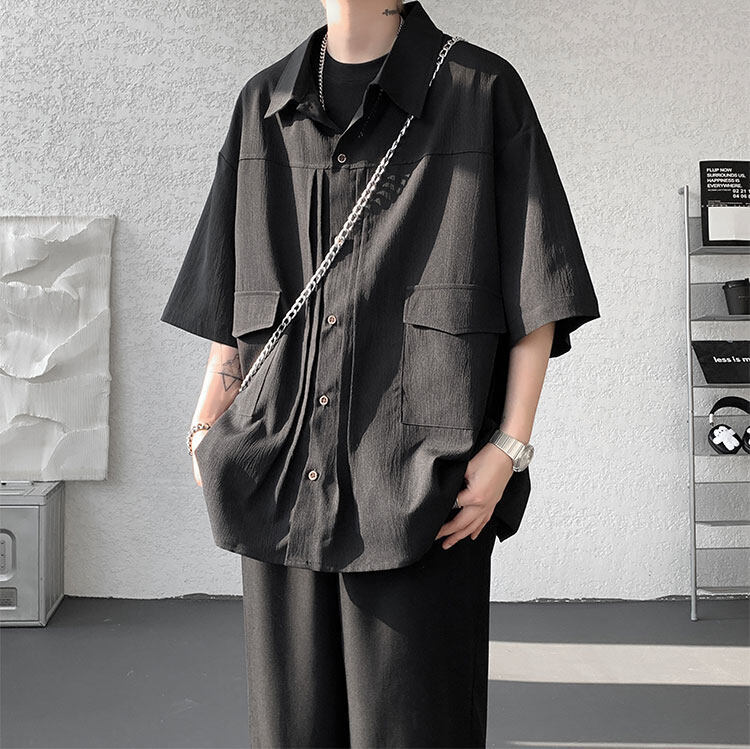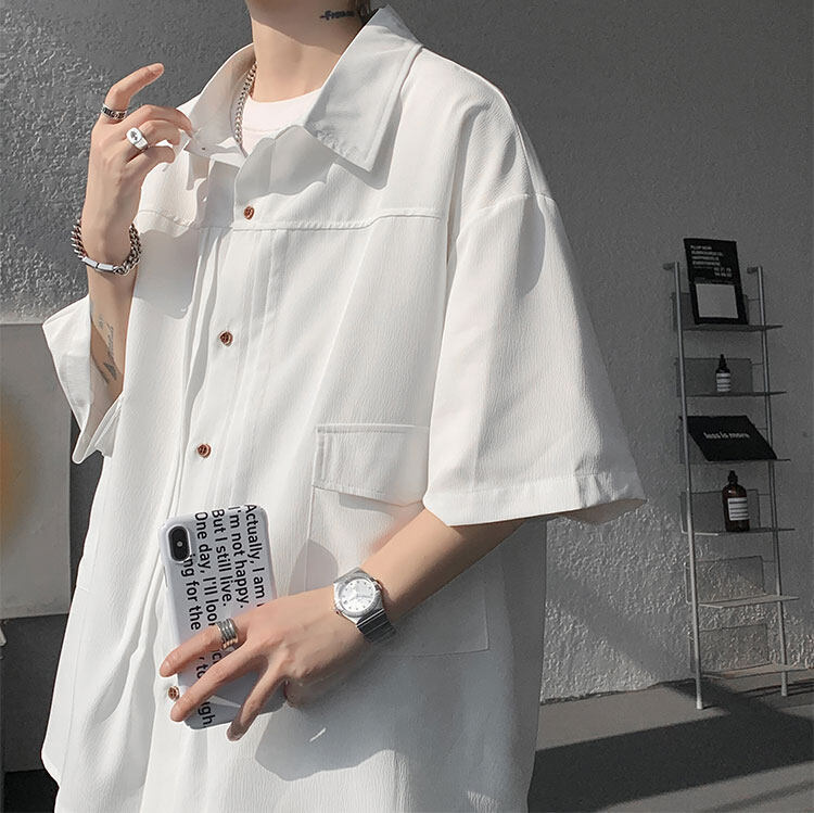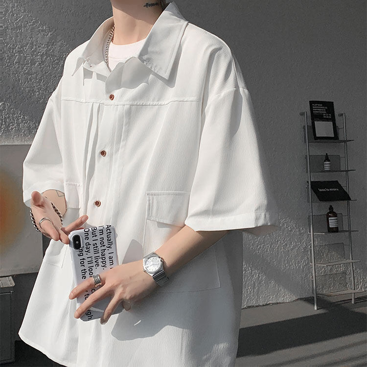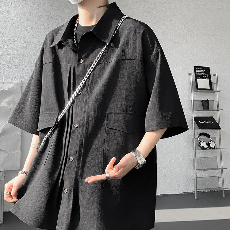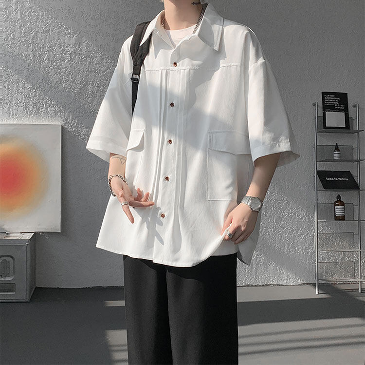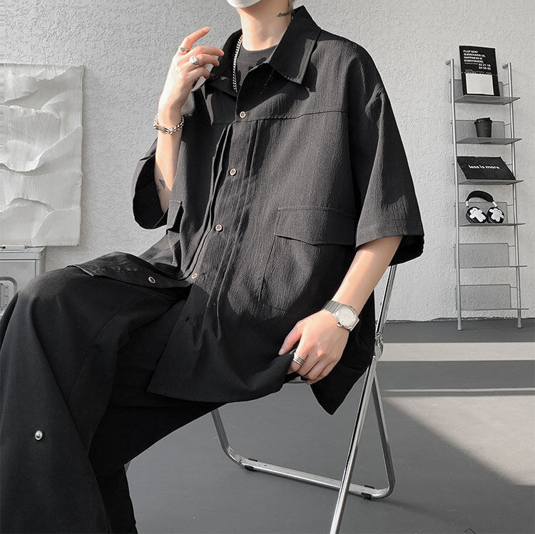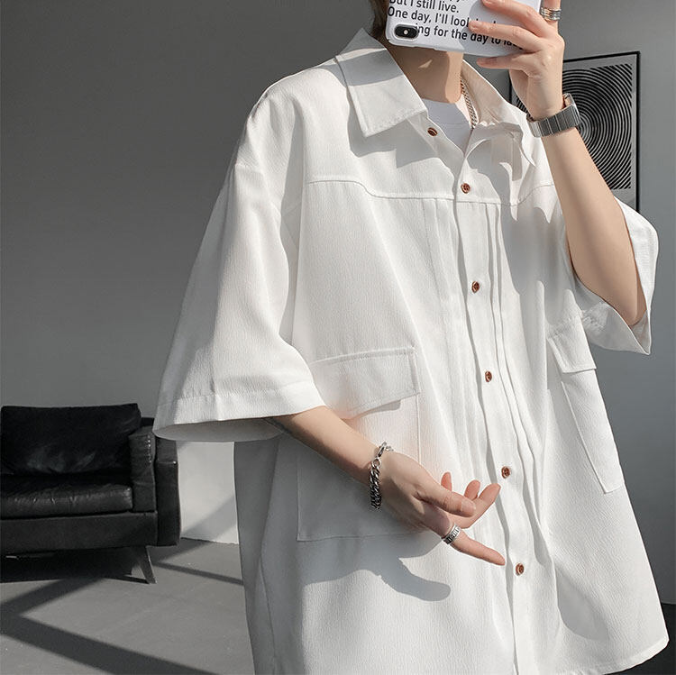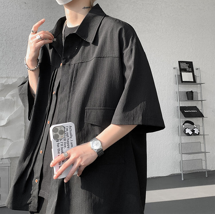 크록 반팔 셔츠 남자의 주름 디자인 아이스 실크 셔츠 여름 새로운 유행 느슨한 플러스 사이즈 반소매 재킷스토어 가기