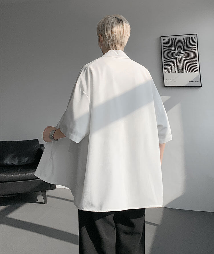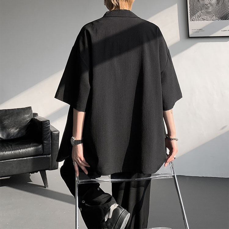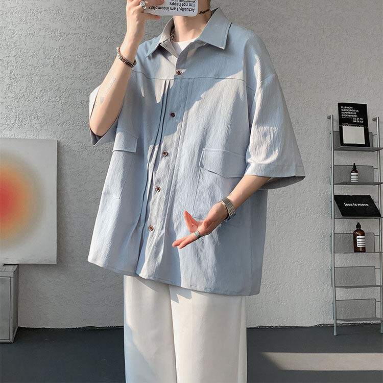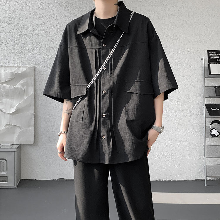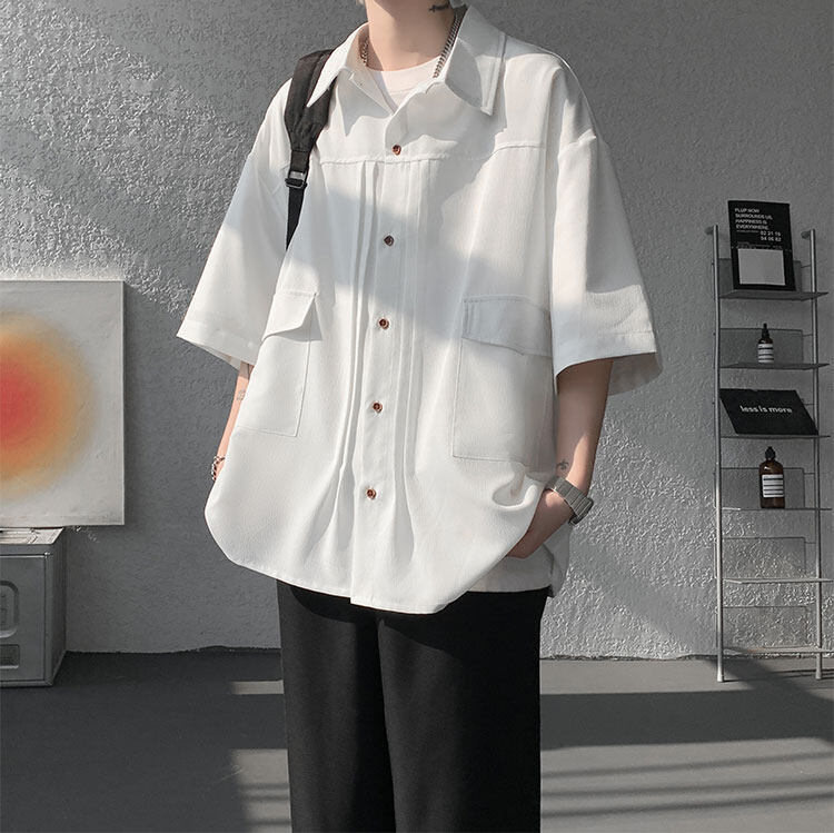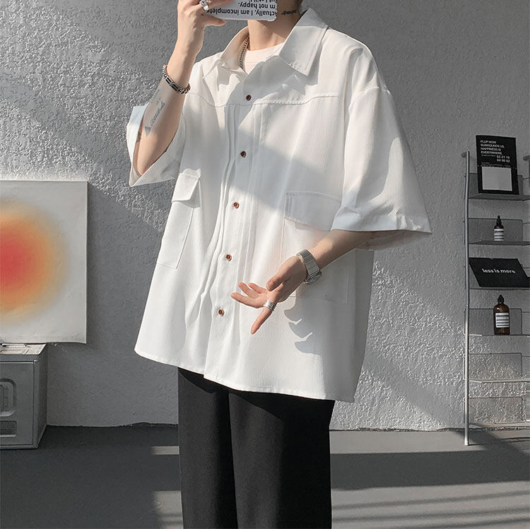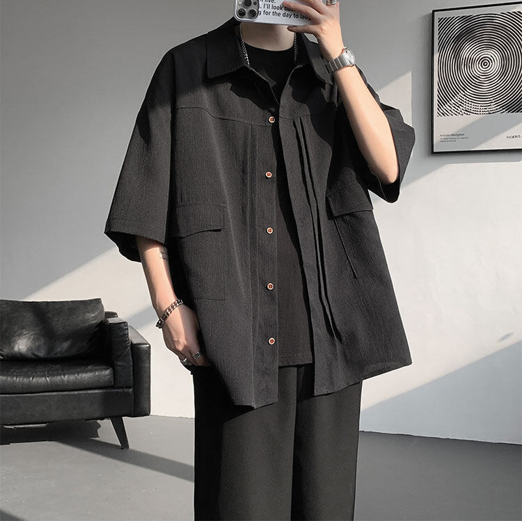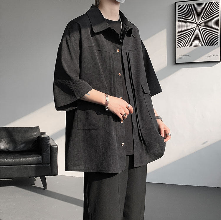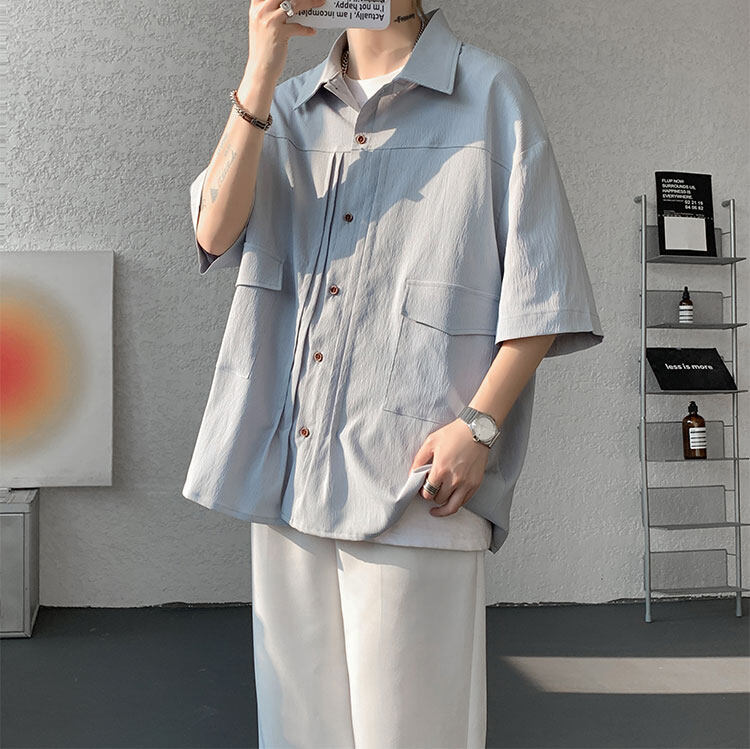 크록 반팔 셔츠 남자의 주름 디자인 아이스 실크 셔츠 여름 새로운 유행 느슨한 플러스 사이즈 반소매 재킷스토어 가기