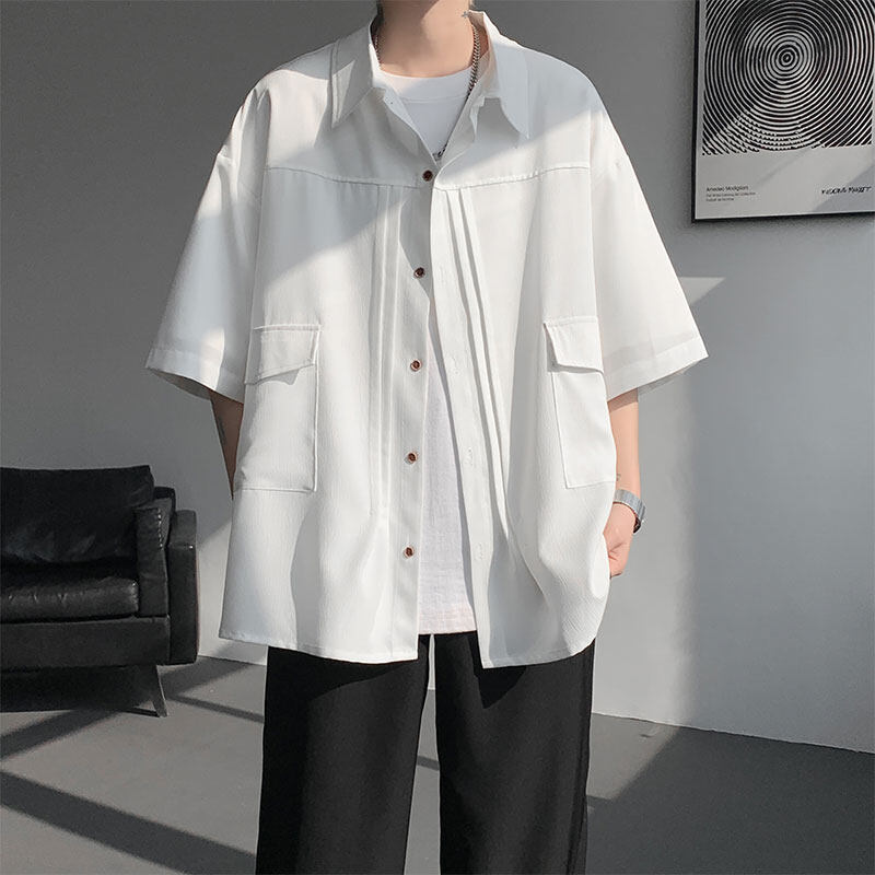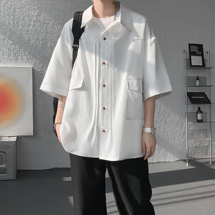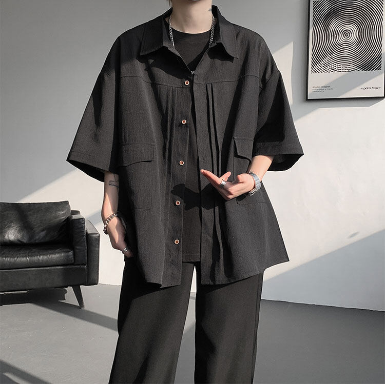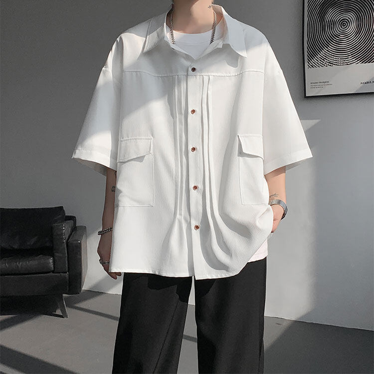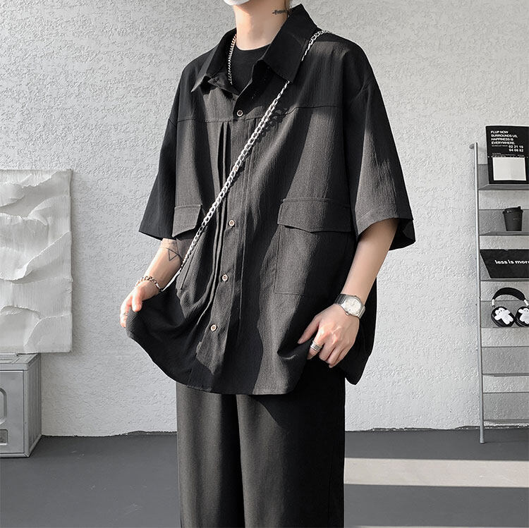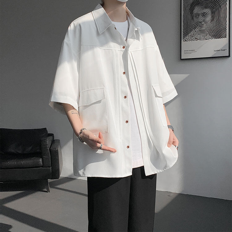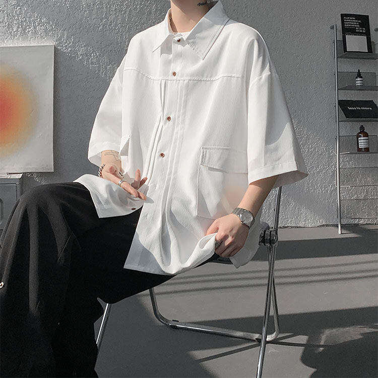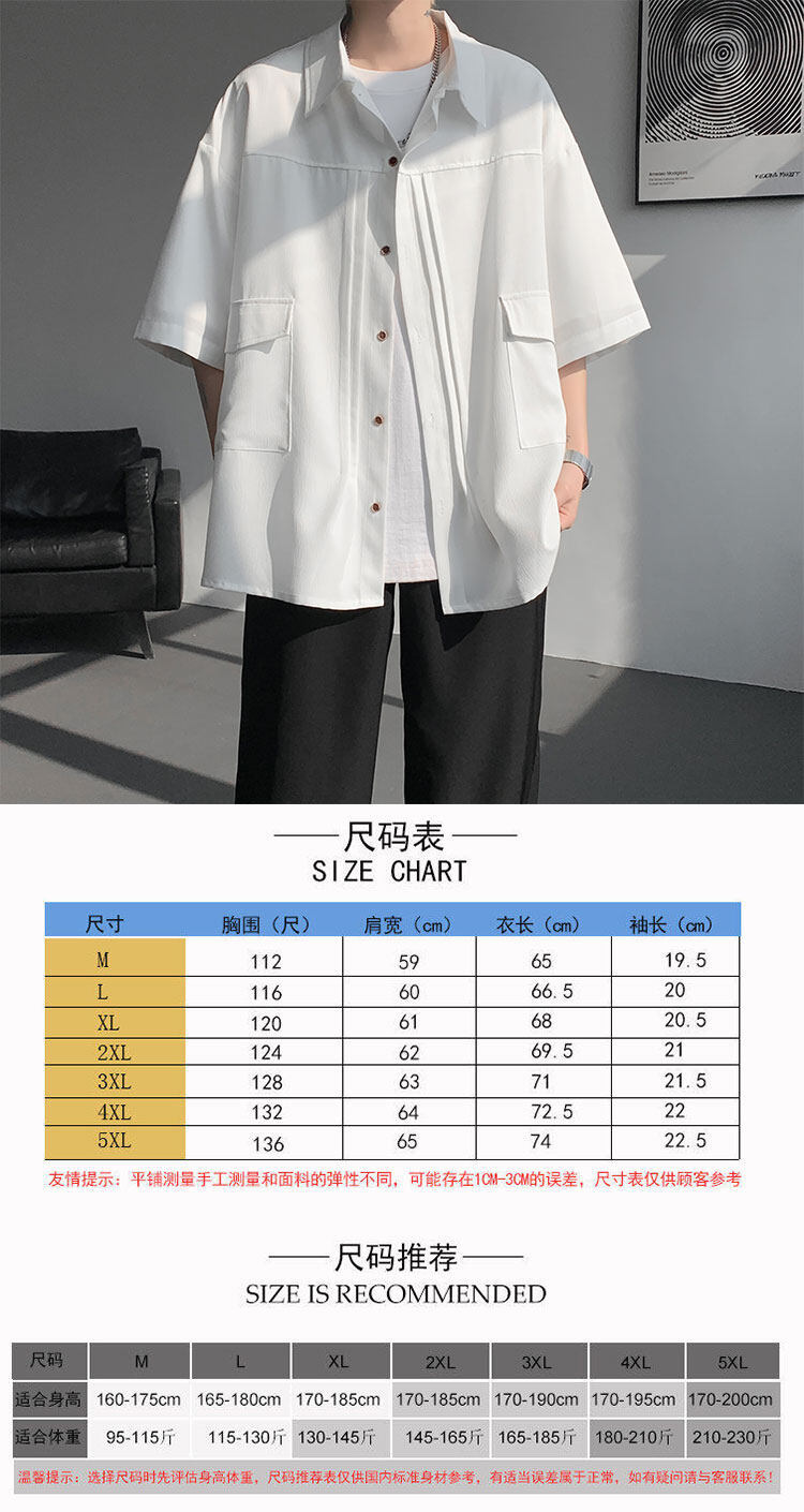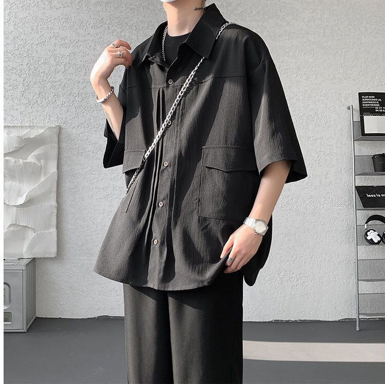 크록 반팔 셔츠 남자의 주름 디자인 아이스 실크 셔츠 여름 새로운 유행 느슨한 플러스 사이즈 반소매 재킷