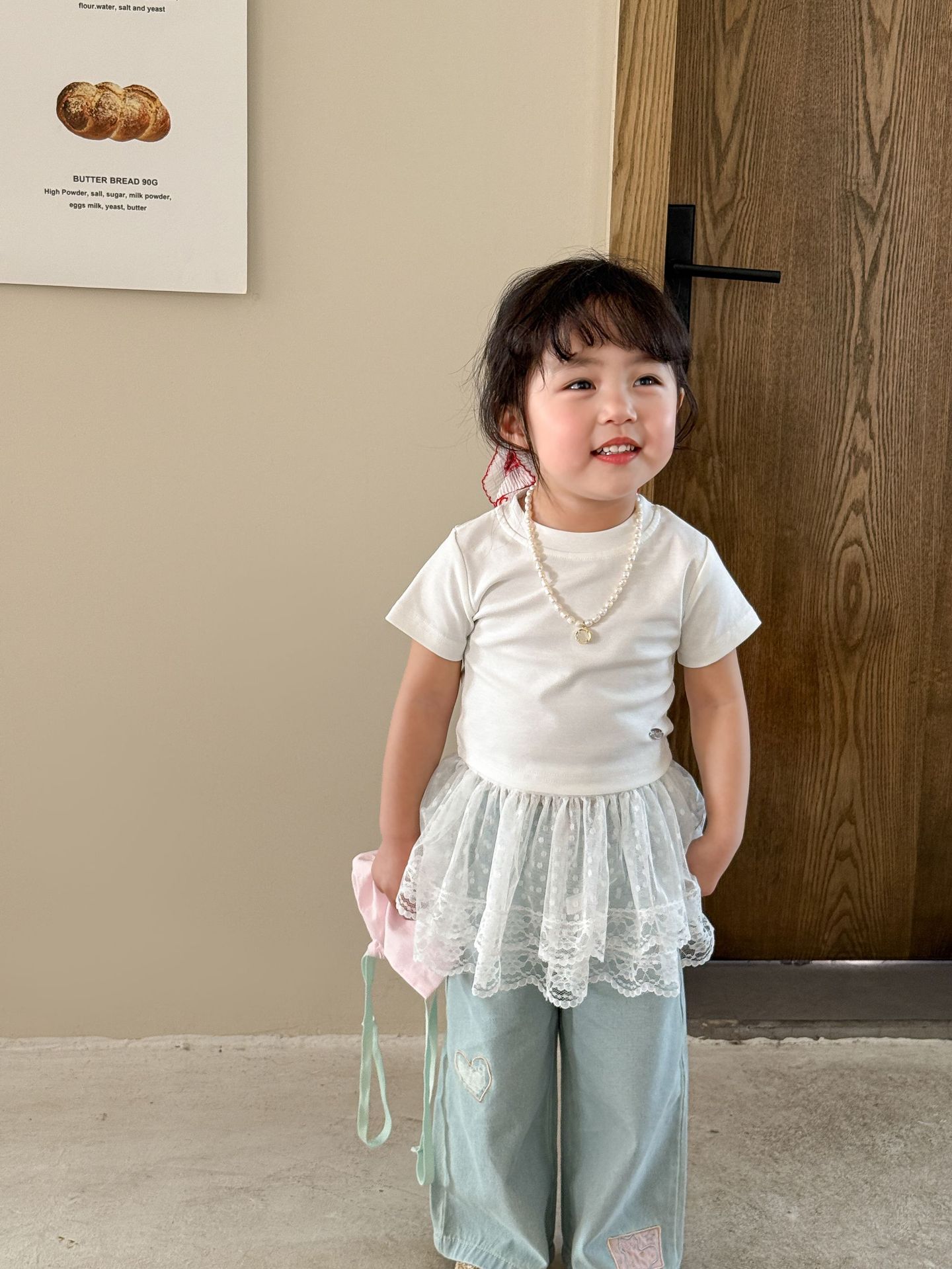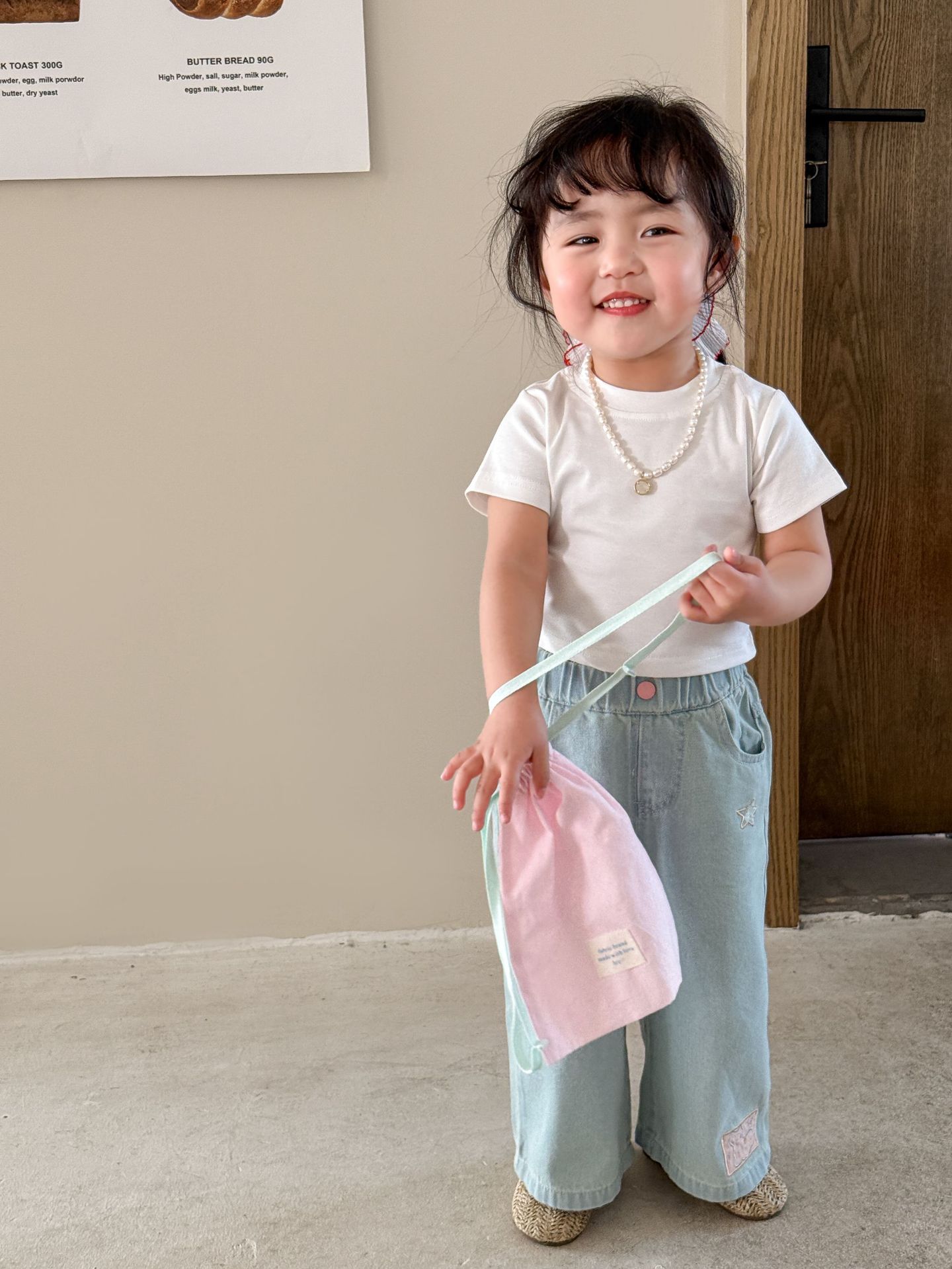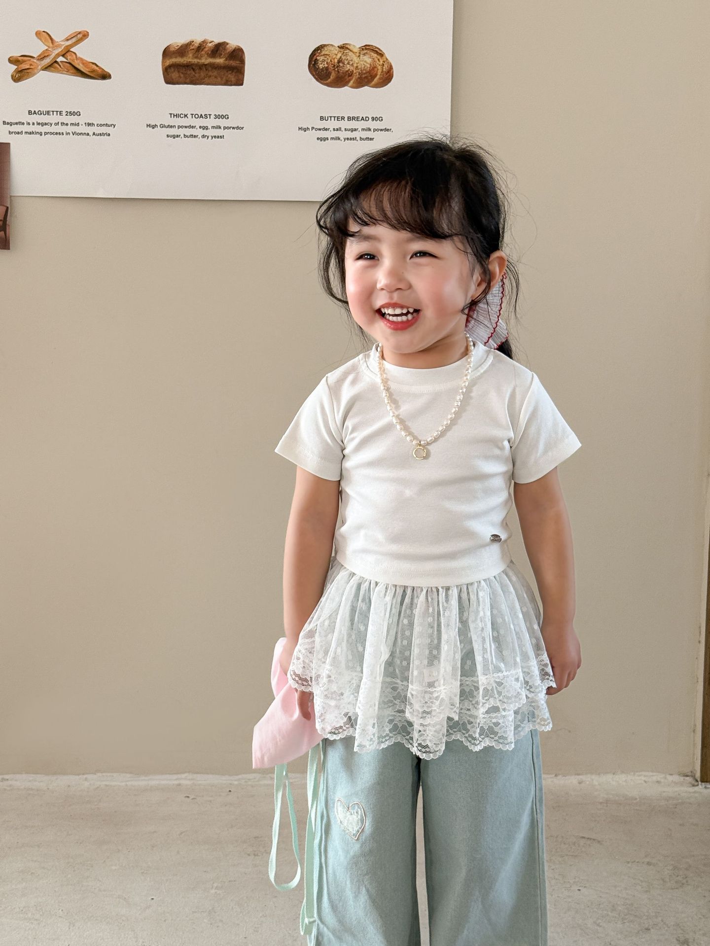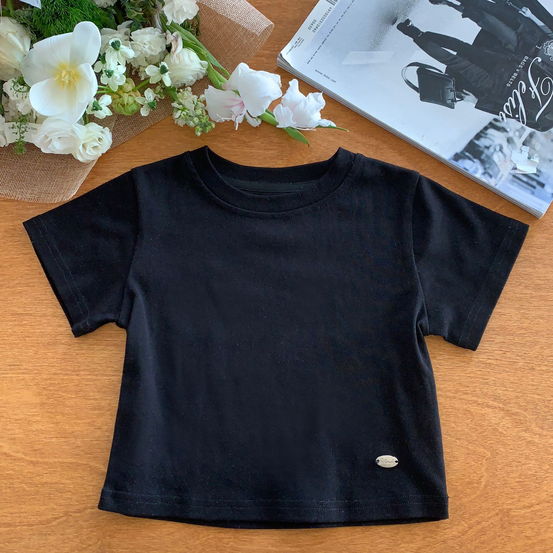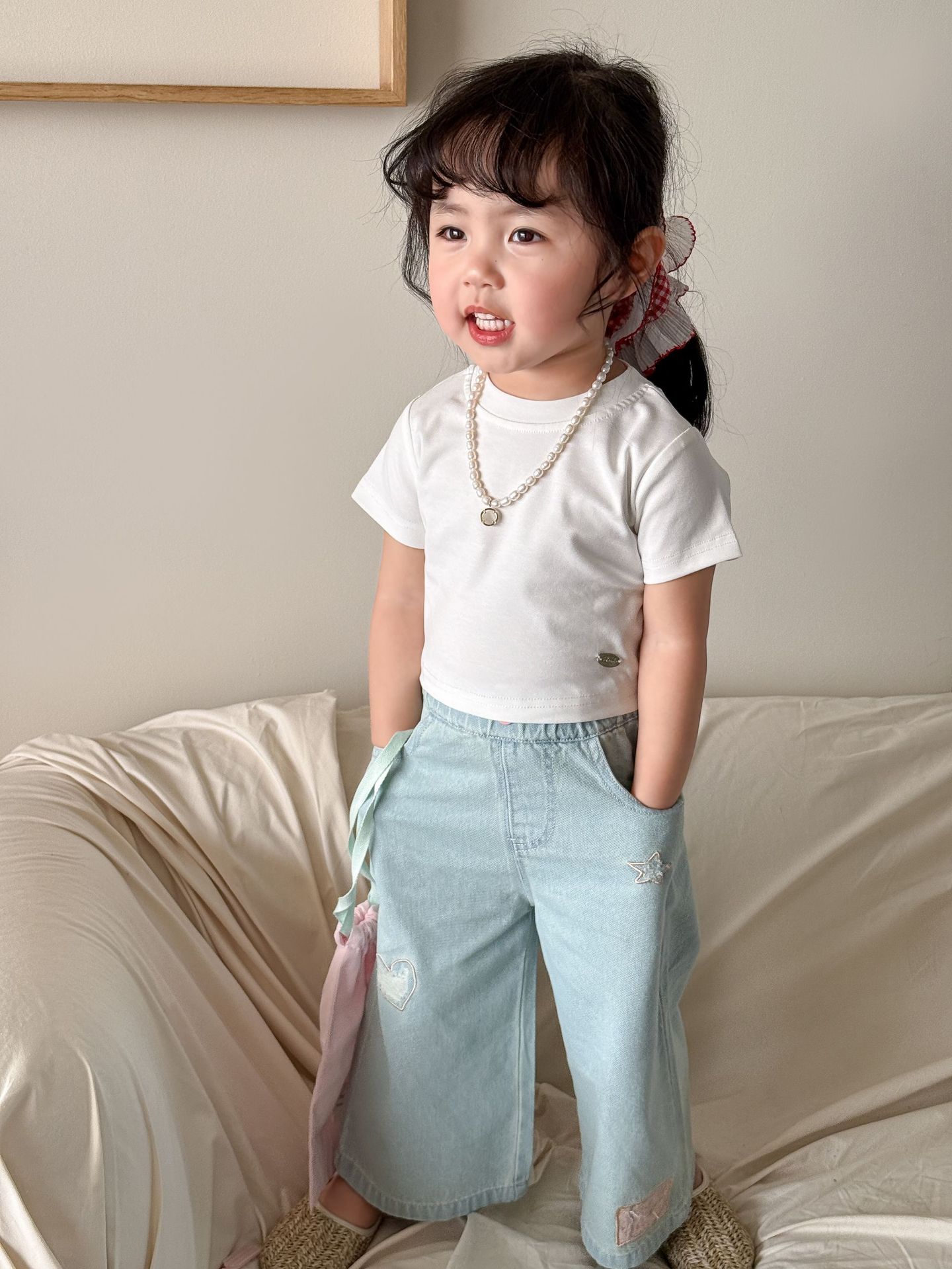 수수 배 아동 의류 소녀 반팔 티셔츠 봄 의류 2025 새로운 어린이 한국 스타일 바닥 셔츠 탑 아기 소녀 옷