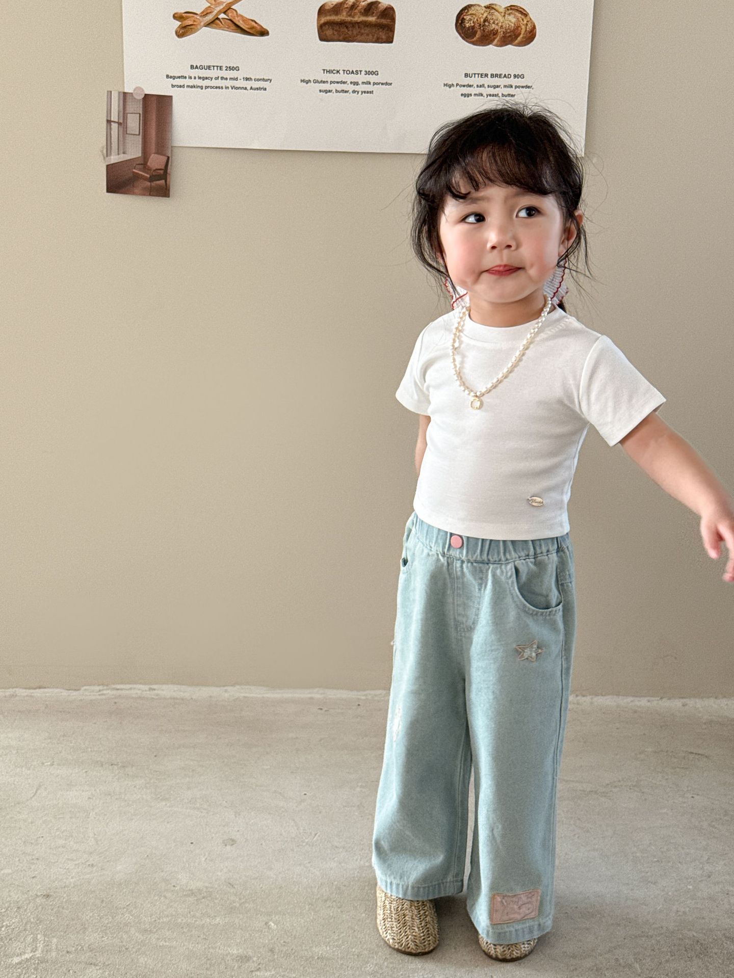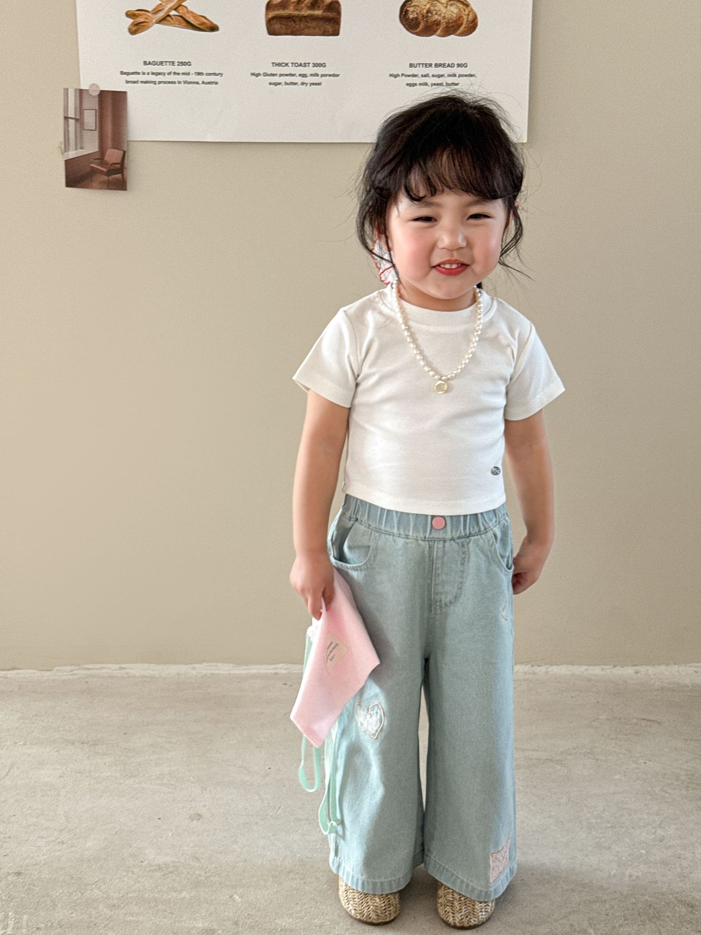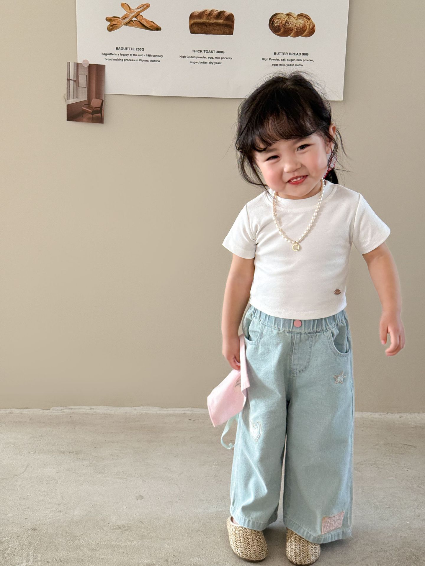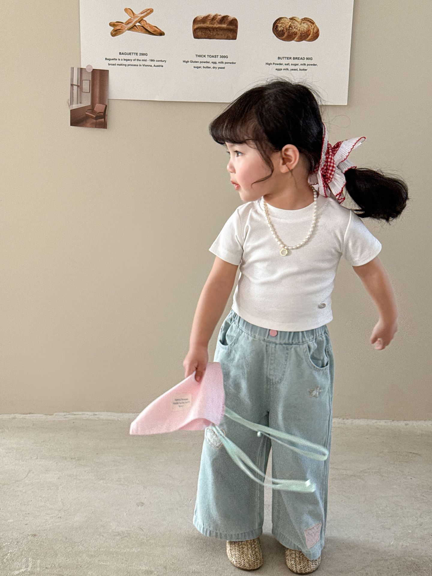 수수 배 아동 의류 소녀 반팔 티셔츠 봄 의류 2025 새로운 어린이 한국 스타일 바닥 셔츠 탑 아기 소녀 옷