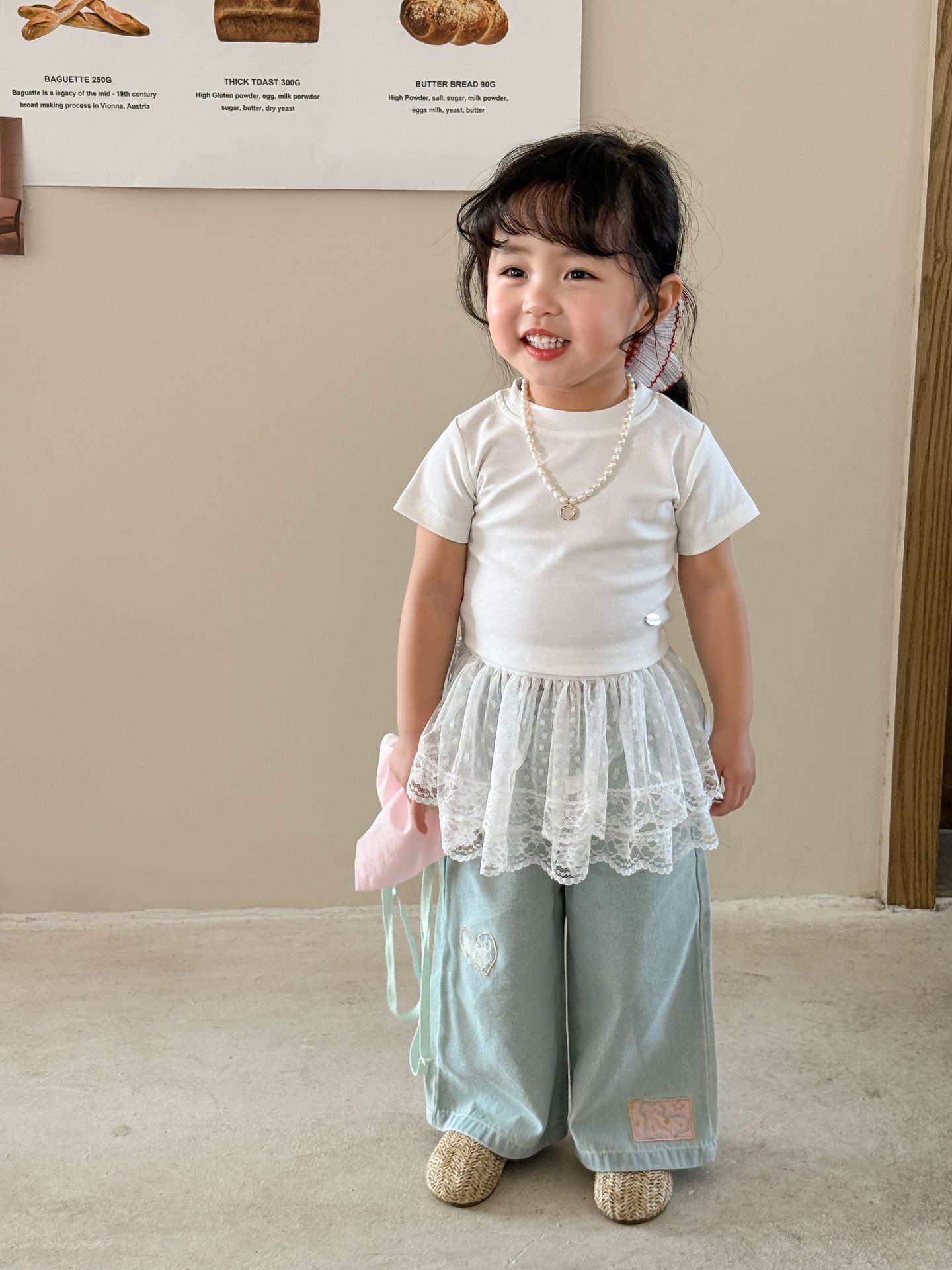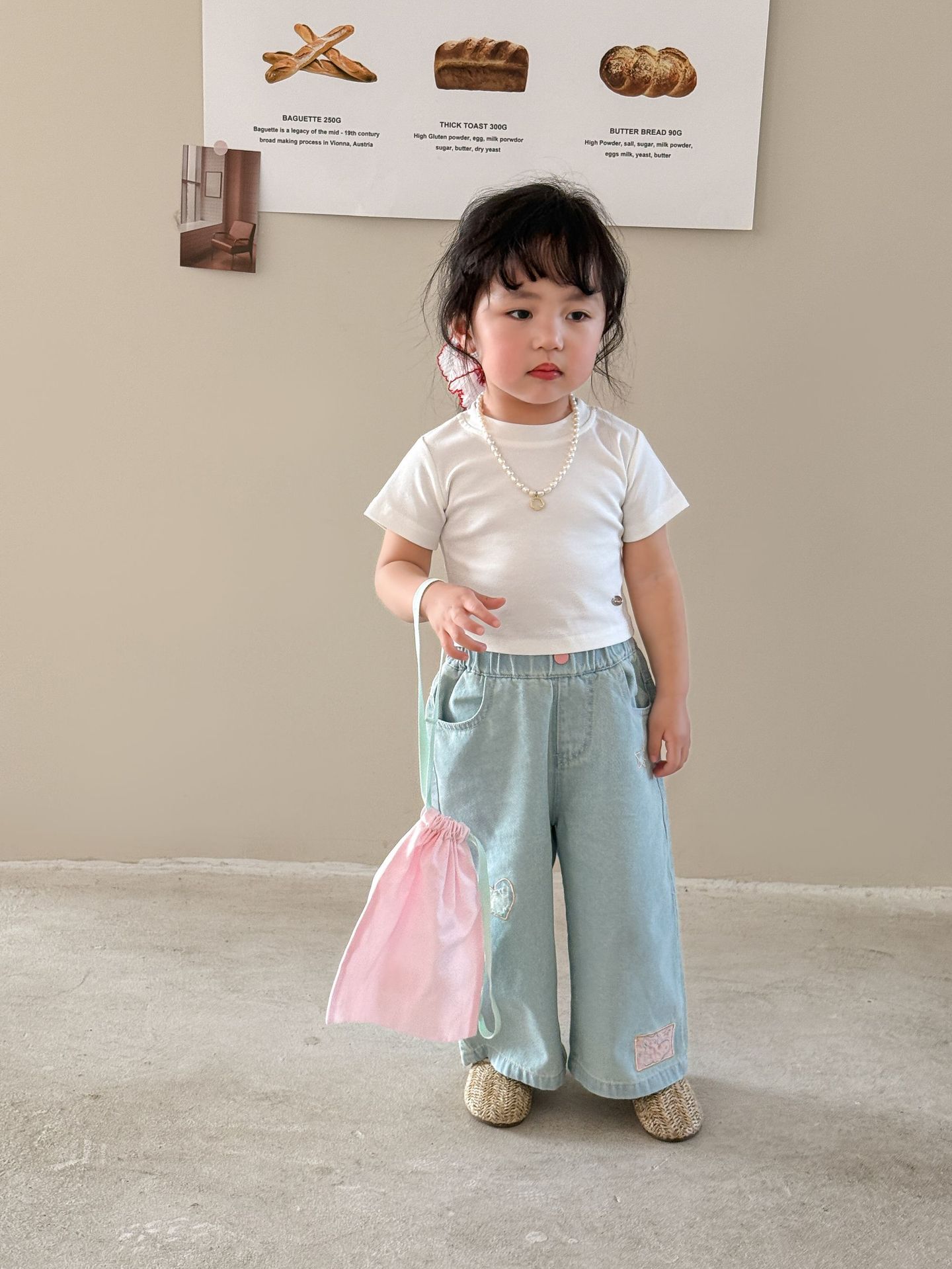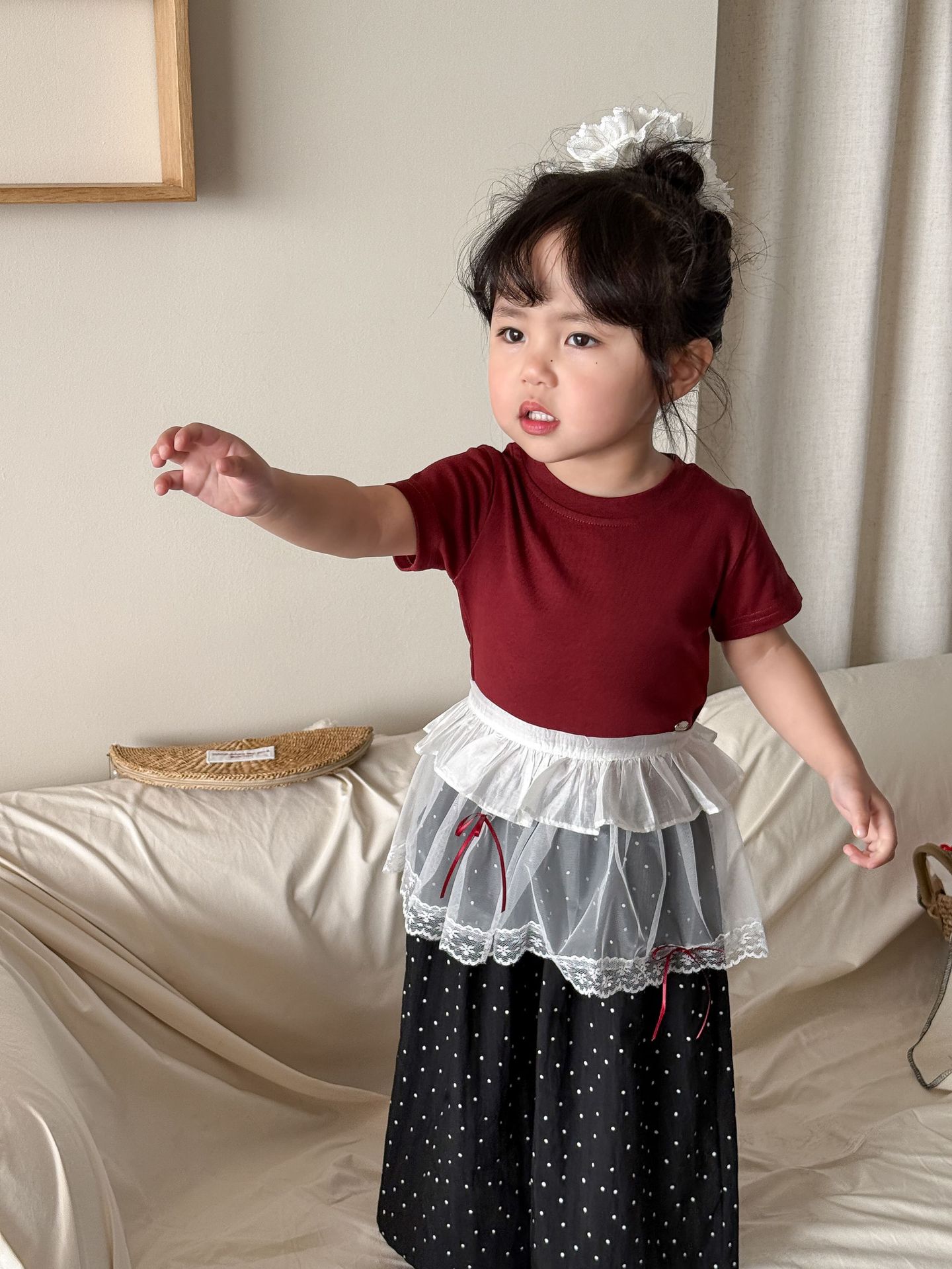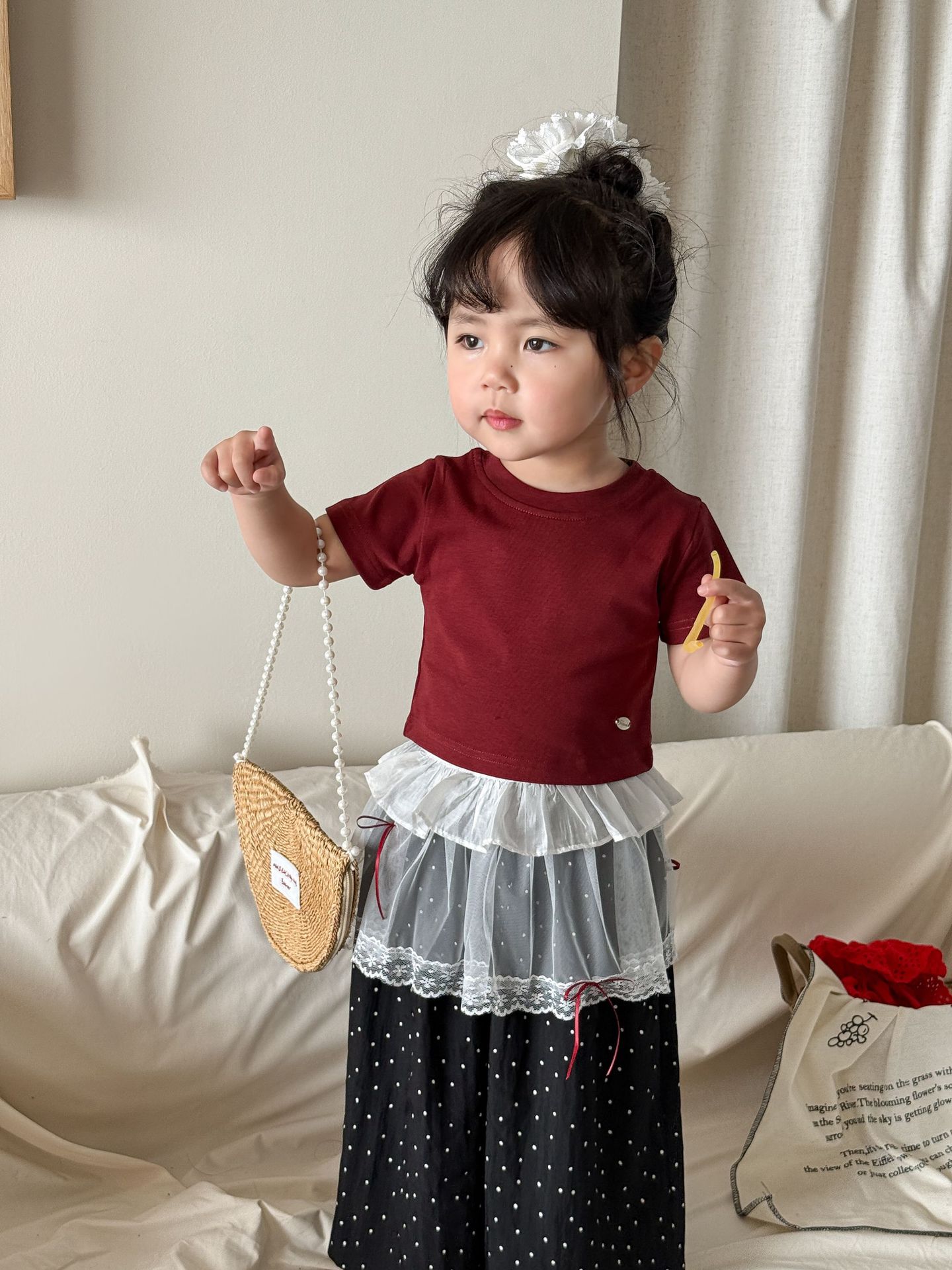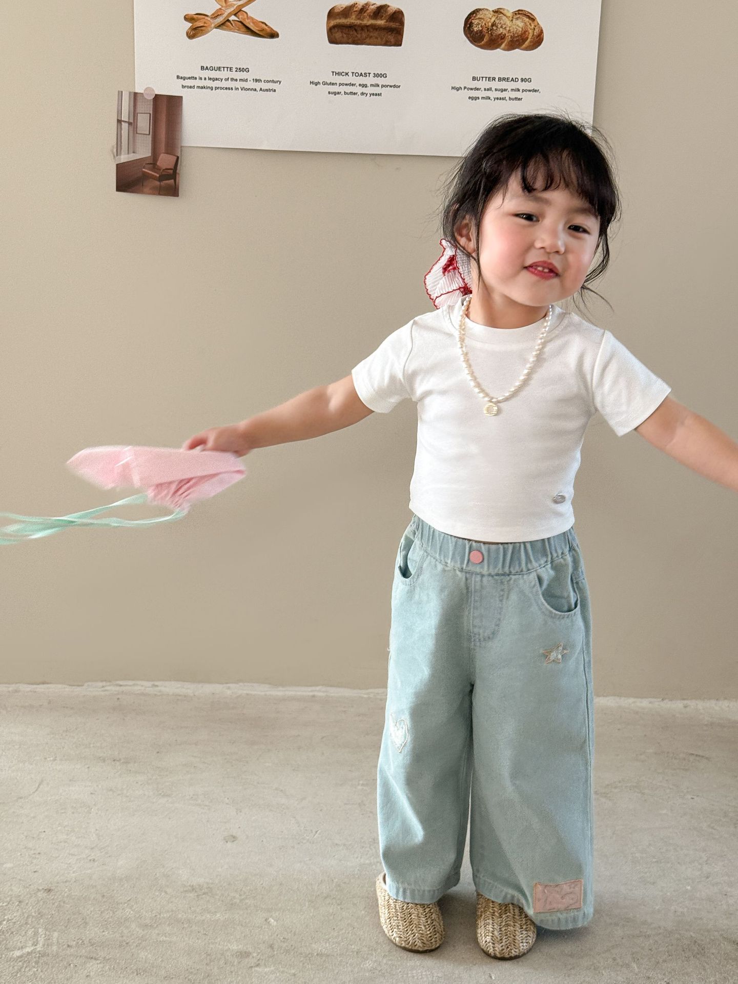 수수 배 아동 의류 소녀 반팔 티셔츠 봄 의류 2025 새로운 어린이 한국 스타일 바닥 셔츠 탑 아기 소녀 옷