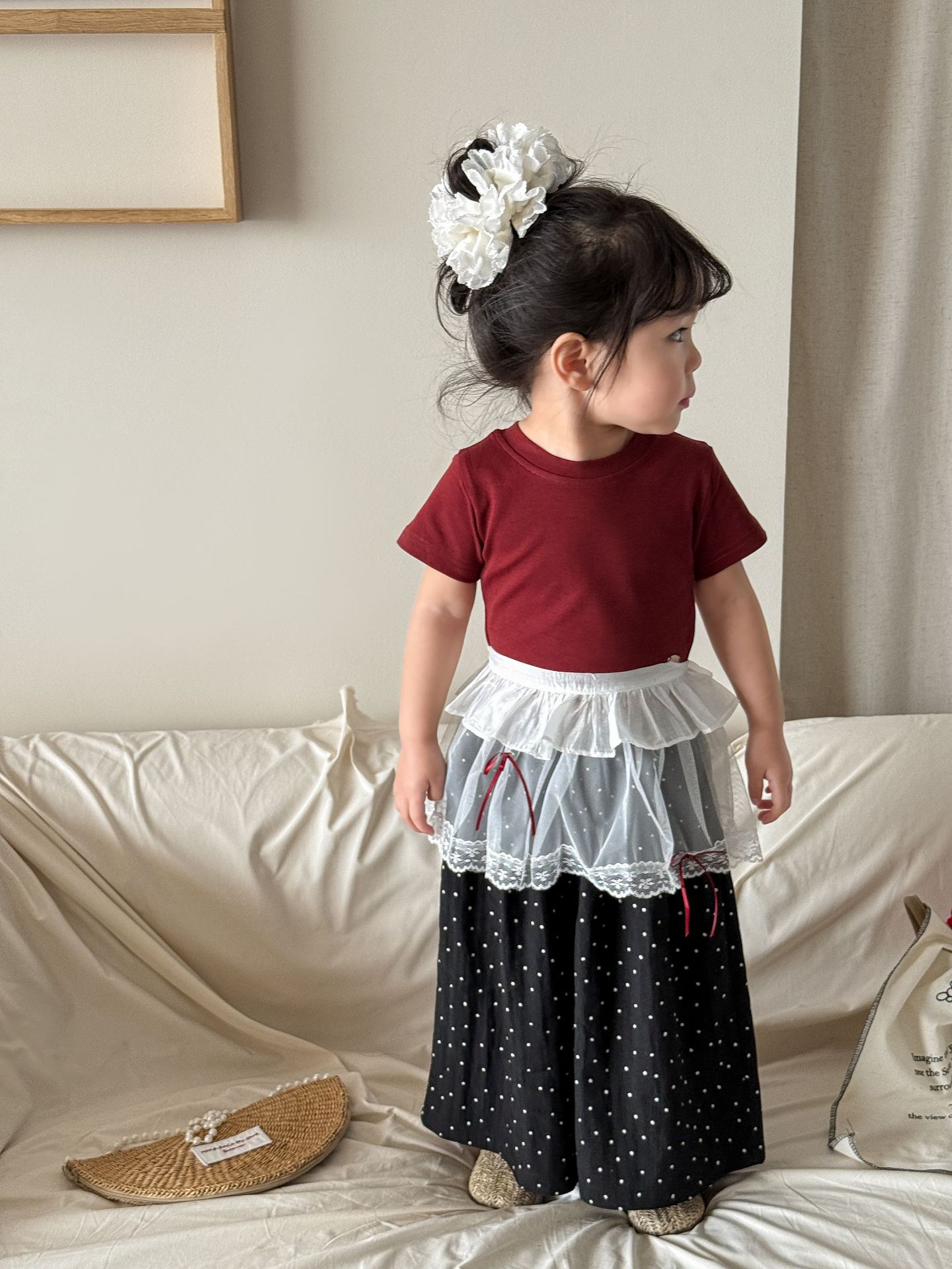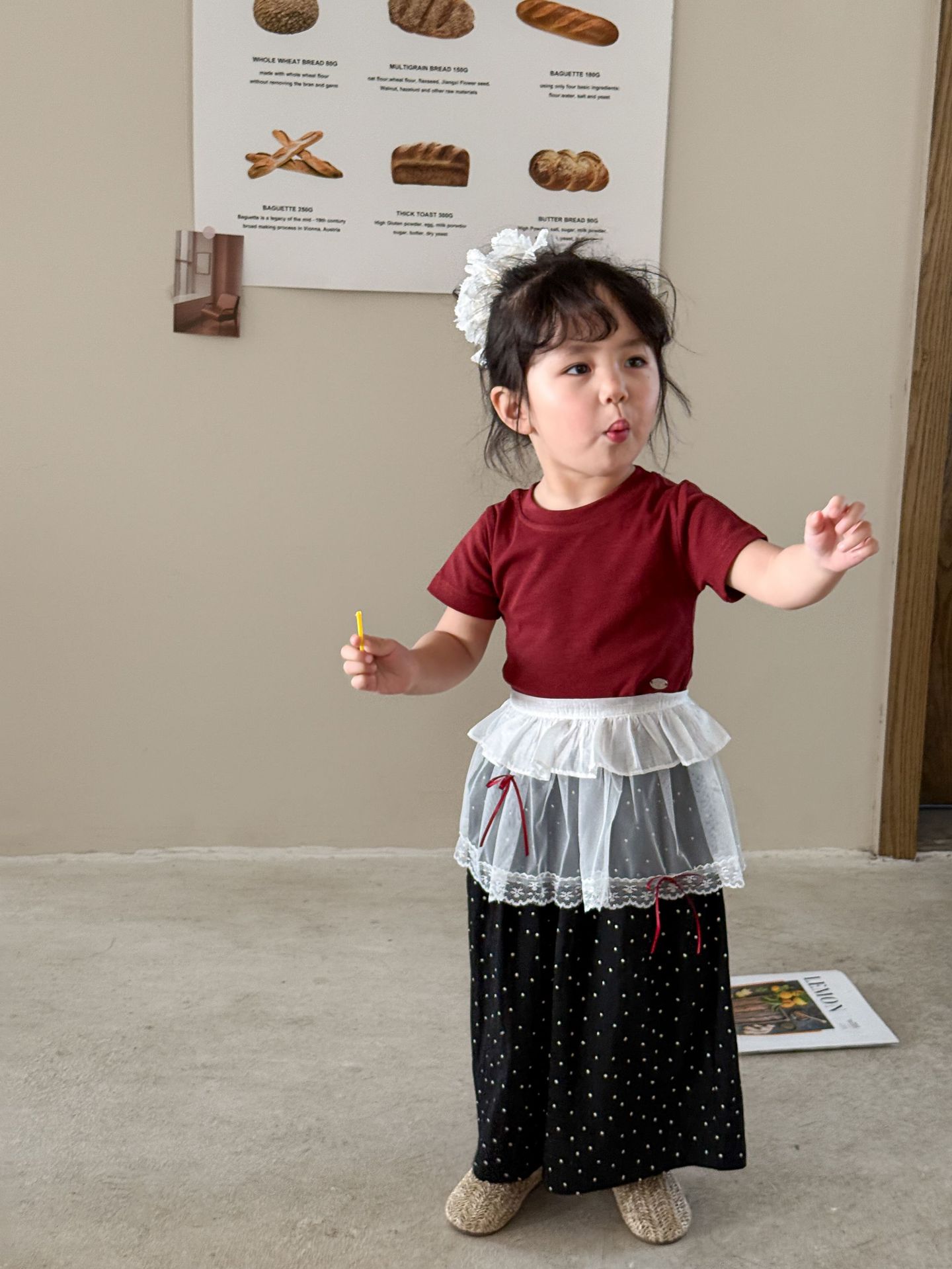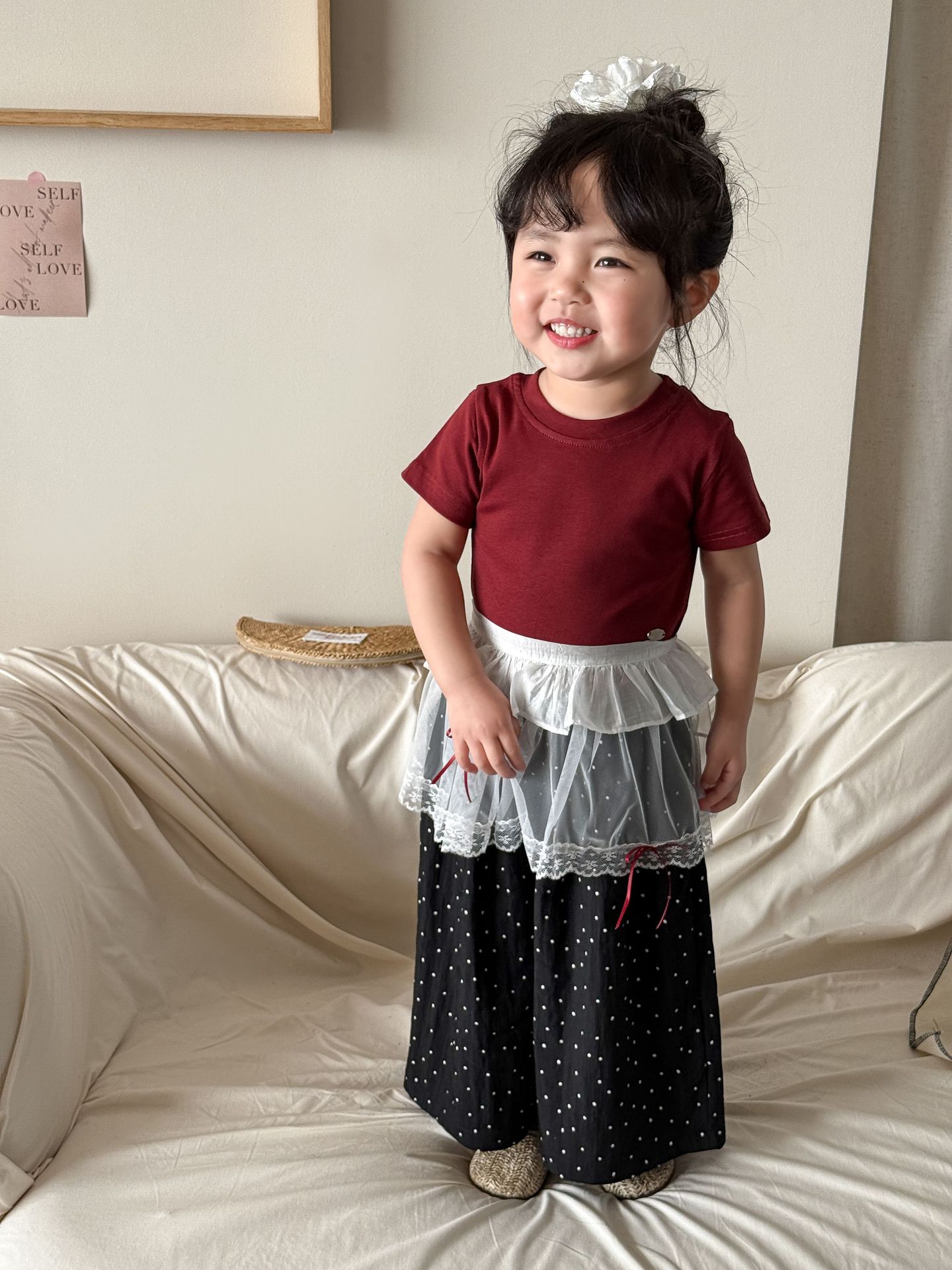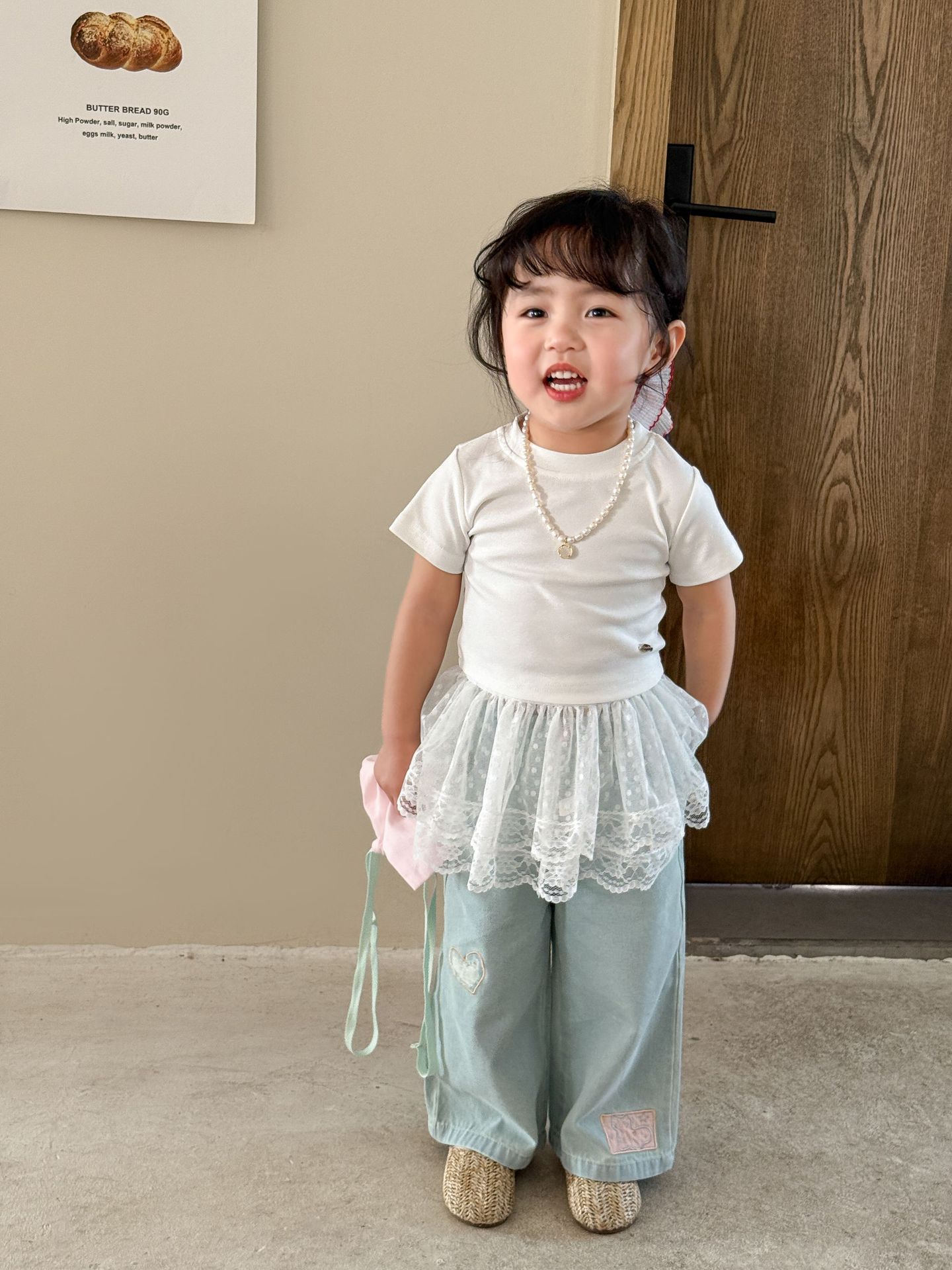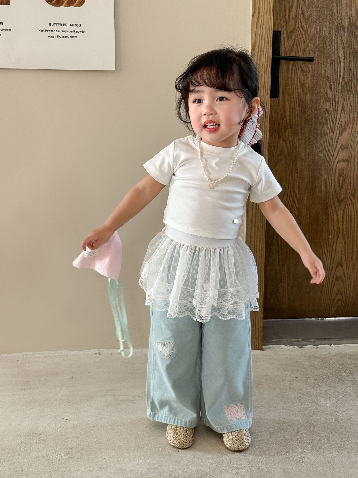 수수 배 아동 의류 소녀 반팔 티셔츠 봄 의류 2025 새로운 어린이 한국 스타일 바닥 셔츠 탑 아기 소녀 옷