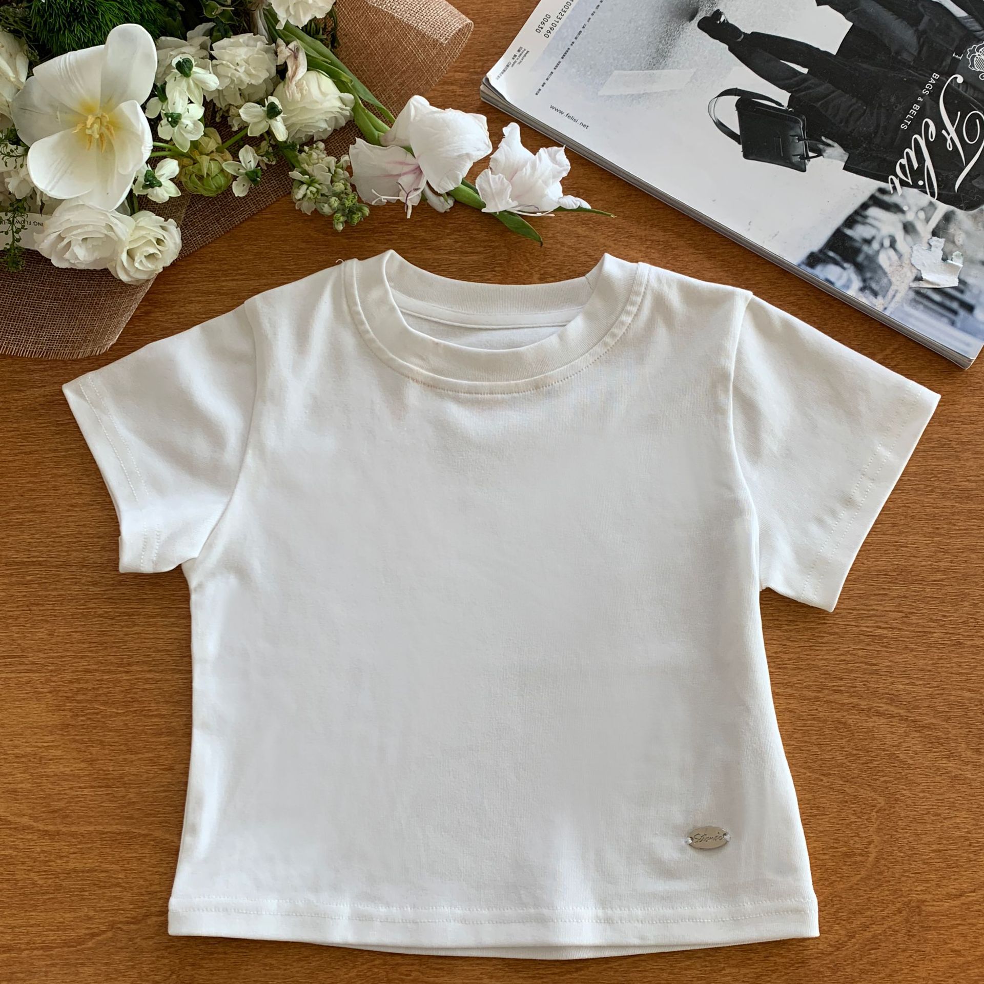 수수 배 아동 의류 소녀 반팔 티셔츠 봄 의류 2025 새로운 어린이 한국 스타일 바닥 셔츠 탑 아기 소녀 옷스토어 가기