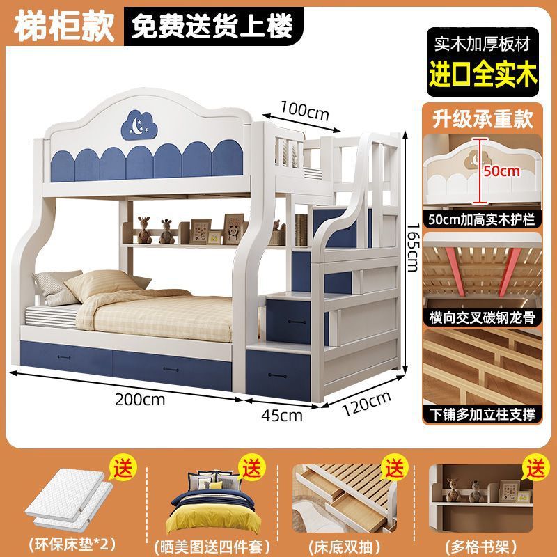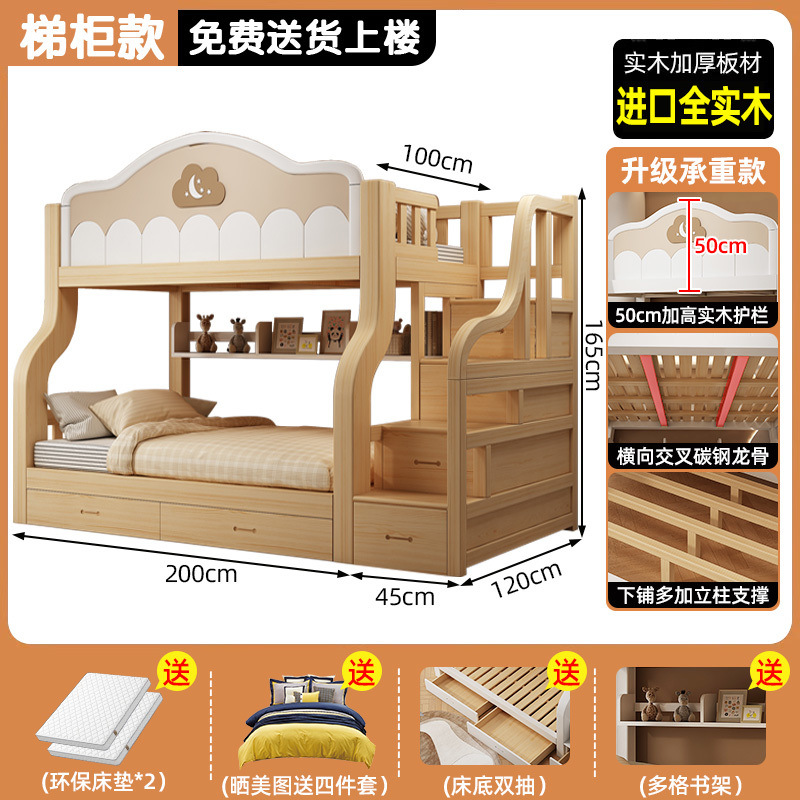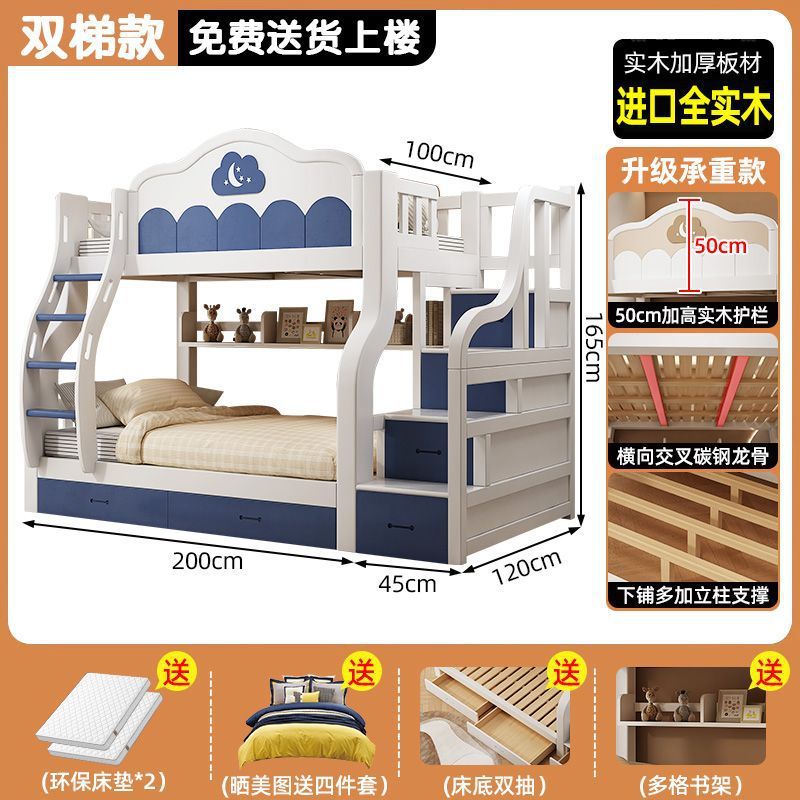 풀 솔리드 우드 침대 벙크 침대 성인 작은 아파트 어린이 높고 낮은 침대 다기능 더블 침대스토어 가기