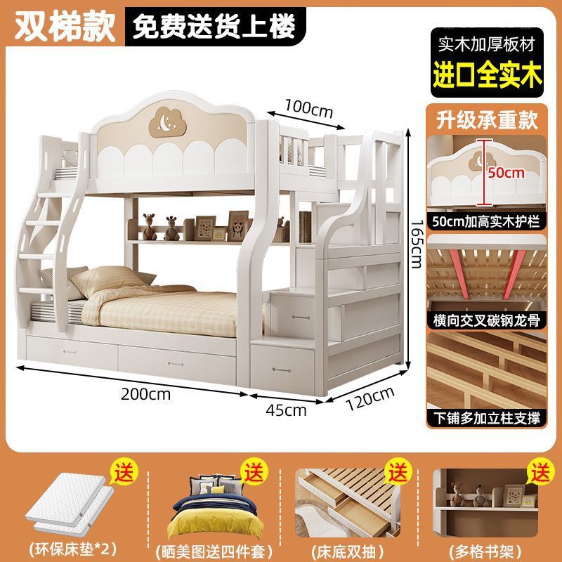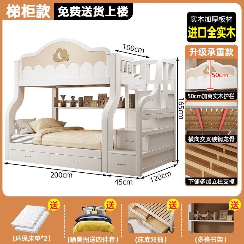 풀 솔리드 우드 침대 벙크 침대 성인 작은 아파트 어린이 높고 낮은 침대 다기능 더블 침대