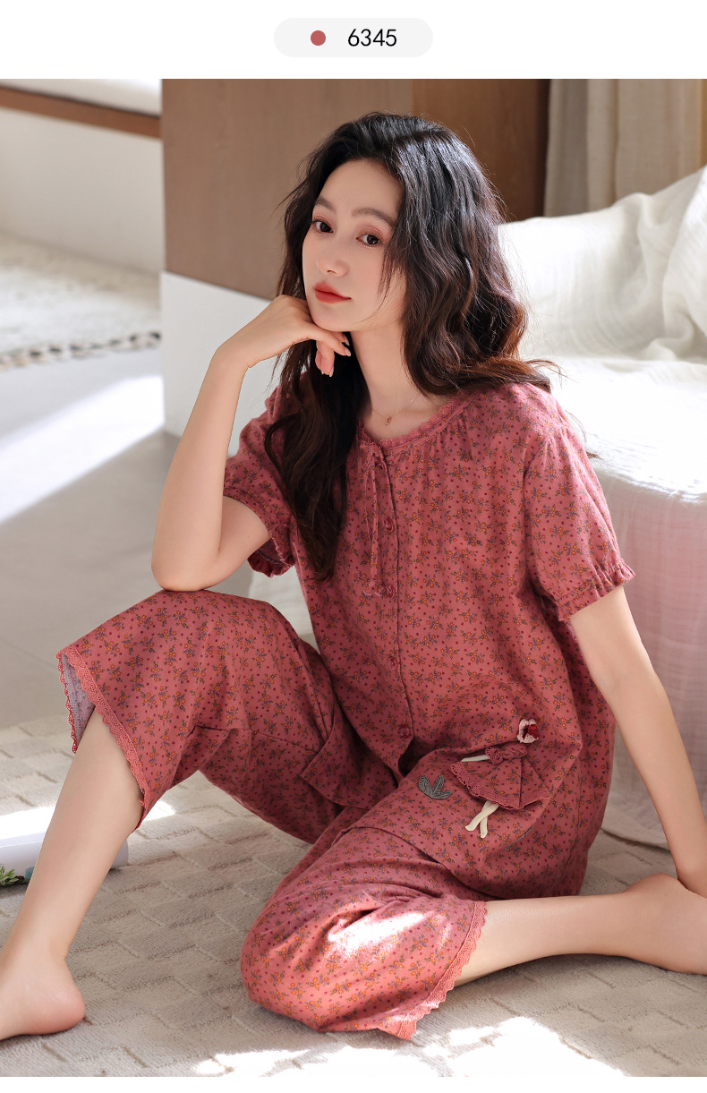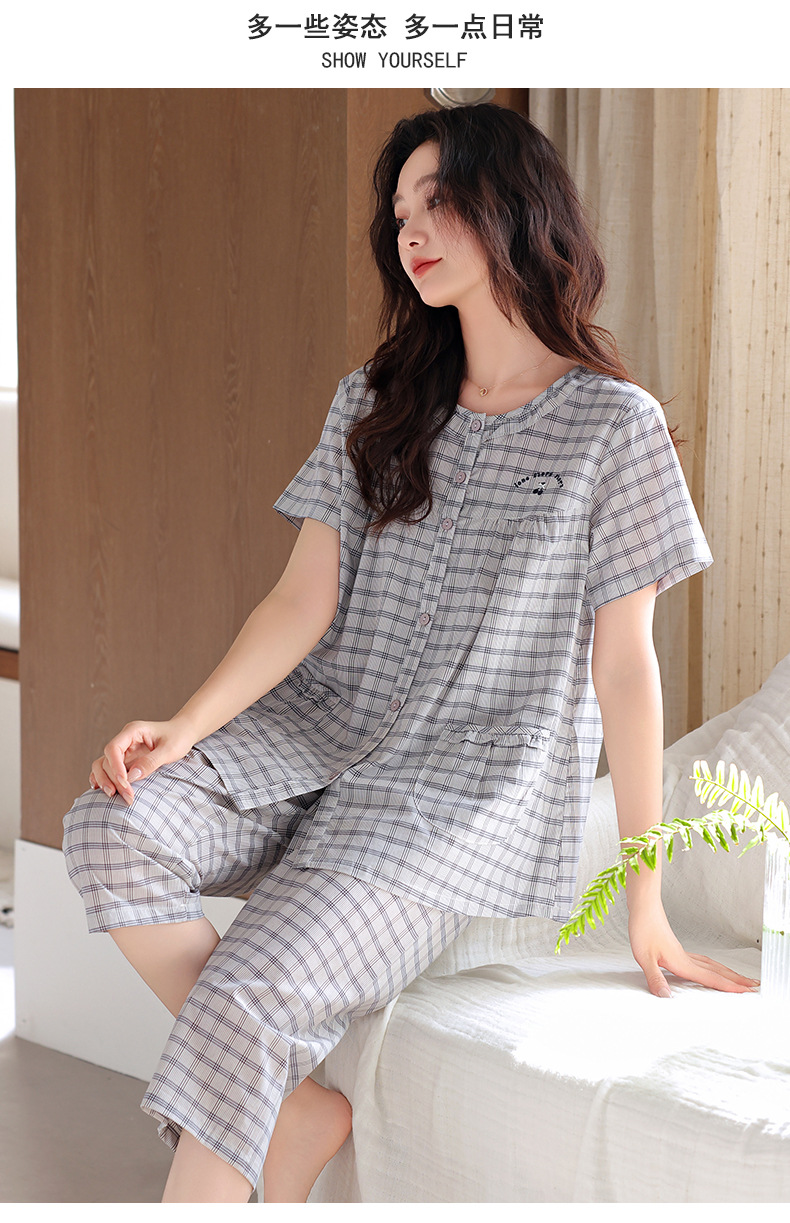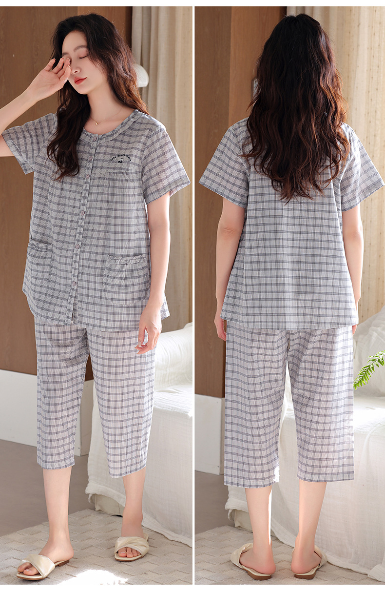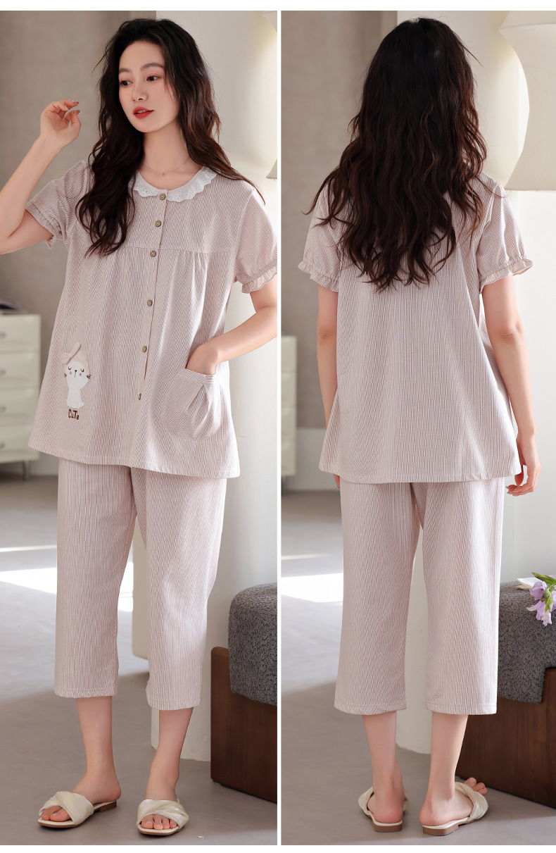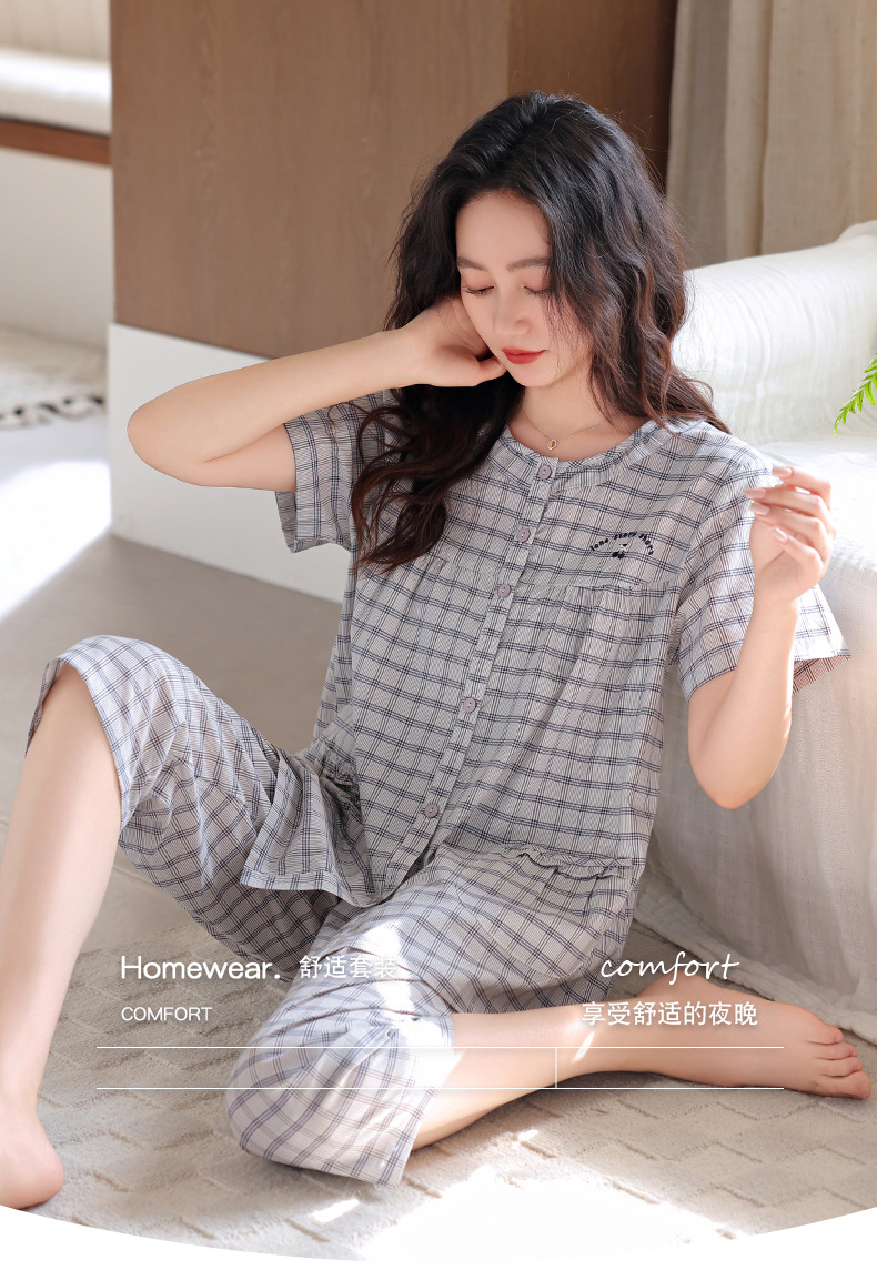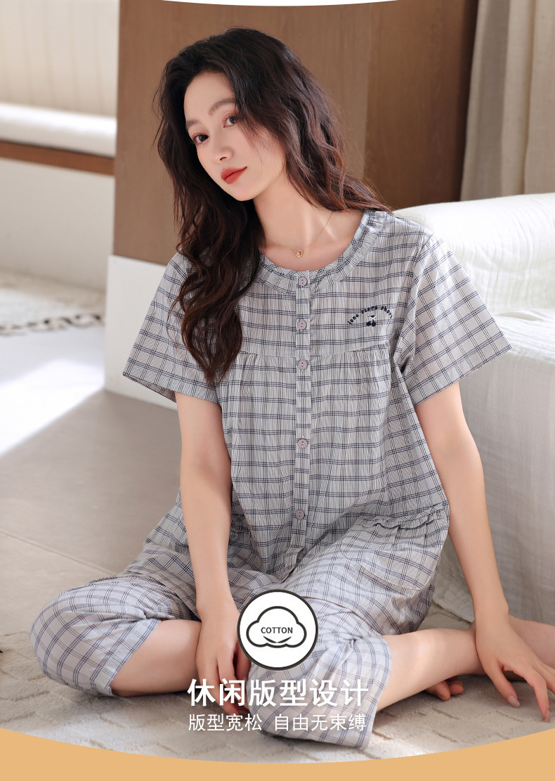 잠옷 여성 여름 순면 반팔 카프리 바지 여름 얇은 순면 캐주얼 플러스 사이즈 의류 홈 세트스토어 가기
