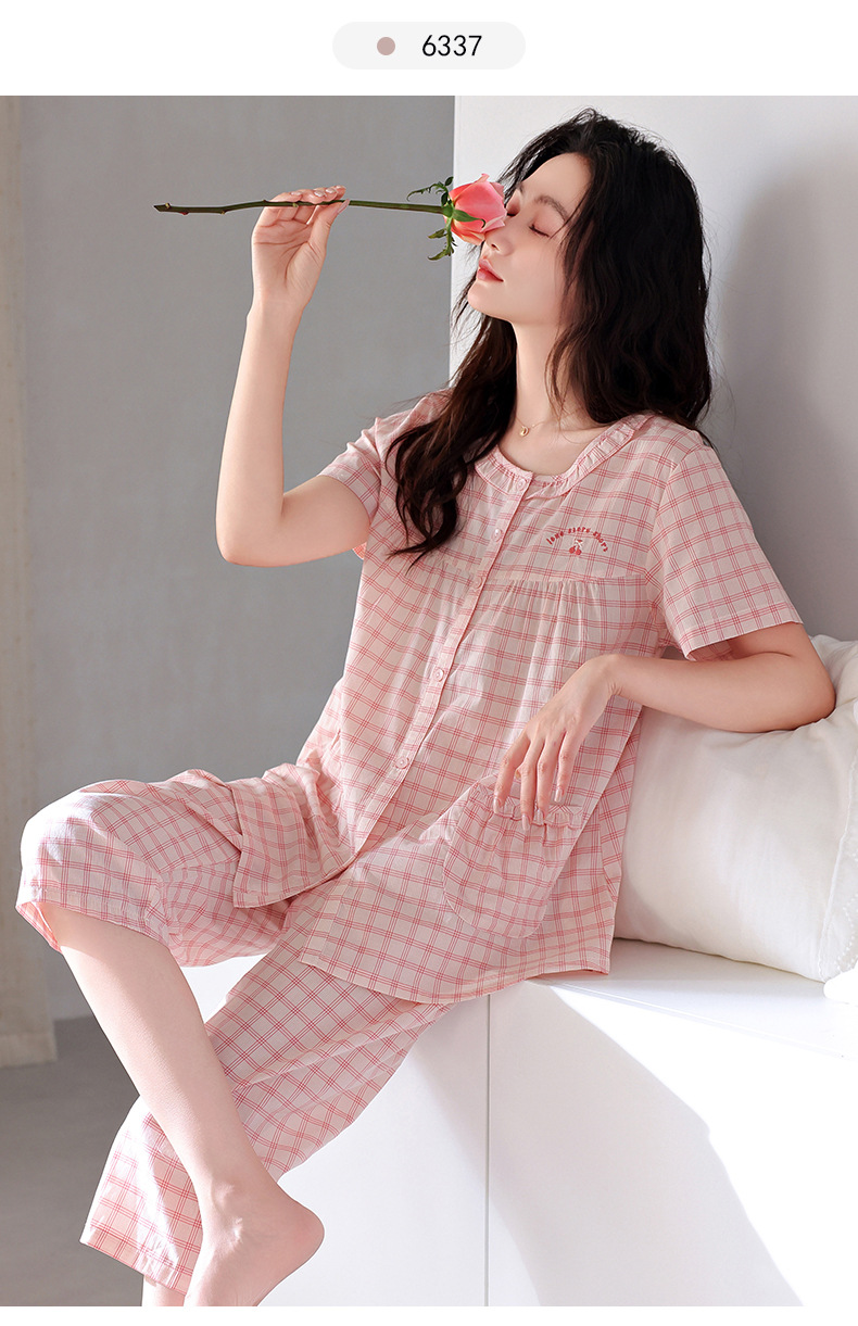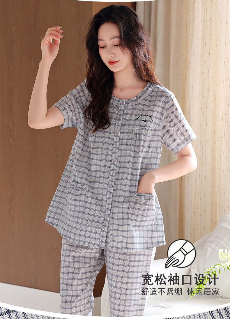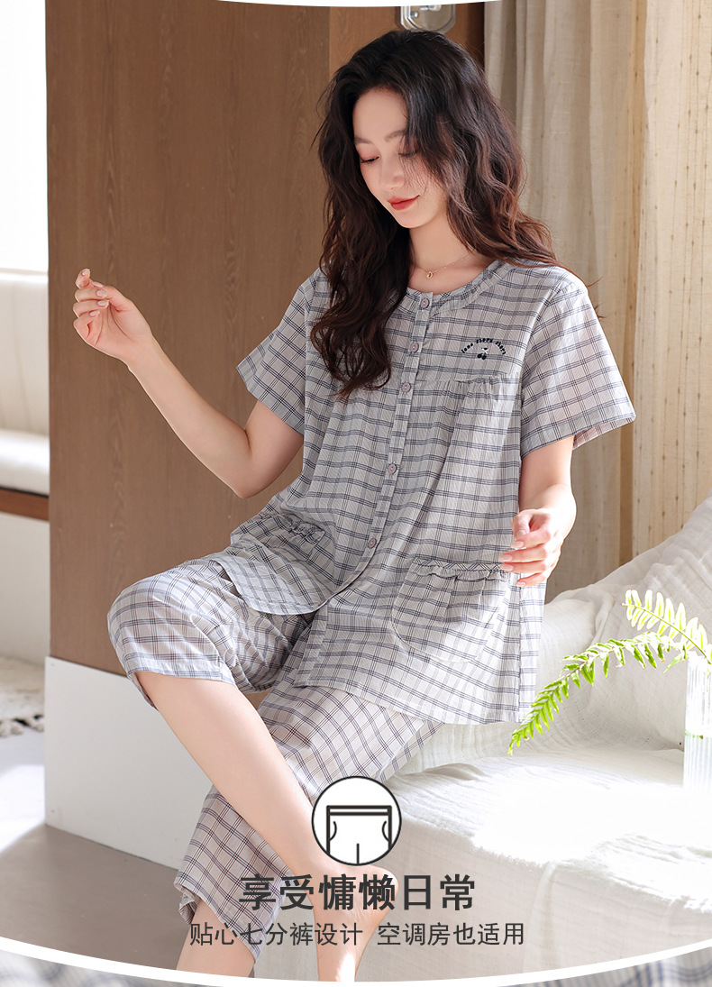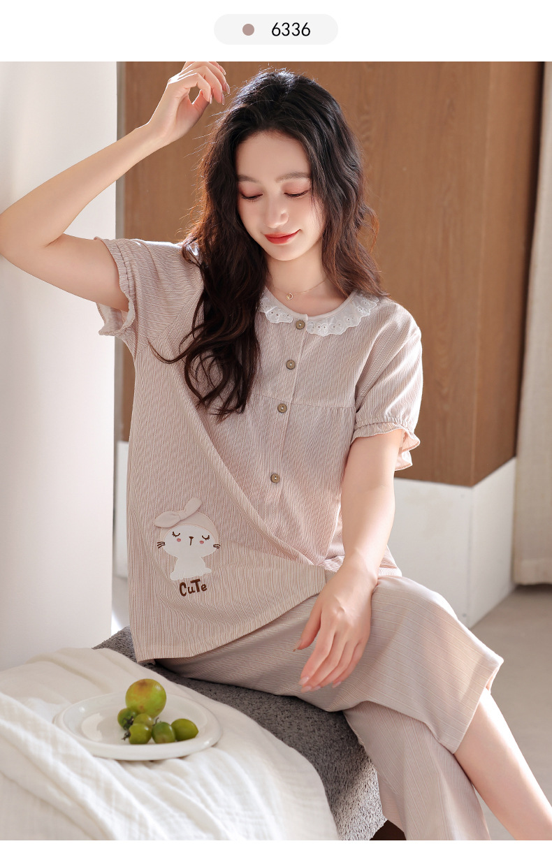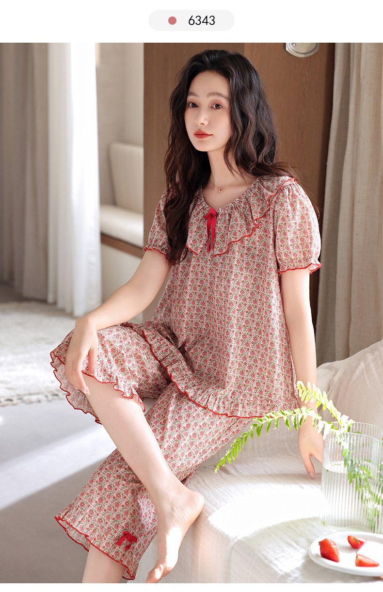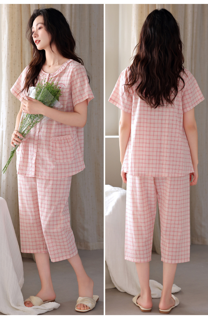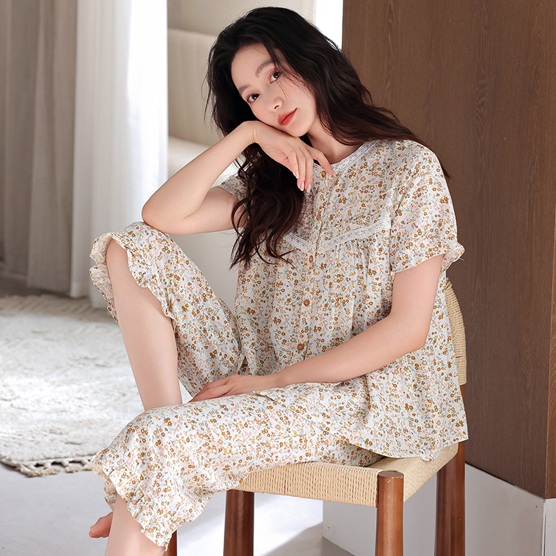 잠옷 여성 여름 순면 반팔 카프리 바지 여름 얇은 순면 캐주얼 플러스 사이즈 의류 홈 세트스토어 가기
