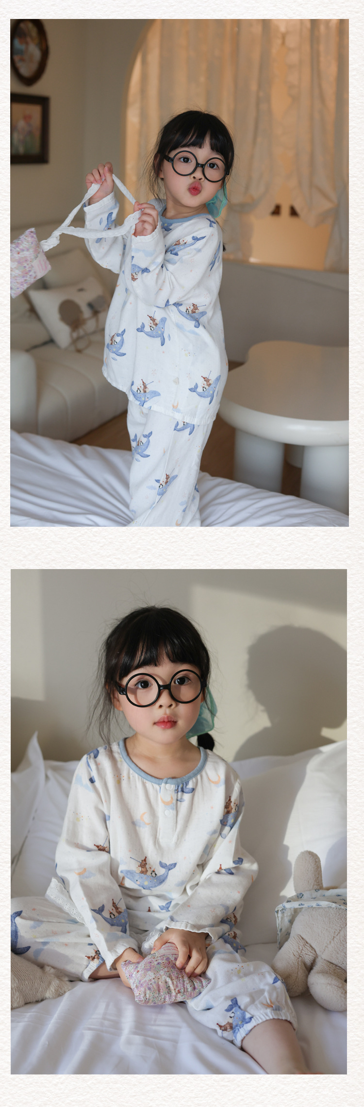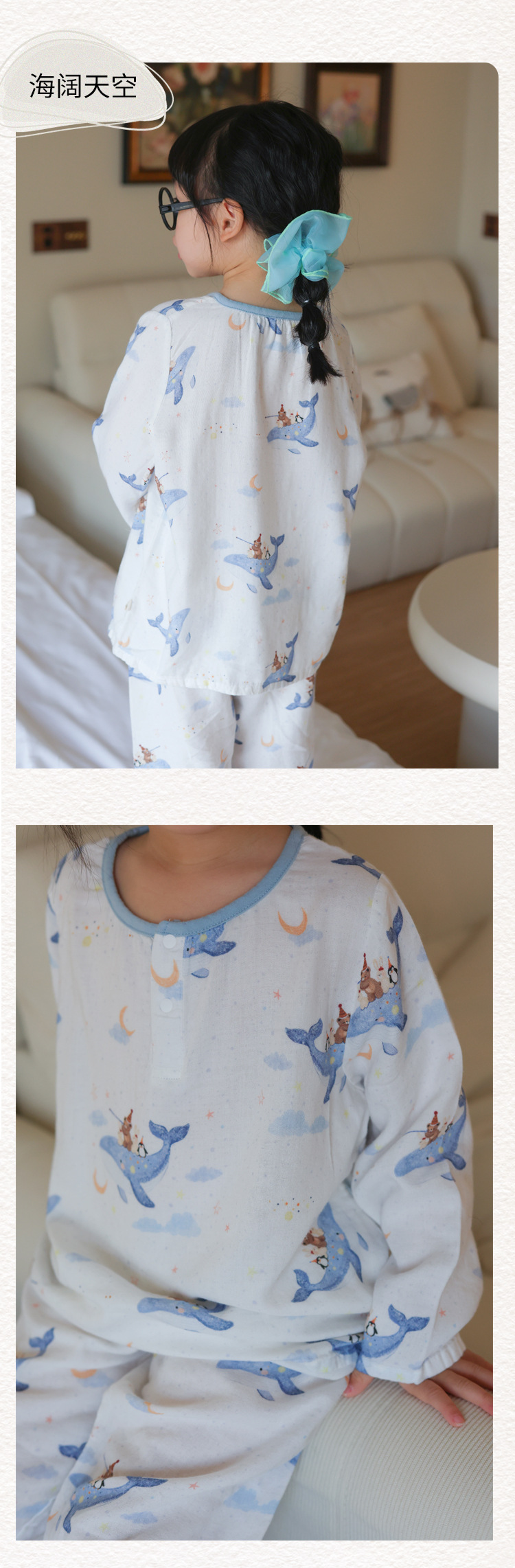 • Hai Kuo Sky-어린이용 이중 거즈 긴팔 및 바지 홈웨어 세트