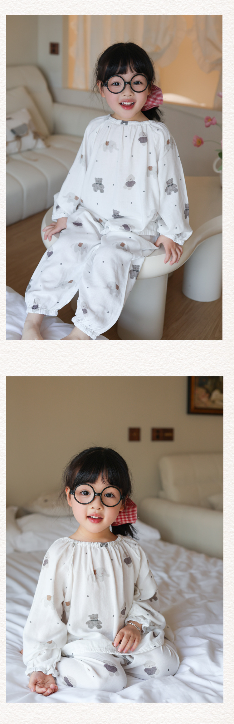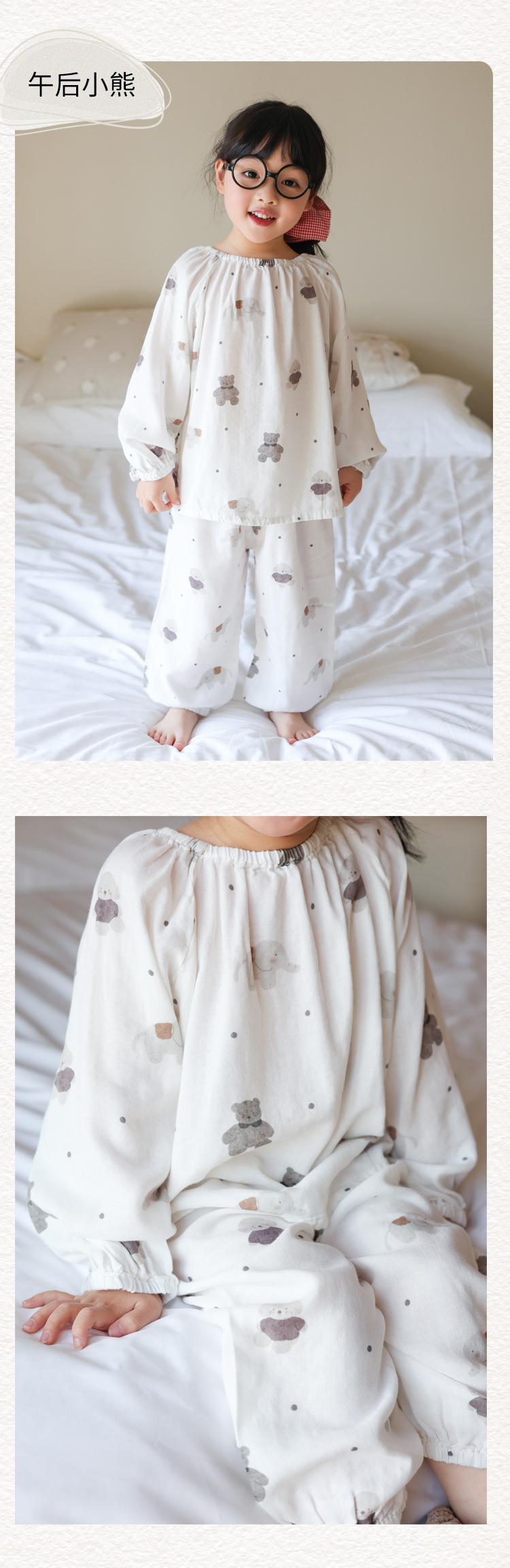 • 오후의 꼬마곰 - 아동용 이중 거즈 긴팔 긴바지 홈웨어 세트