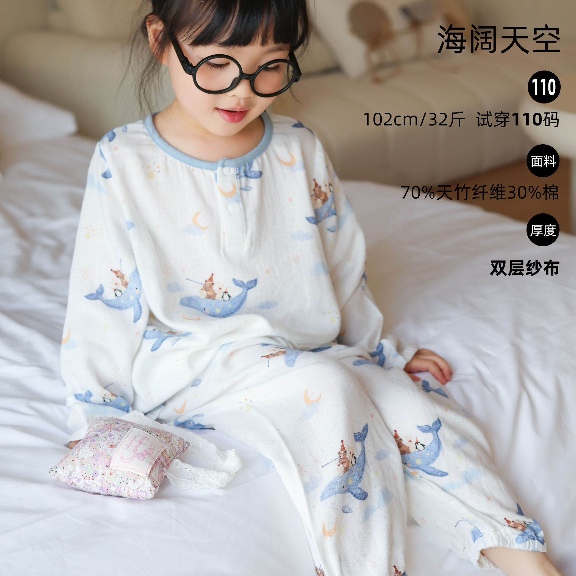 클래스 A 대나무 면 거즈 아동복 여름 얇은 소년 소녀 잠옷 아기 봄, 가을 에어컨 옷