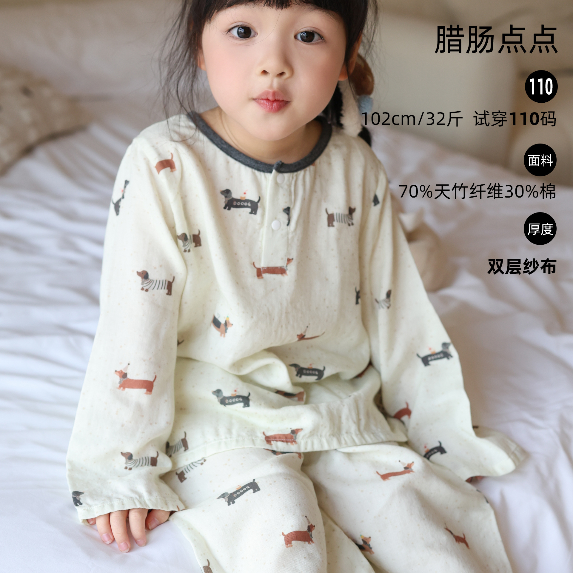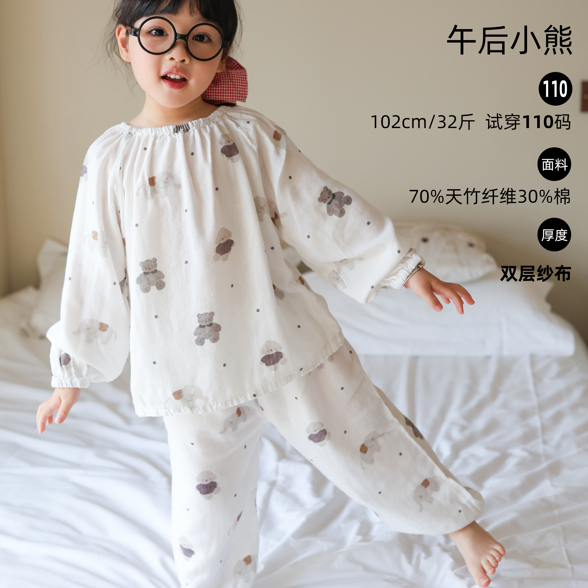 클래스 A 대나무 면 거즈 아동복 여름 얇은 소년 소녀 잠옷 아기 봄, 가을 에어컨 옷스토어 가기