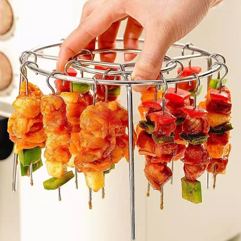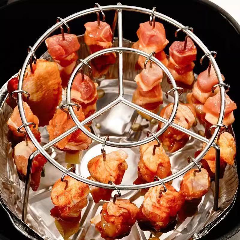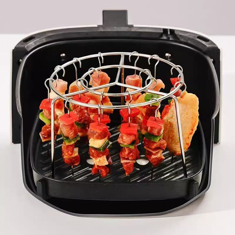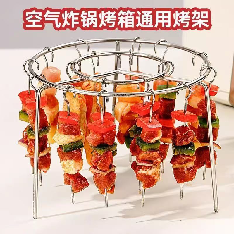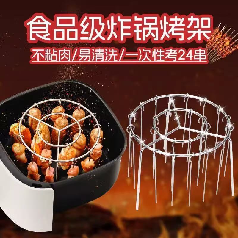 (24꼬치 구이용) 에어프라이어 바베큐 그릴 오븐 걸이식 꼬치 그릴 스테인리스 고기 꼬치 그릴 에어프라이어 액세서리