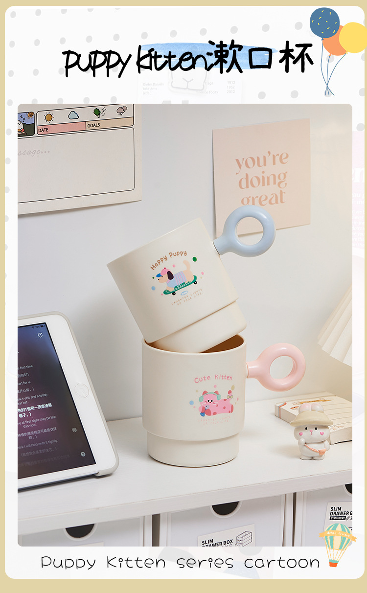 만화 고양이와 개 아침 식사 컵 스타일 높은 색상 가치 머그잔 국경 동반자 선물 학생 여자 친구 컵 기숙사