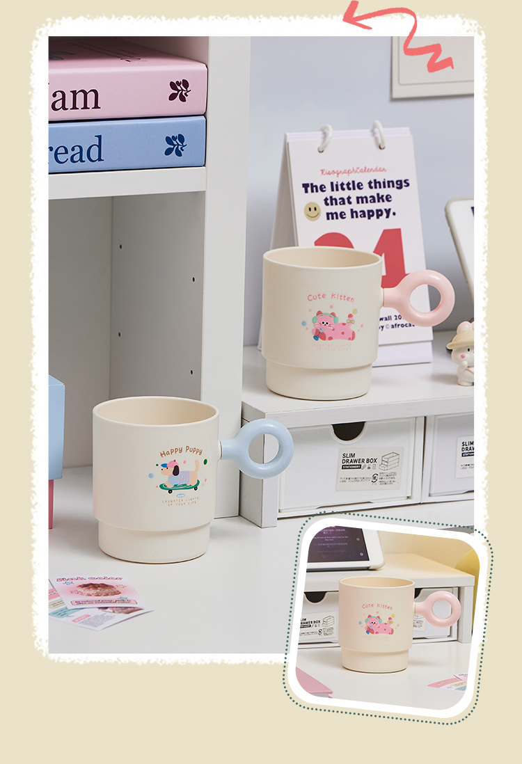만화 고양이와 개 아침 식사 컵 스타일 높은 색상 가치 머그잔 국경 동반자 선물 학생 여자 친구 컵 기숙사스토어 가기