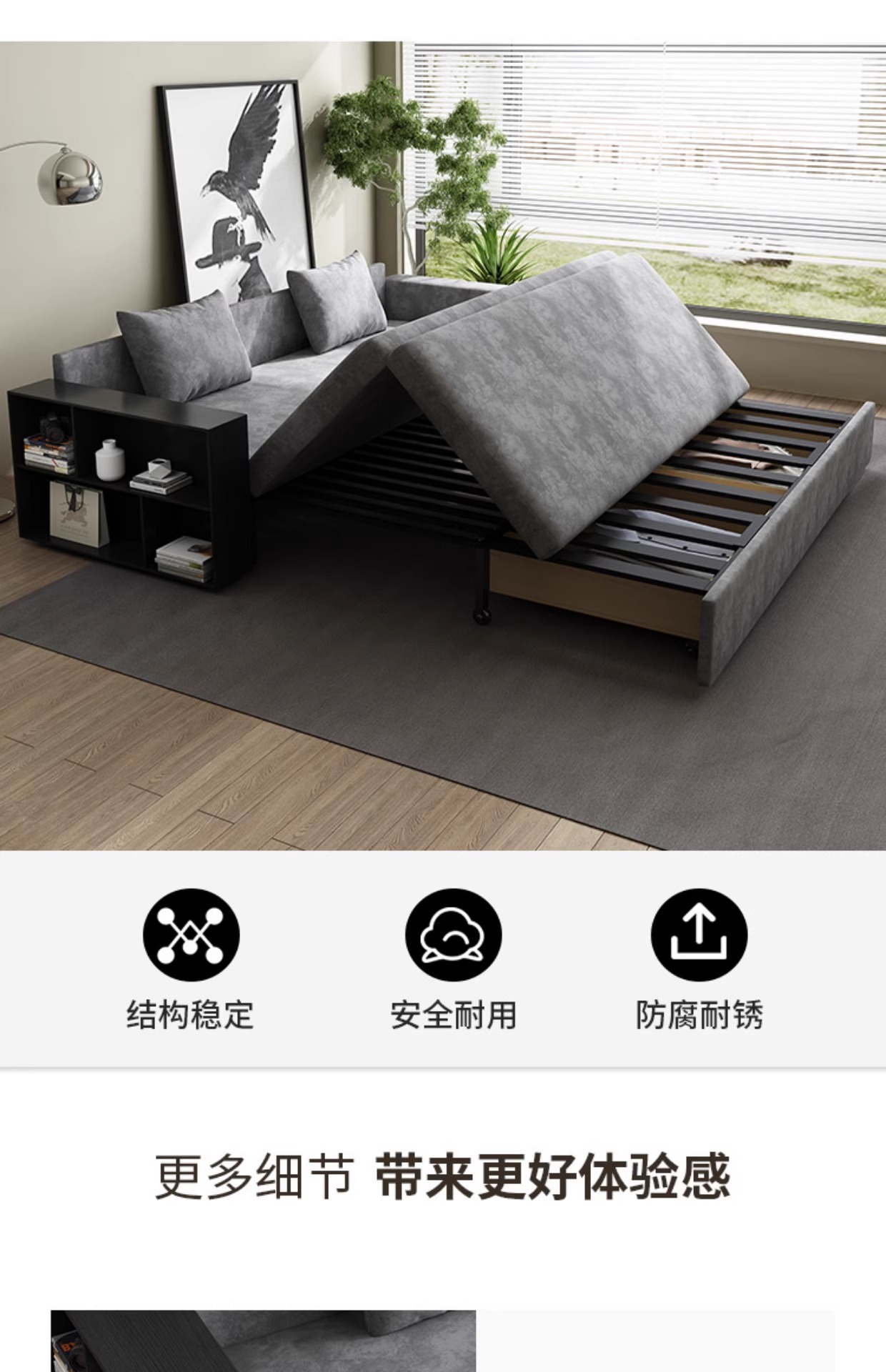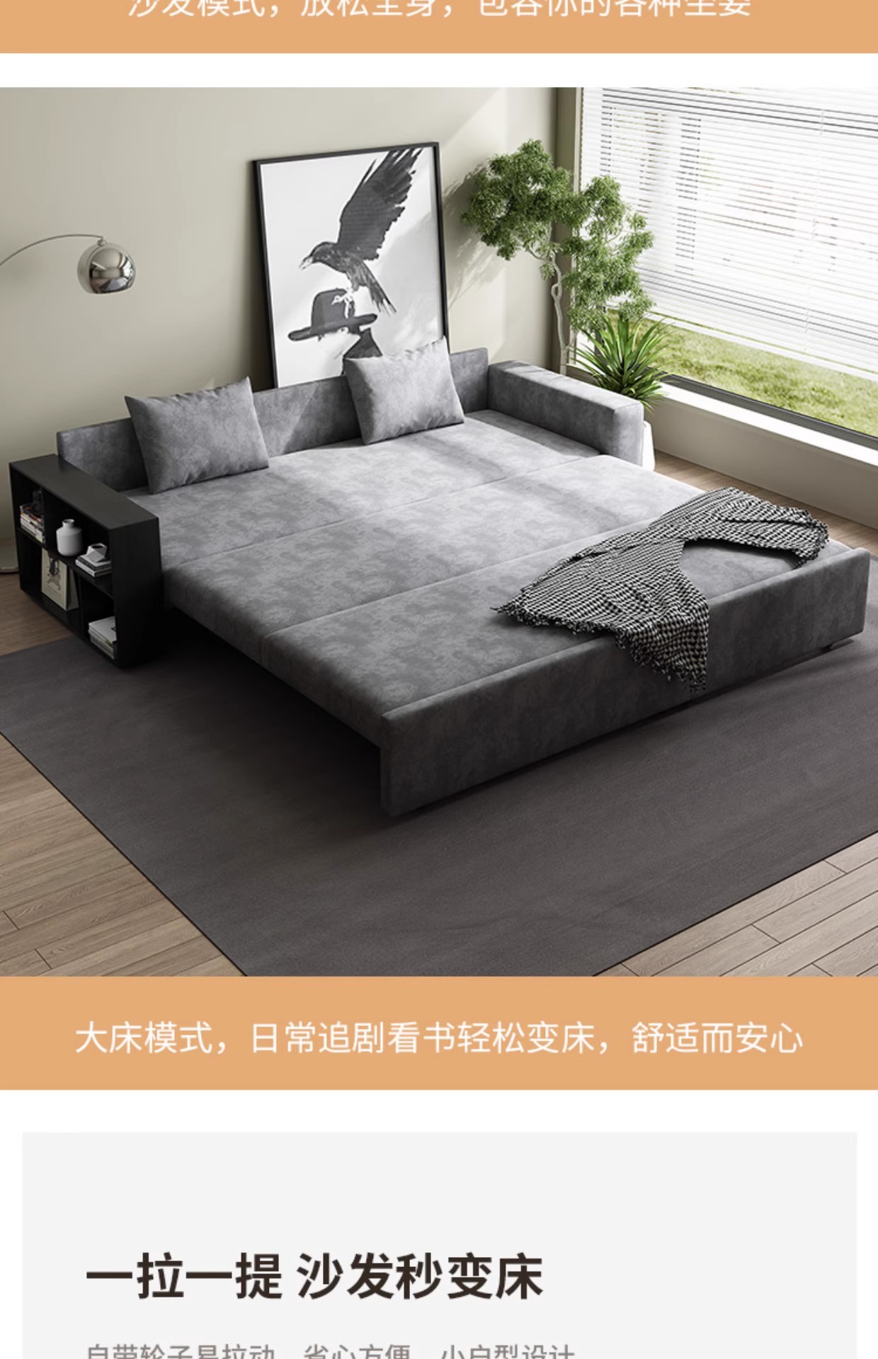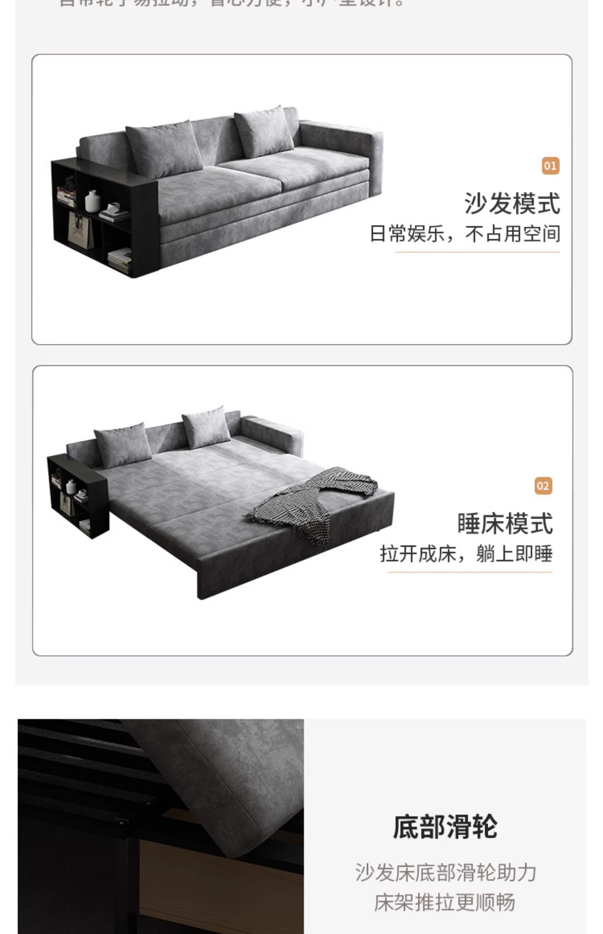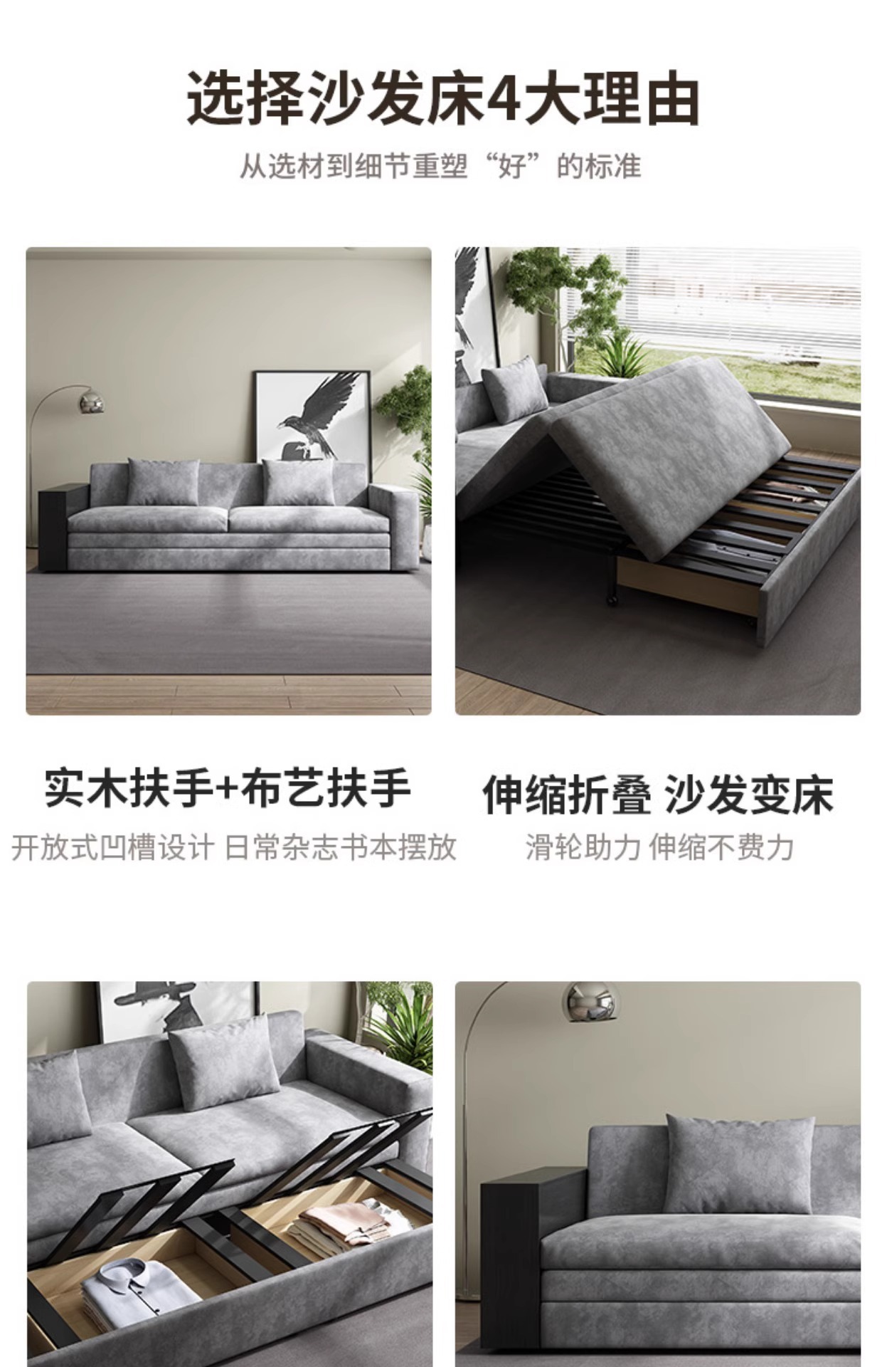 단단한 나무 다기능 소파 침대 저장 거실 기술 천 간단한 단단한 나무 접히는 이중 목적 텔레스코픽 프로스트 천 소파스토어 가기