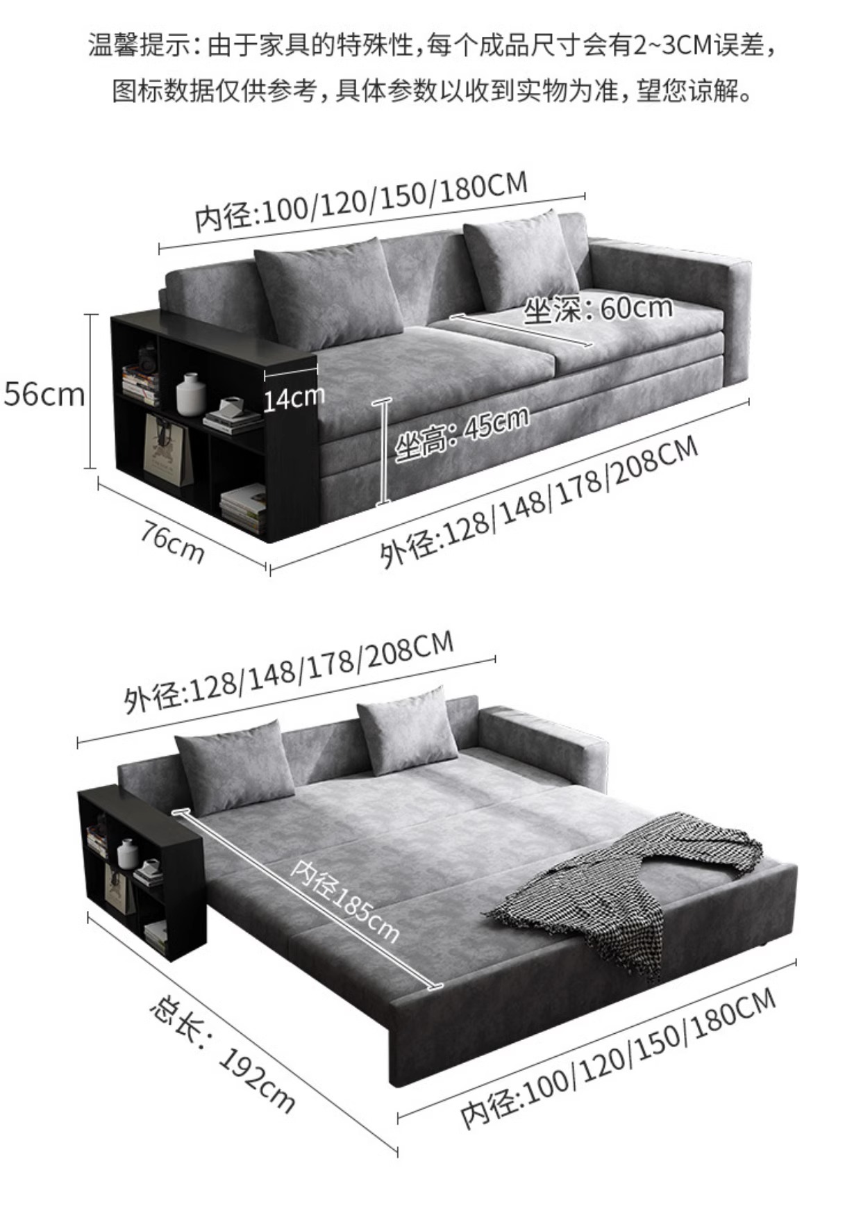 단단한 나무 다기능 소파 침대 저장 거실 기술 천 간단한 단단한 나무 접히는 이중 목적 텔레스코픽 프로스트 천 소파
