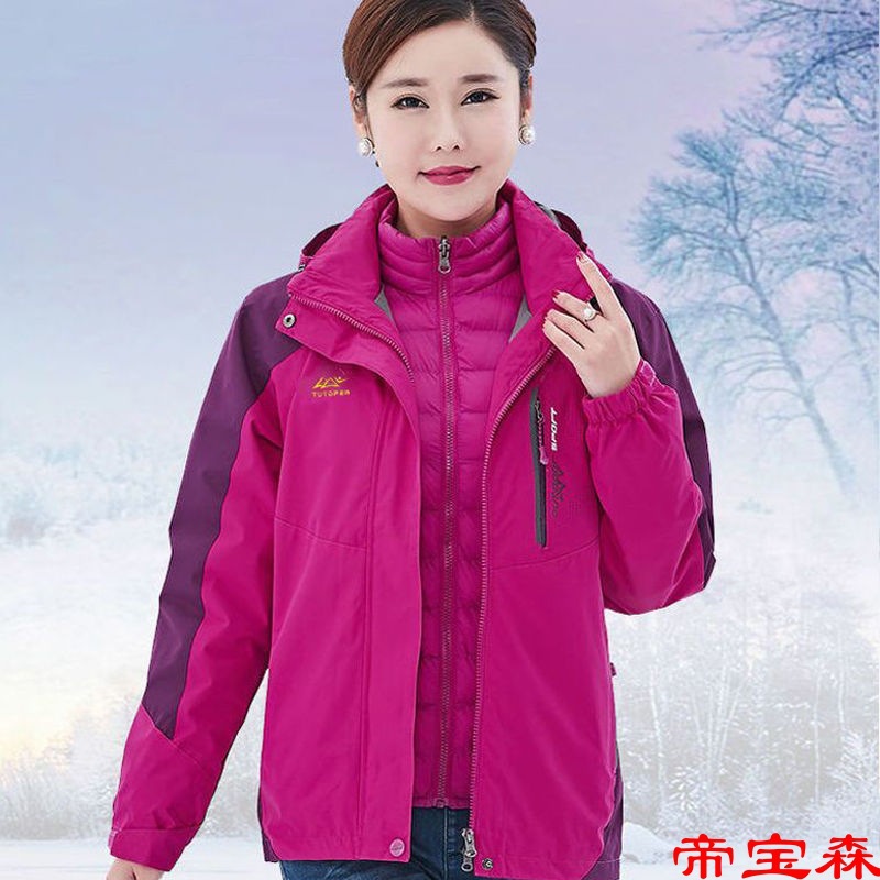 [방수 투피스 세트] 겨울 3 대 1 폭행 여성의 두꺼운 따뜻한 바지 남성 중년 및 노인 재킷스토어 가기