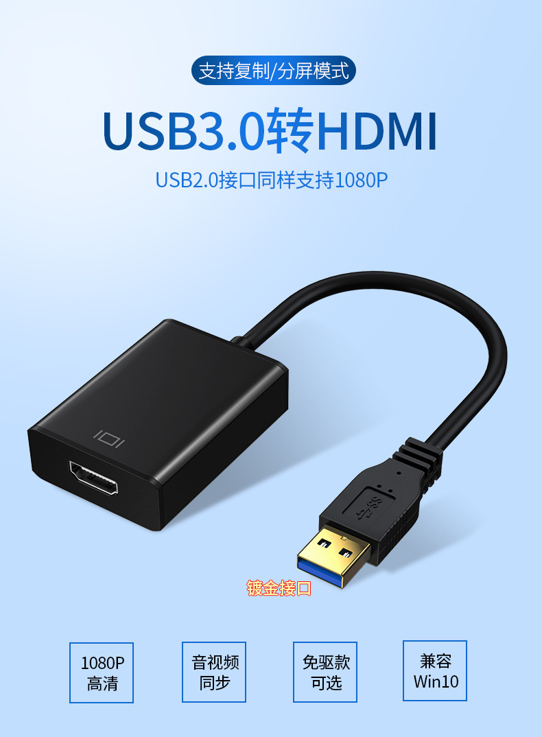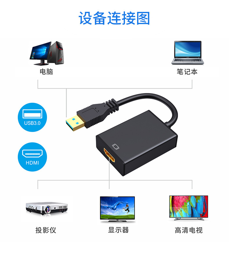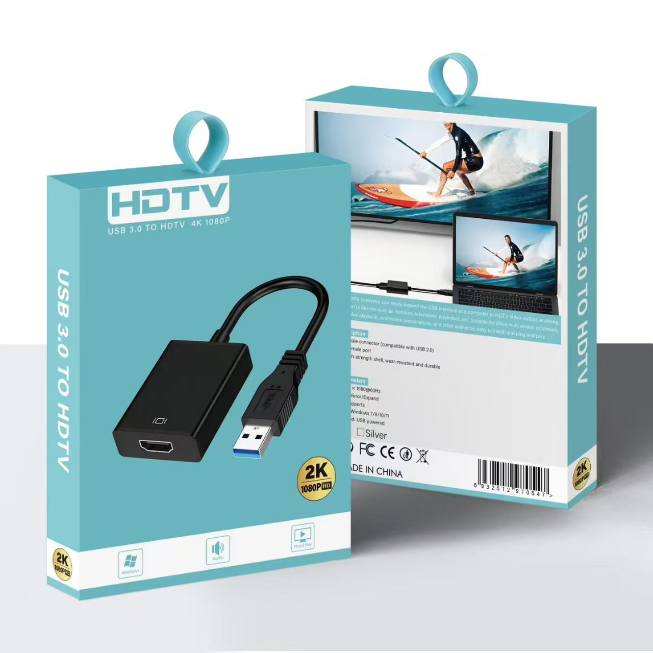 크로스보더 USB-HDMI 컨버터 노트북 외부 모니터 프로젝터 어댑터 케이블 1080P 드라이버 불필요스토어 가기