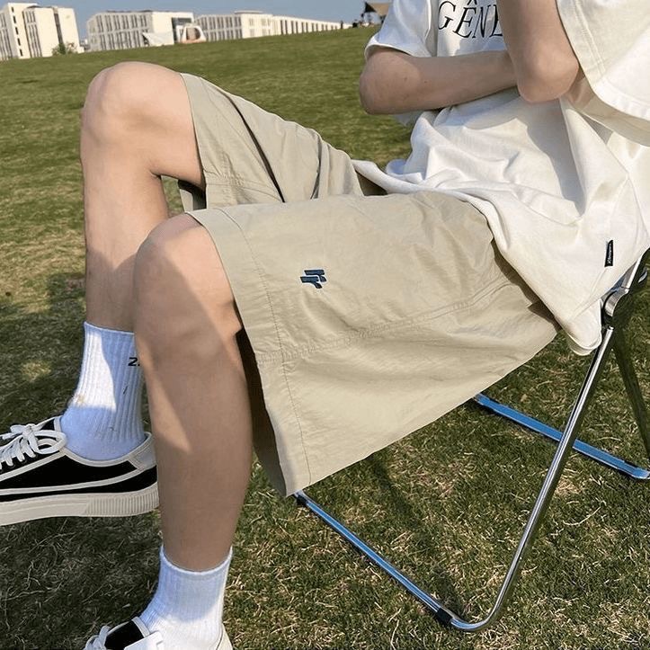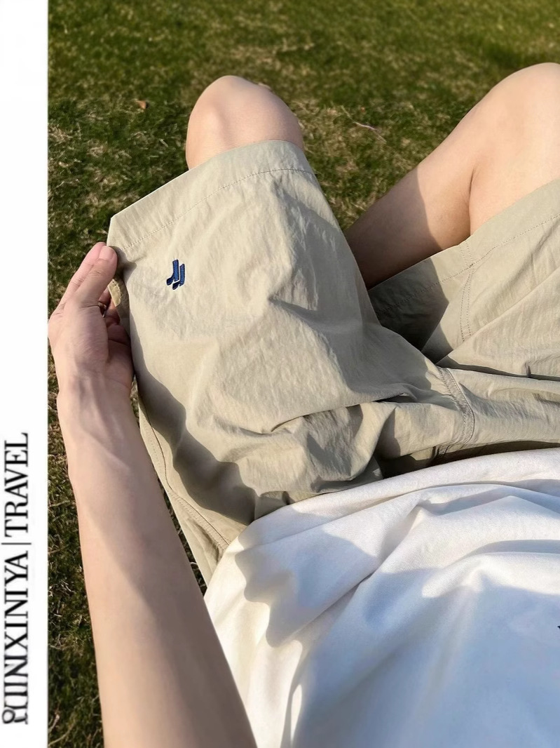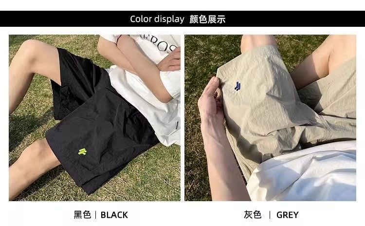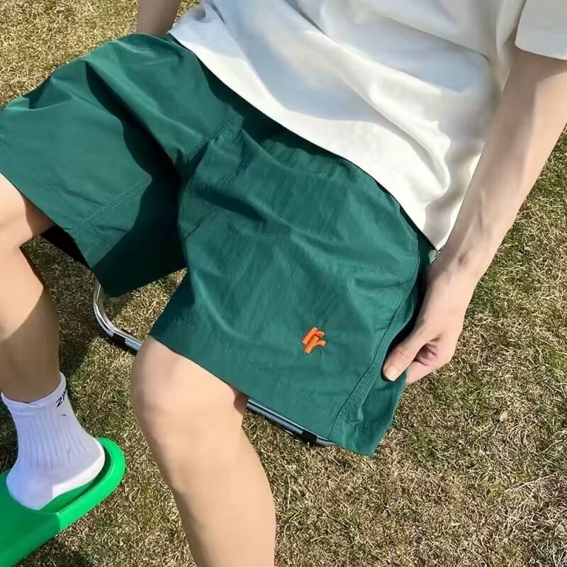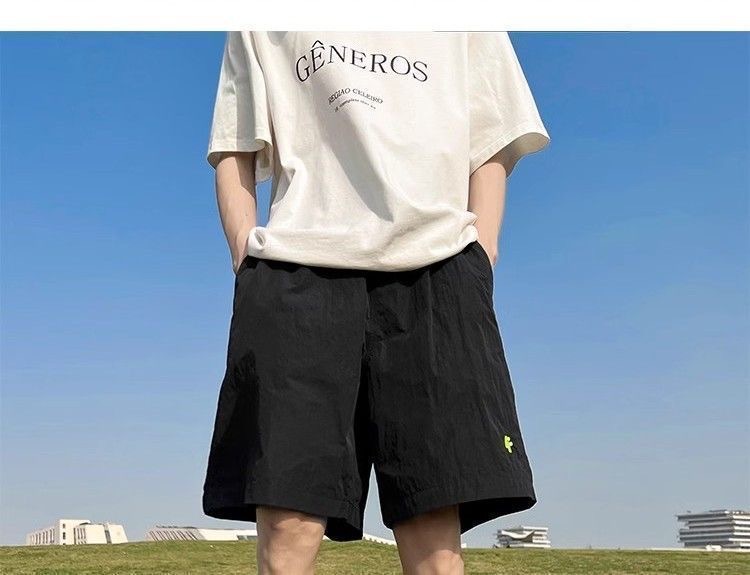 반바지 남자 여름 얇은 아이스 실크 빠른 건조 자수 비치 바지 유행 브랜드 느슨한 농구 5 점 캐주얼 스포츠 바지스토어 가기