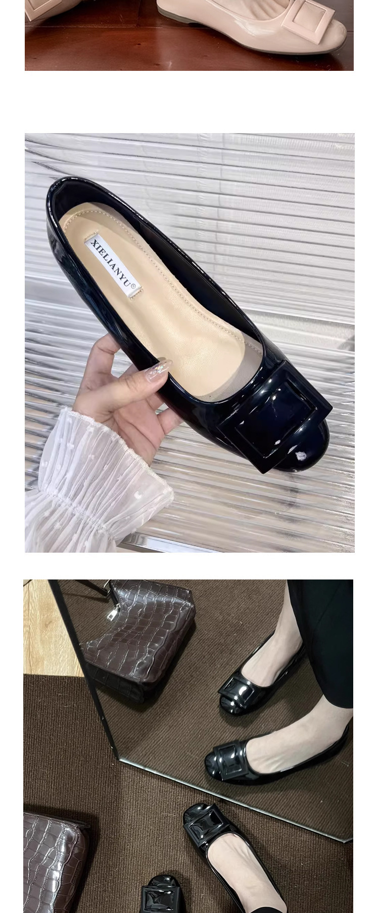 양가죽 버전 ~ 빨간색 보이지 않는 내부 고조 신발 여성 둥근 머리 r 사각 버클 작은 향수 v 아름다운 플랫 통근 신발스토어 가기
