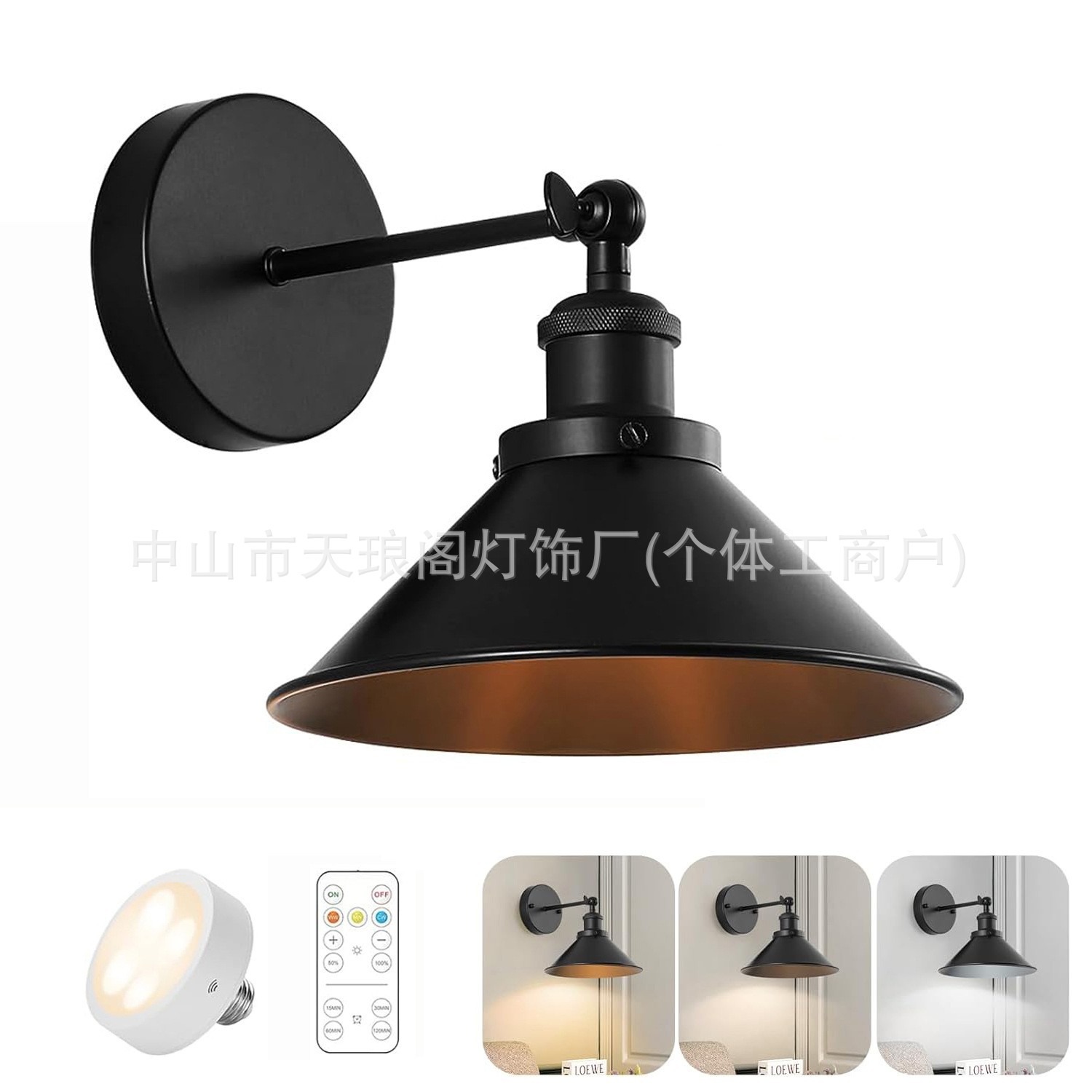 국경 간 아마존 미국 벽 램프 블랙 레트로 배선이없는 침실 침대 옆 통로 복도 창조적 인 철제 벽 램프