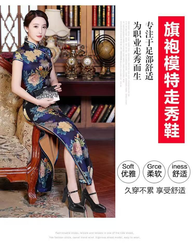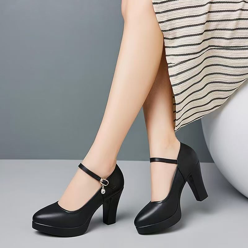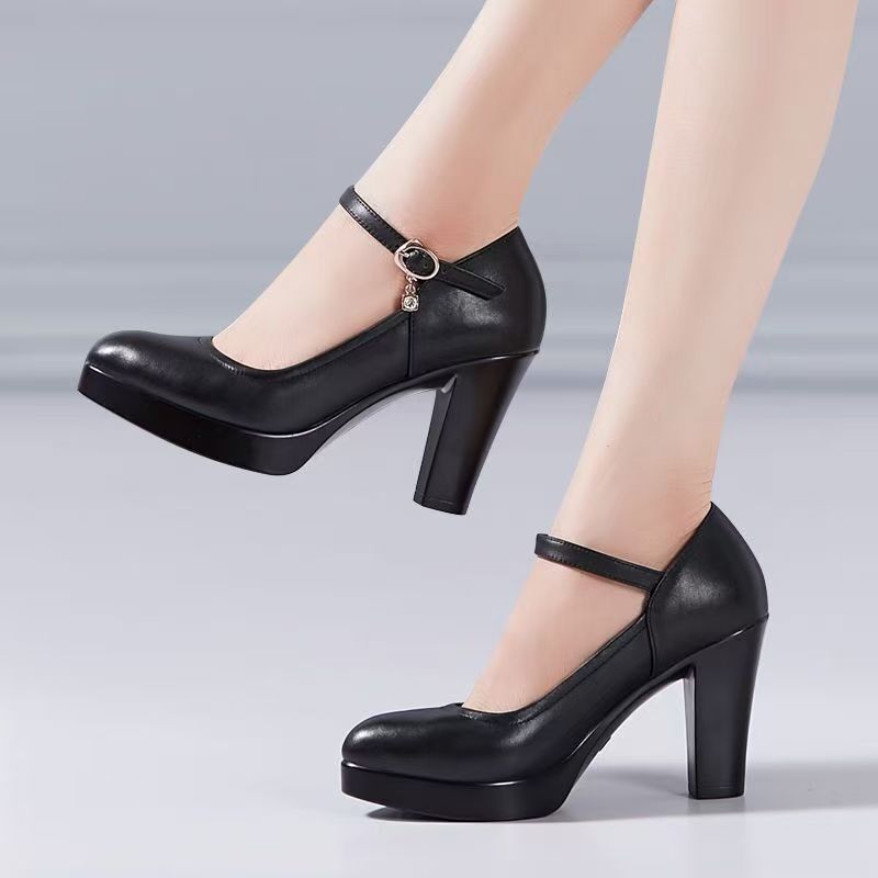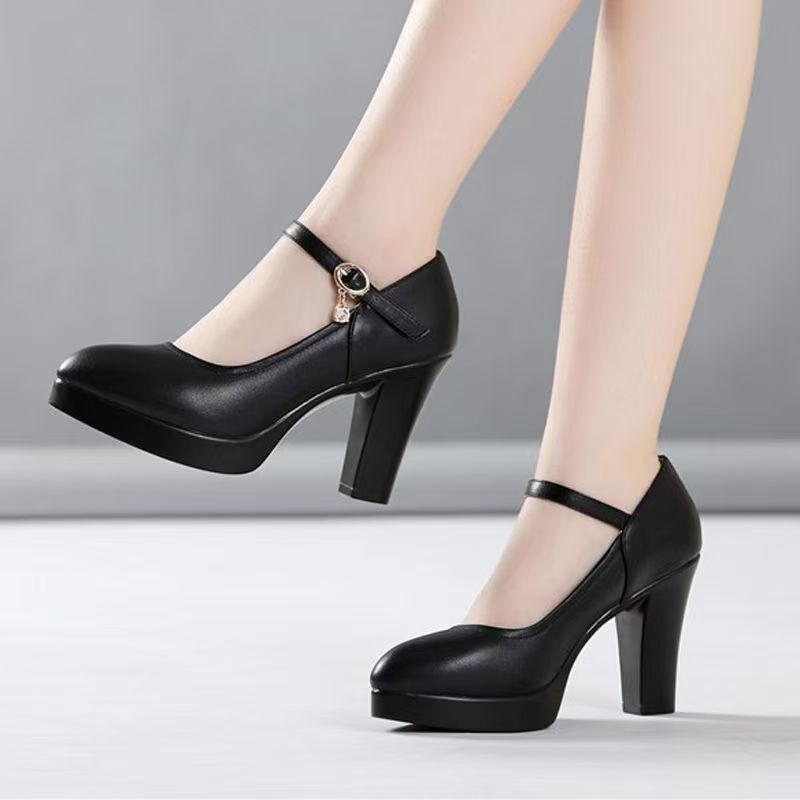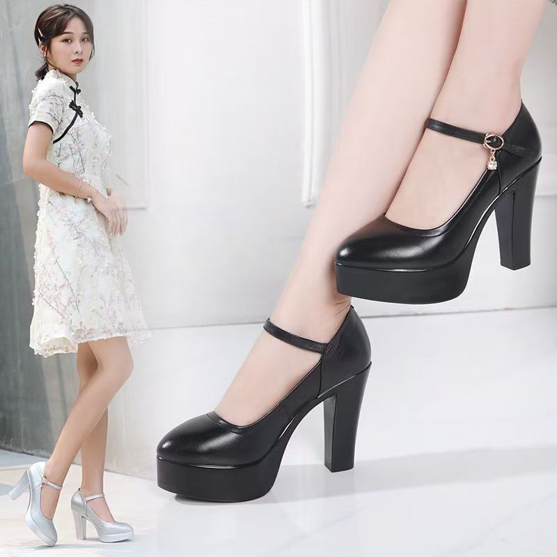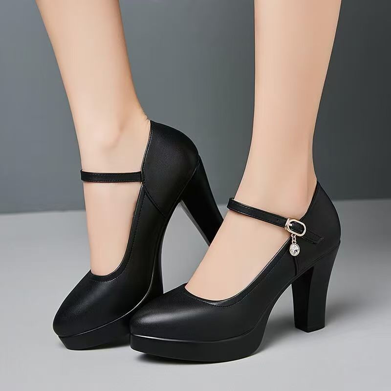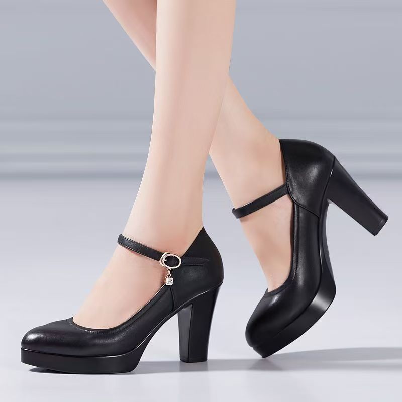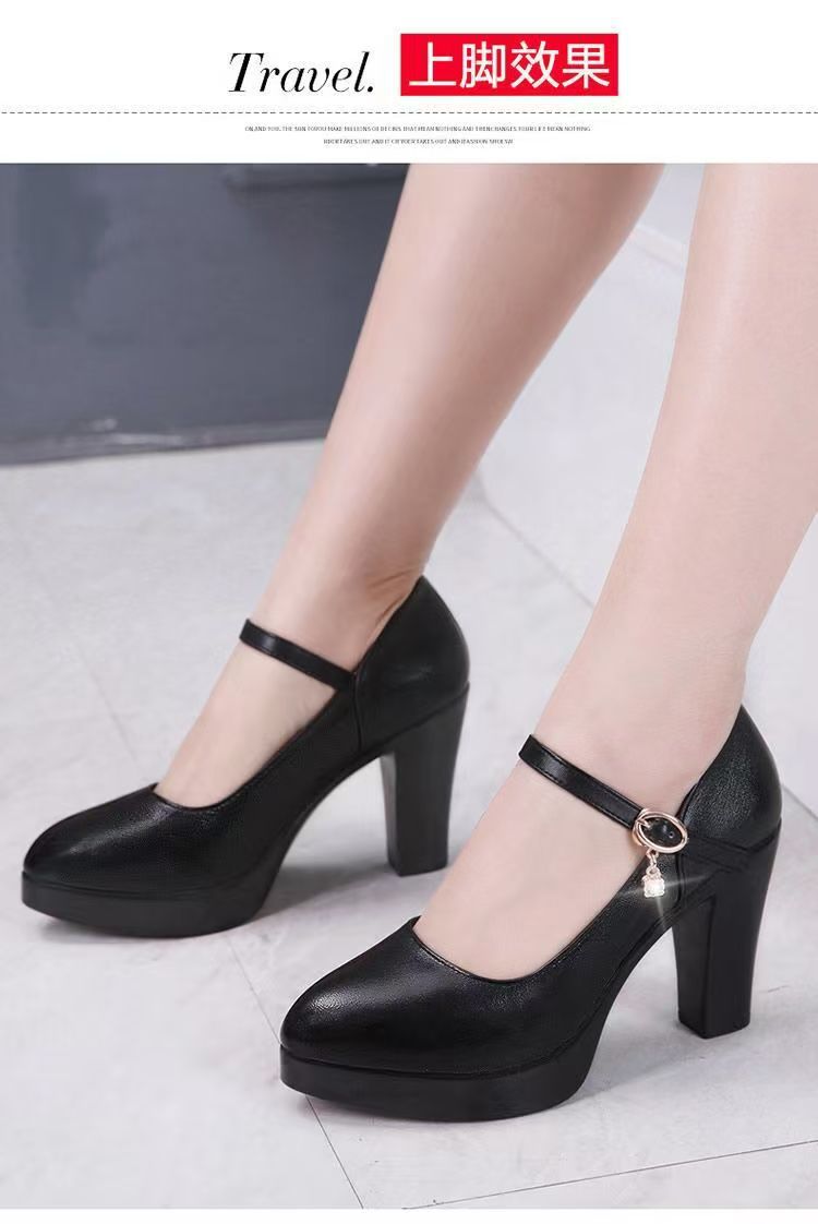 부드러운 가죽 부드러운 바닥 어머니 신발 하이힐 내마모성 방수 활 작업 신발 마이크로 비즈니스 그룹 구매 헤어 세대 라이브