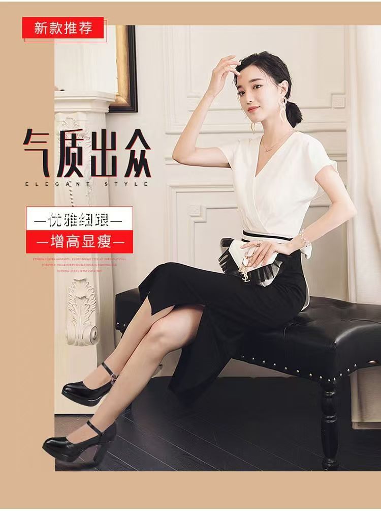 부드러운 가죽 부드러운 바닥 어머니 신발 하이힐 내마모성 방수 활 작업 신발 마이크로 비즈니스 그룹 구매 헤어 세대 라이브스토어 가기