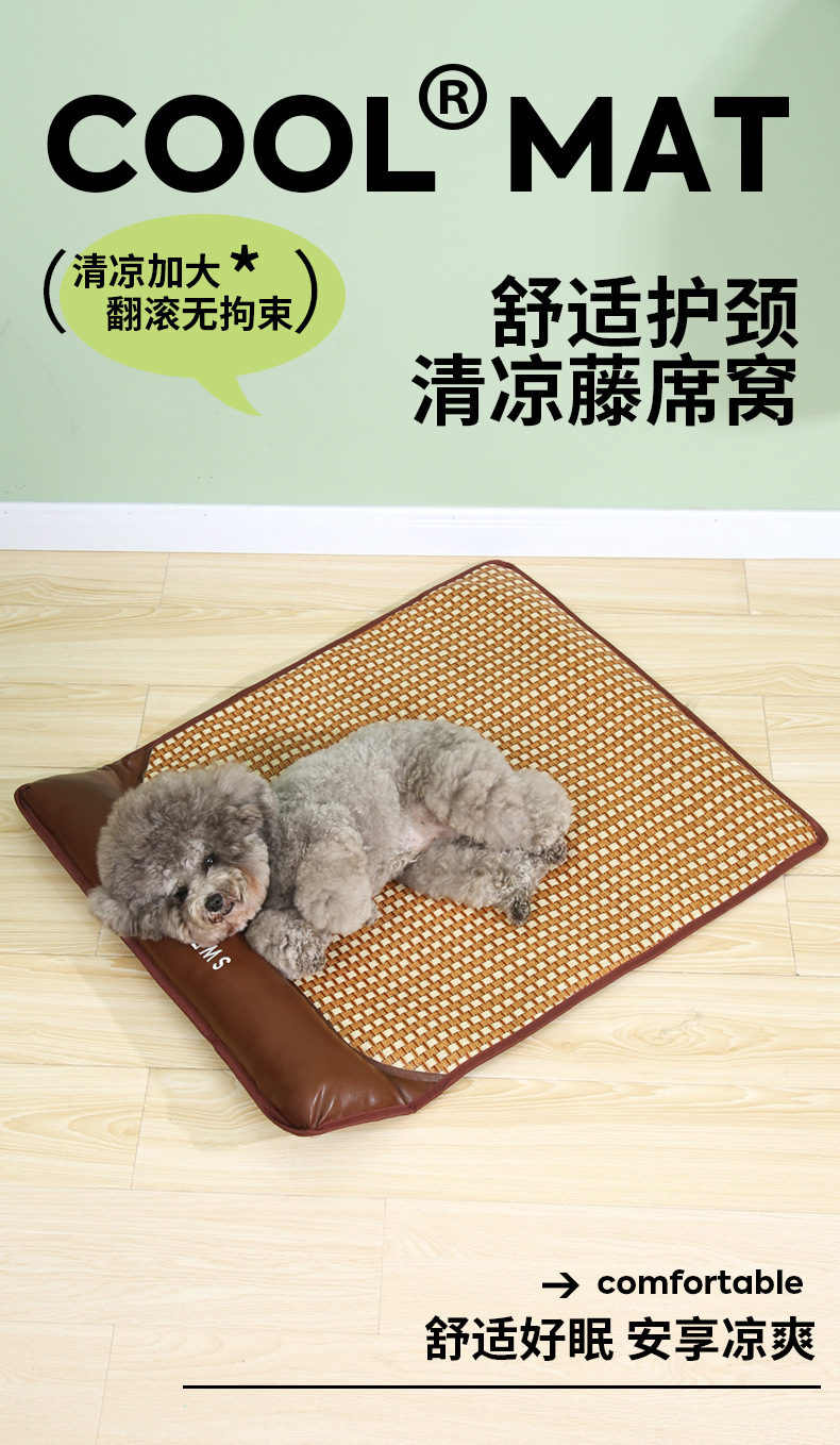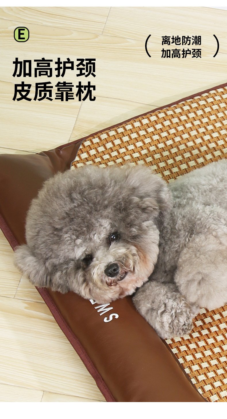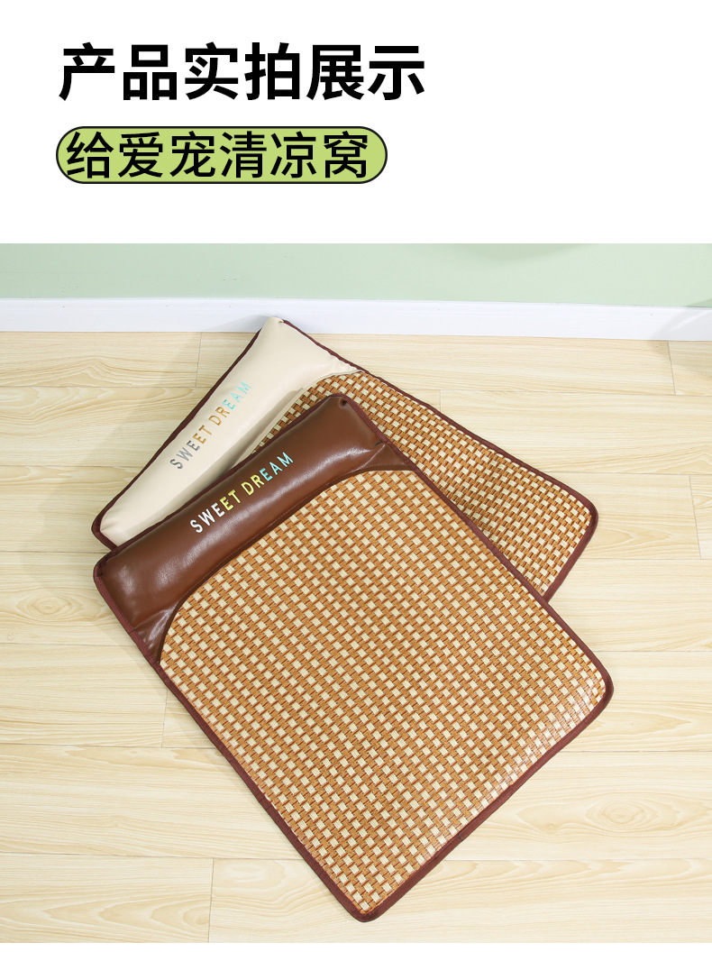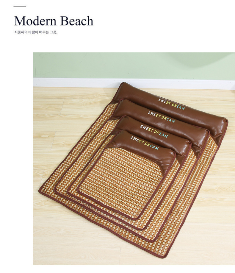 • 모조가죽 목베개 등나무매트 [크림색] 100*80CM 40kg마리 이내 애완동물