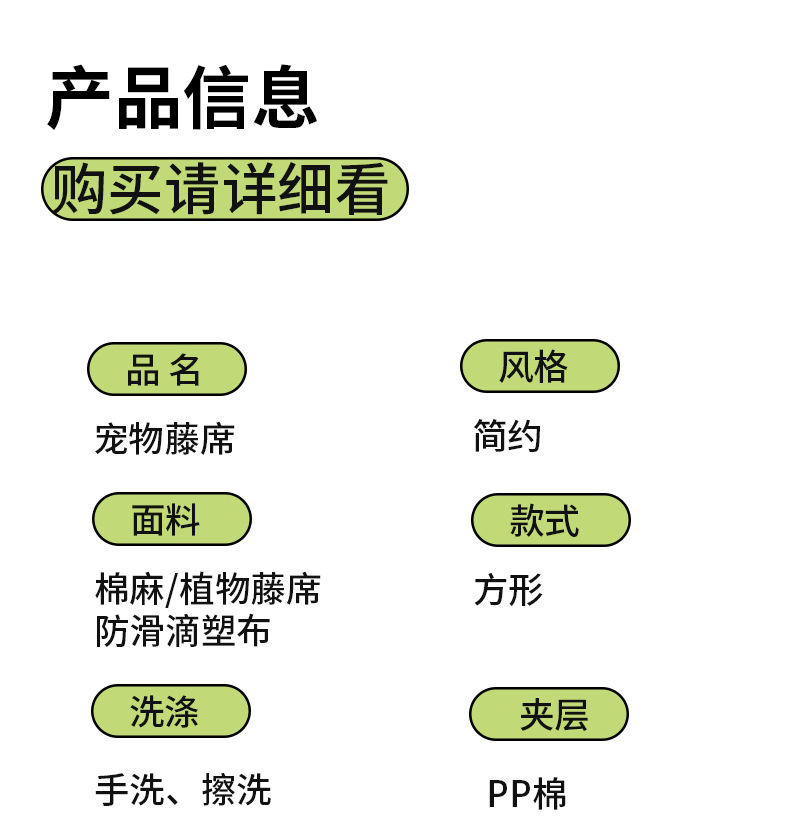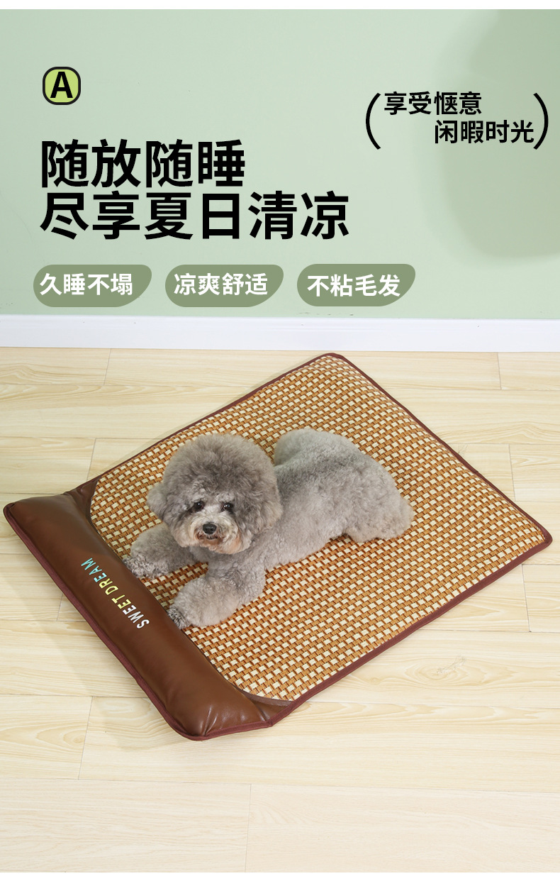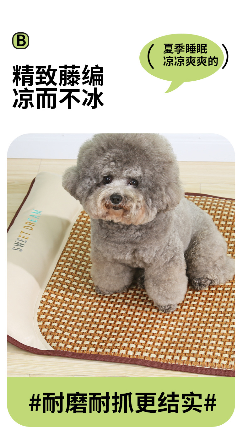 • 모조가죽 목베개 등나무매트 [크림색] 100*80CM 40kg마리 이내 애완동물