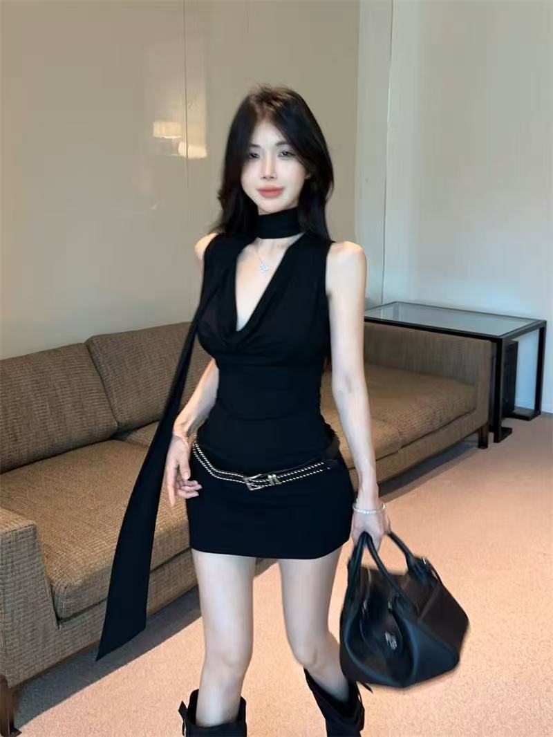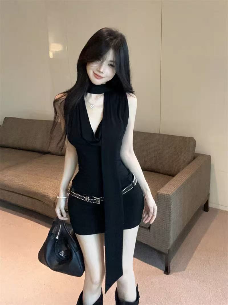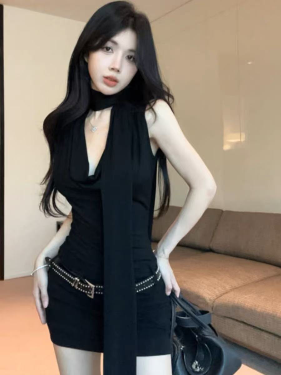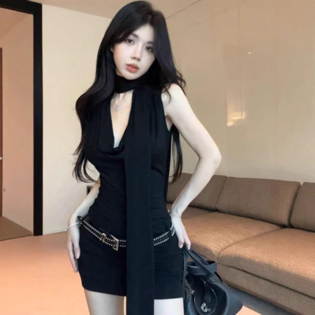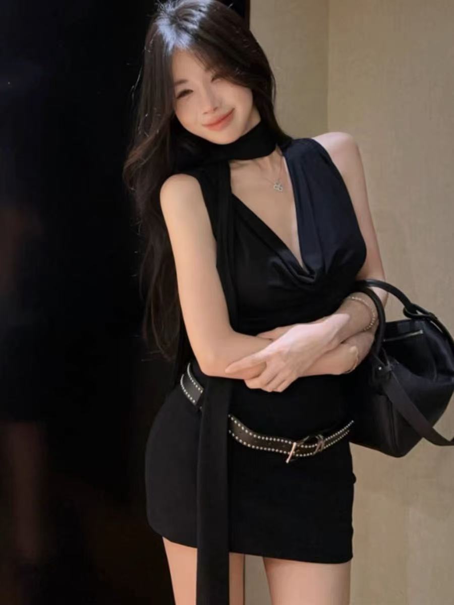 데이트 블랙 긴팔 왕실 자매 원피스 여성의 이른 봄 2025 새로운 슬림 핏 슬림 핏 짧은 치마스토어 가기