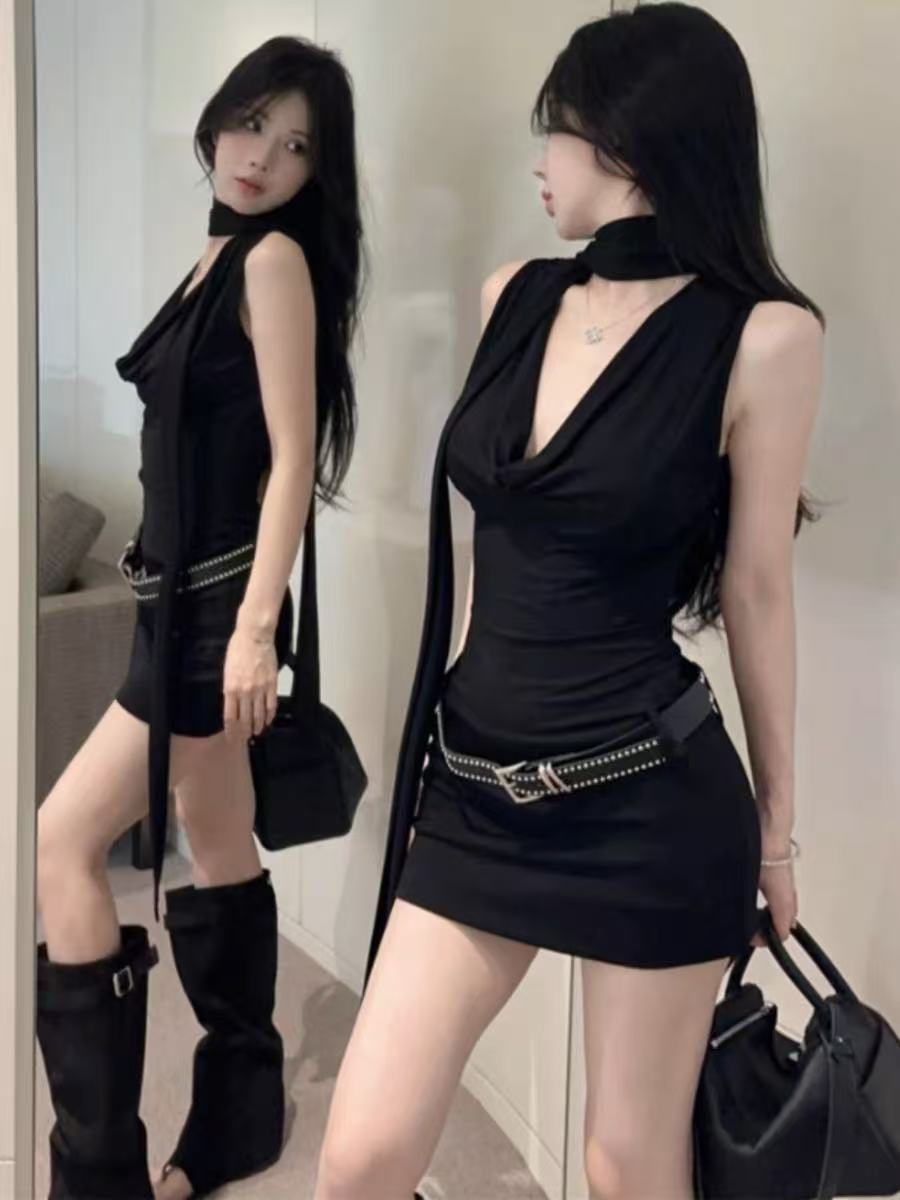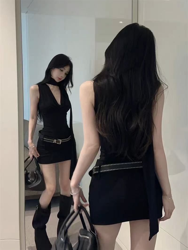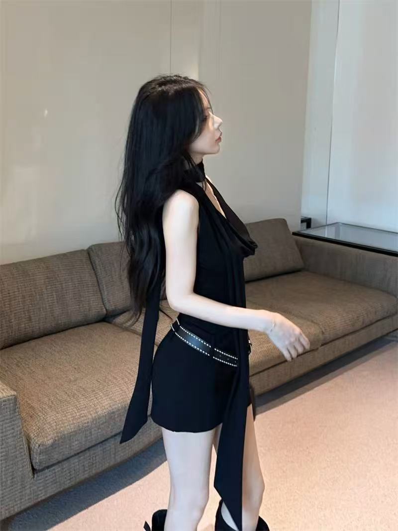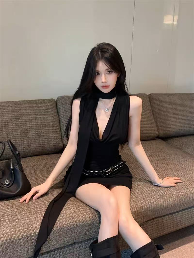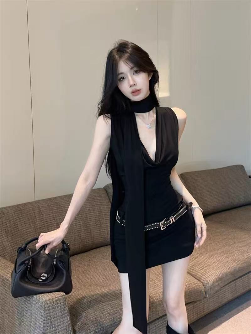 데이트 블랙 긴팔 왕실 자매 원피스 여성의 이른 봄 2025 새로운 슬림 핏 슬림 핏 짧은 치마스토어 가기