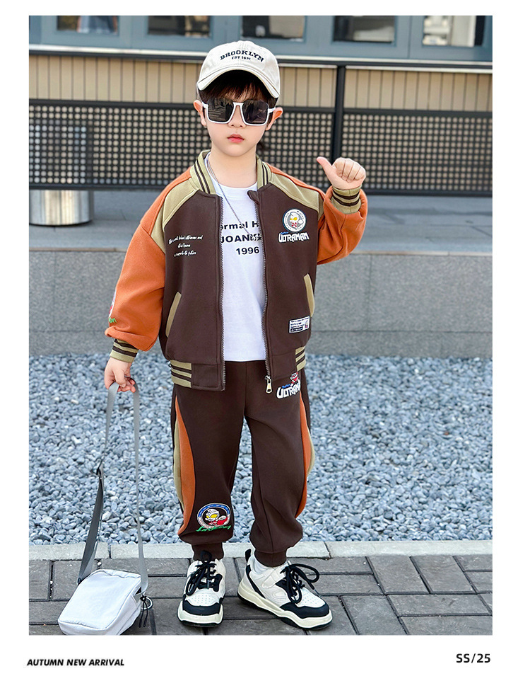 울트라 맨 옷 소년 봄과 가을 세트 2025 새로운 어린이 야구 세트 재킷 남자 보물 봄 스포츠 옷
