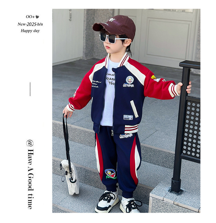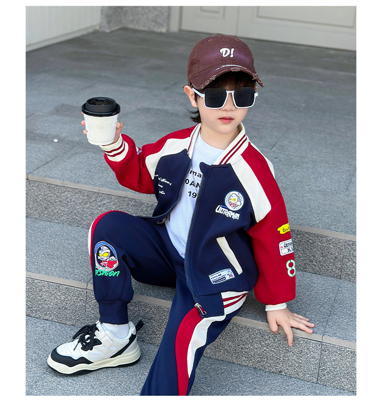 울트라 맨 옷 소년 봄과 가을 세트 2025 새로운 어린이 야구 세트 재킷 남자 보물 봄 스포츠 옷스토어 가기