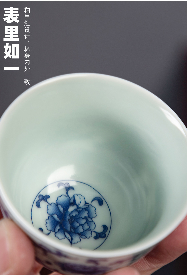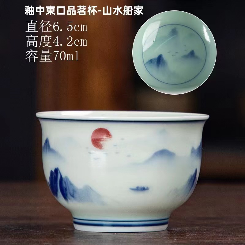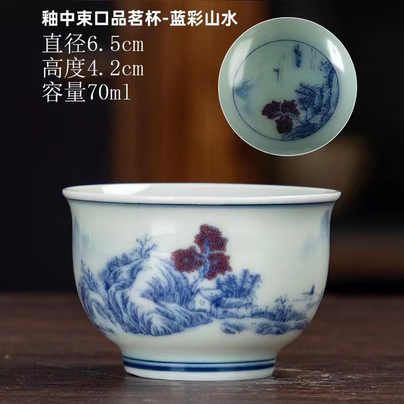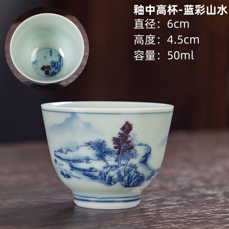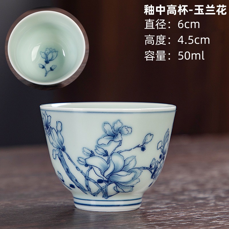빈티지 파란색과 흰색 세라믹 쿵푸 컵 마스터 컵 언더 유약 컬러 개인 차 시음 컵 중국 스타일