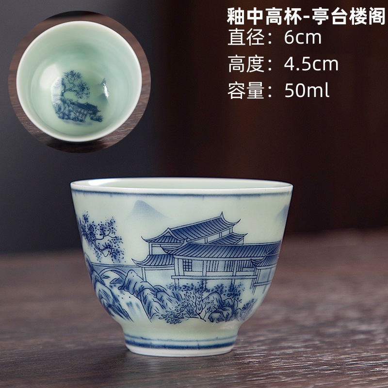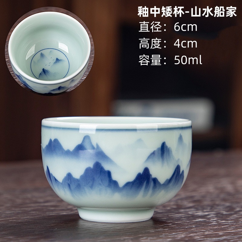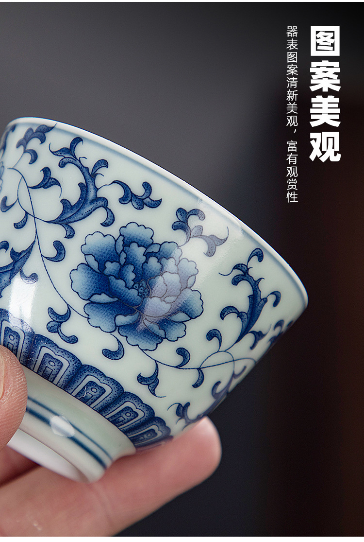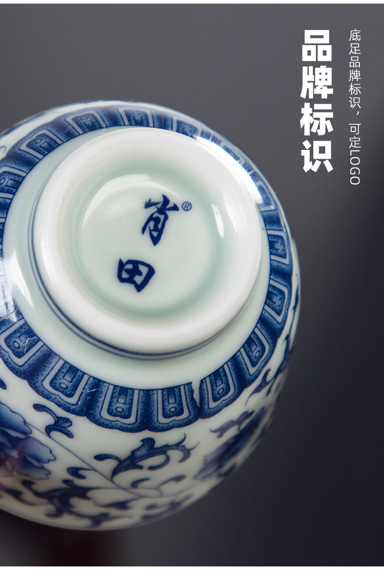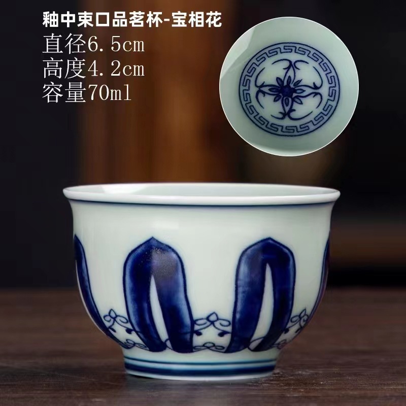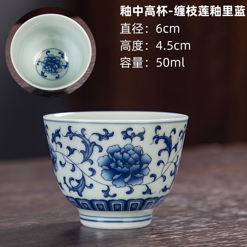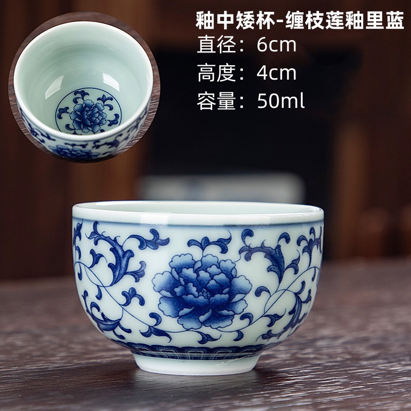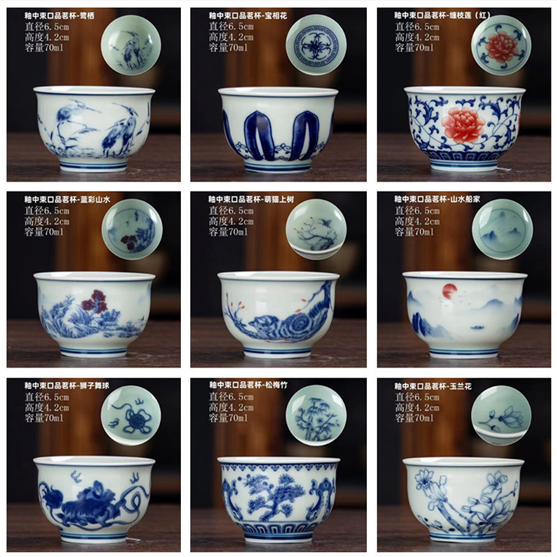 빈티지 파란색과 흰색 세라믹 쿵푸 컵 마스터 컵 언더 유약 컬러 개인 차 시음 컵 중국 스타일스토어 가기