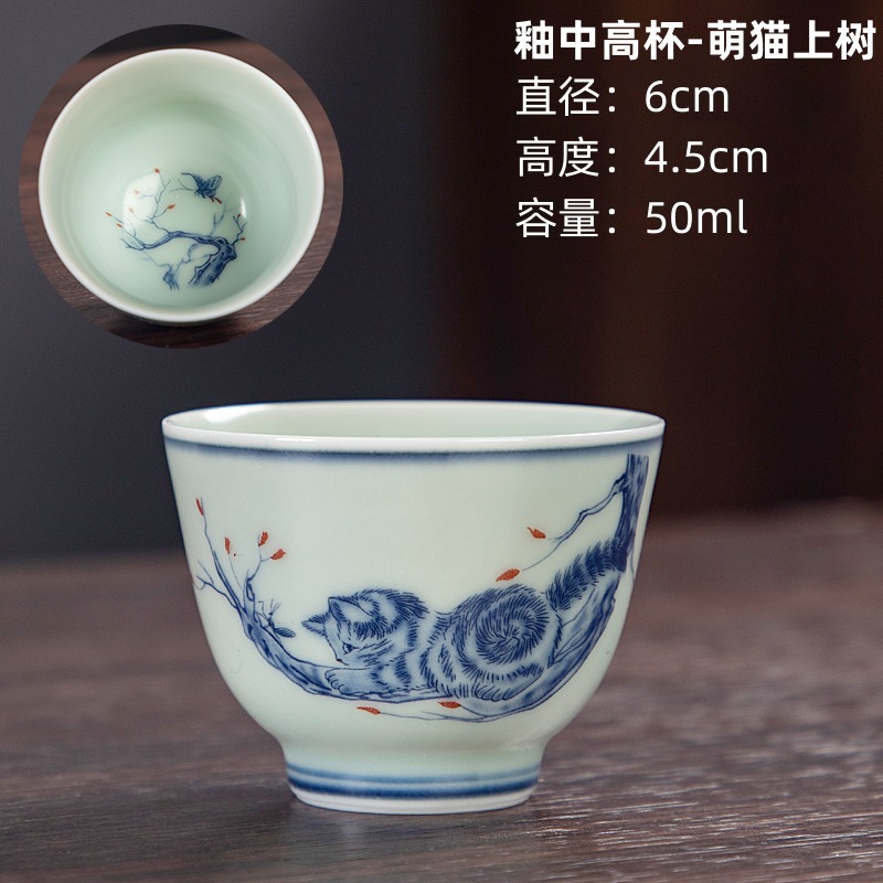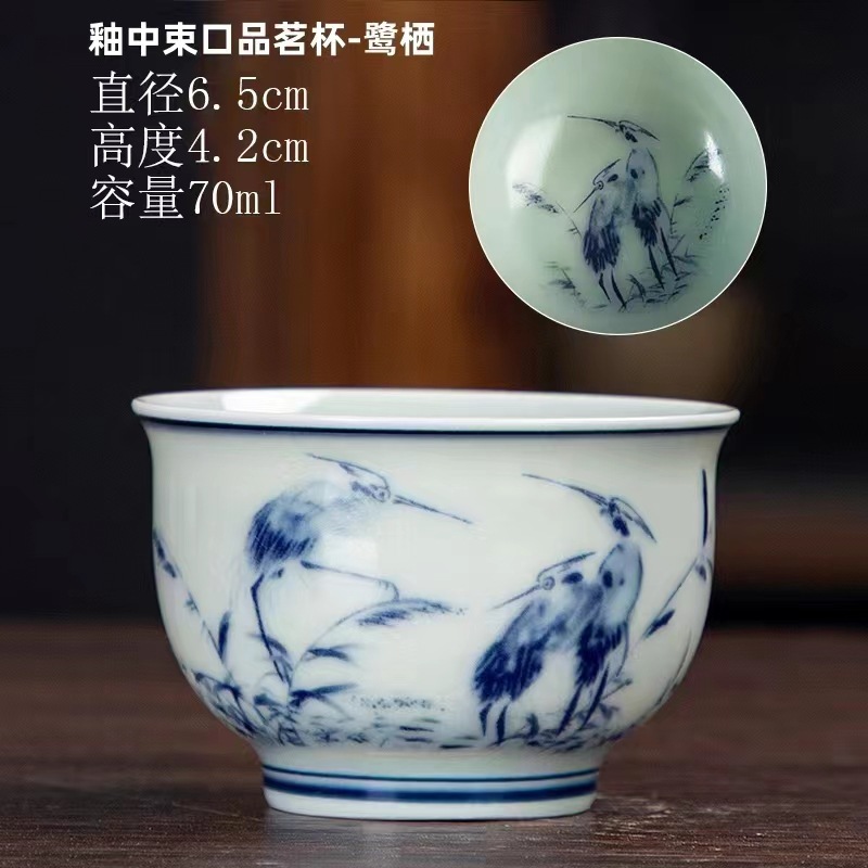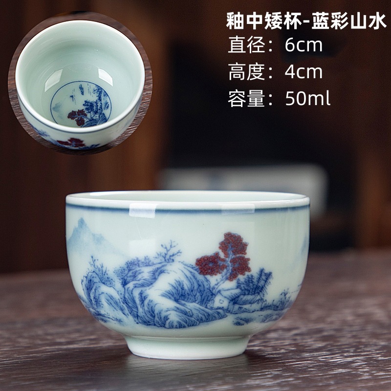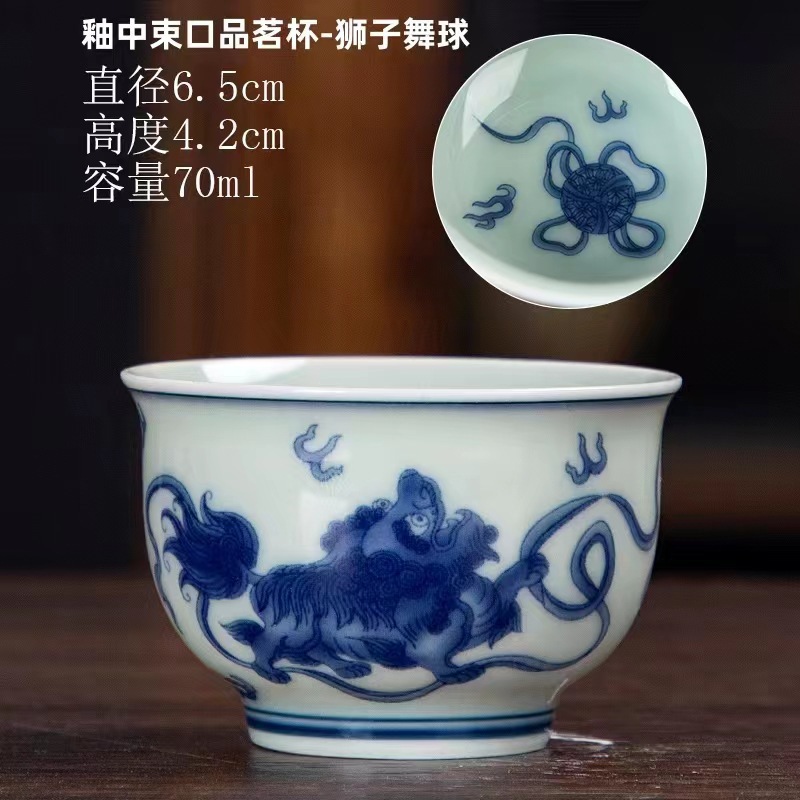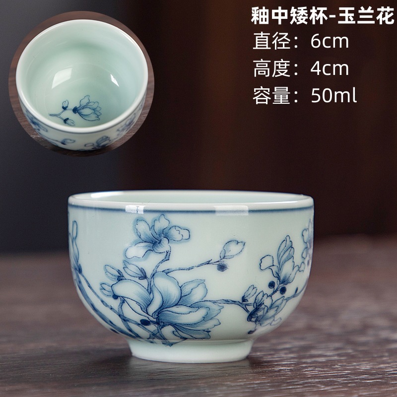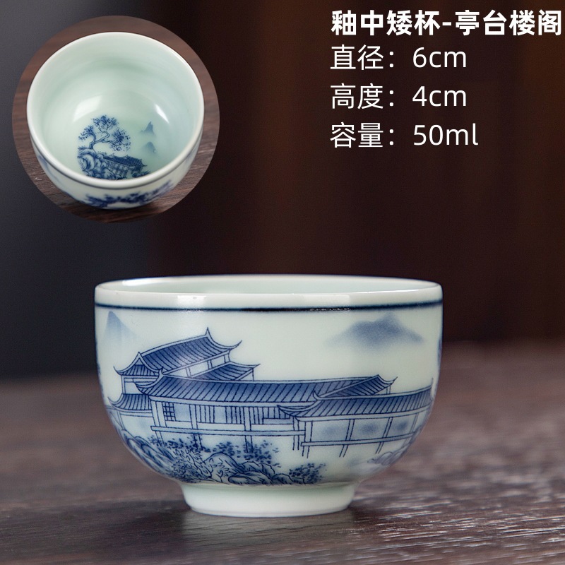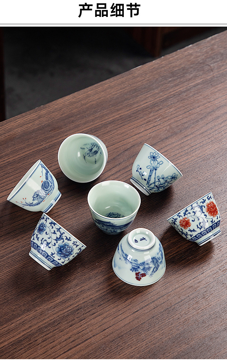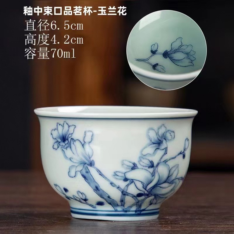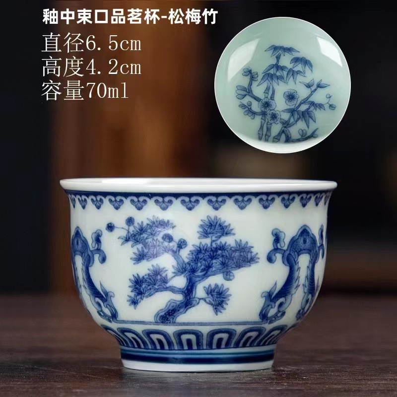 빈티지 파란색과 흰색 세라믹 쿵푸 컵 마스터 컵 언더 유약 컬러 개인 차 시음 컵 중국 스타일스토어 가기