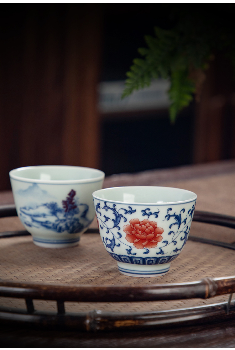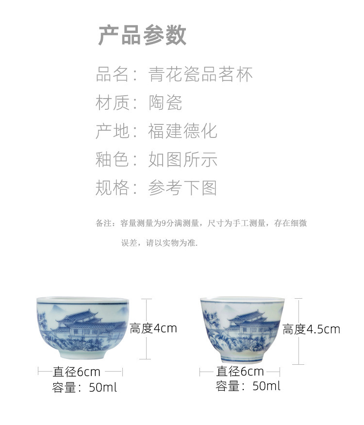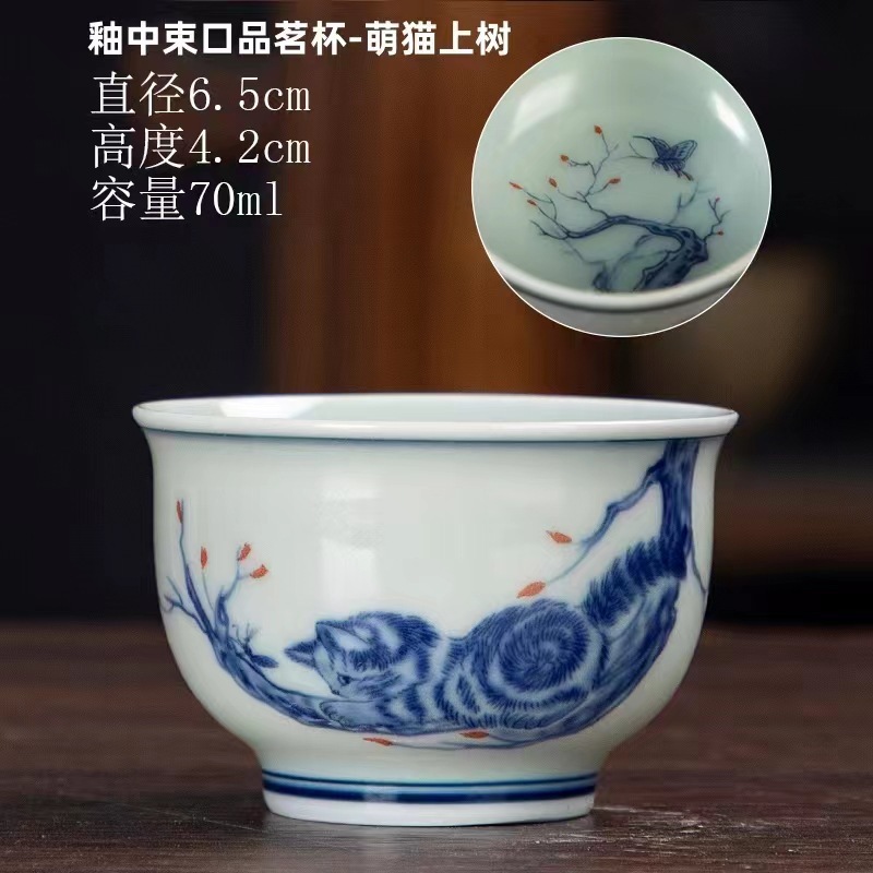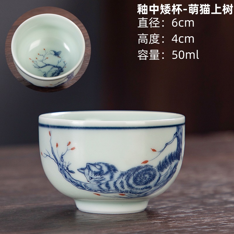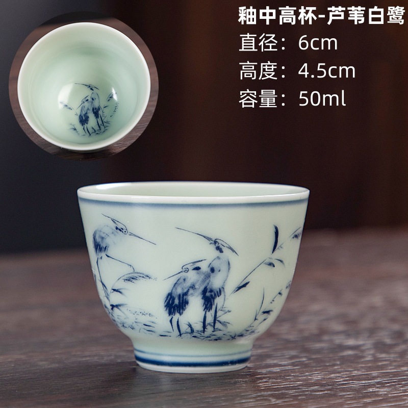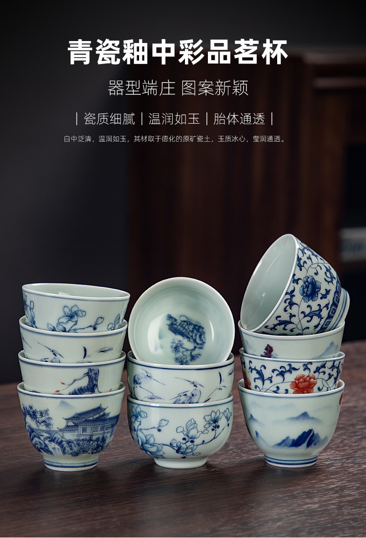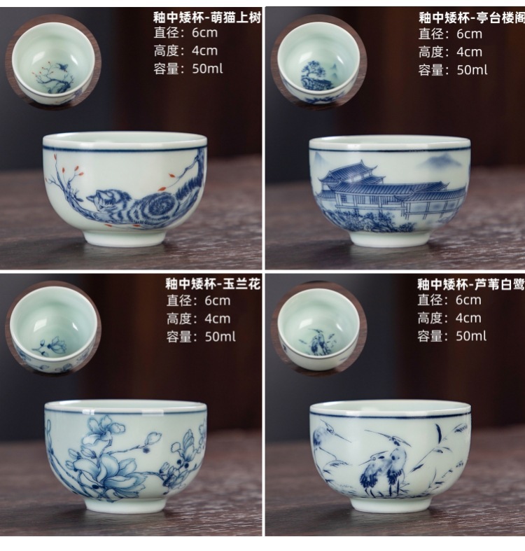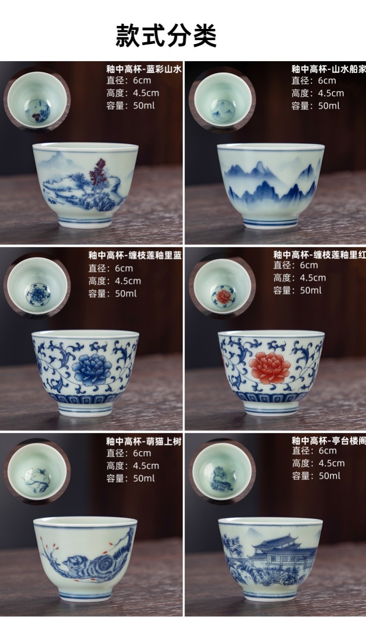 빈티지 파란색과 흰색 세라믹 쿵푸 컵 마스터 컵 언더 유약 컬러 개인 차 시음 컵 중국 스타일스토어 가기