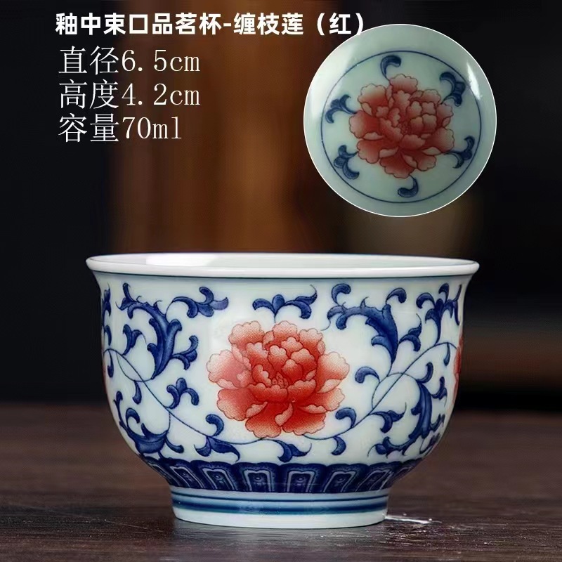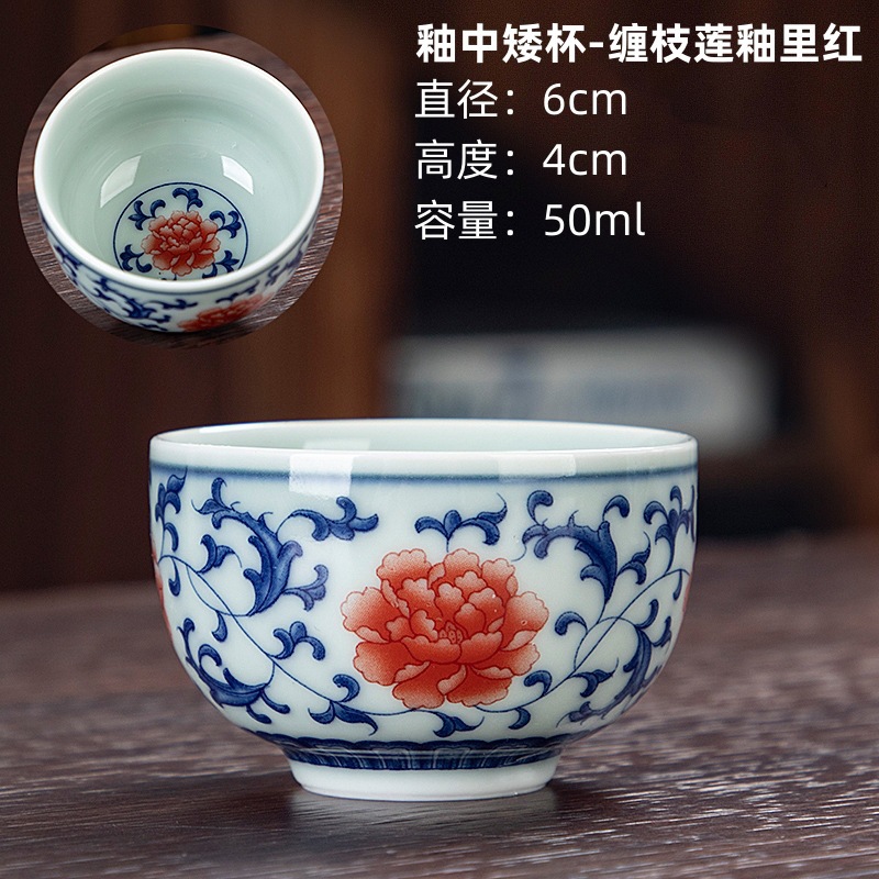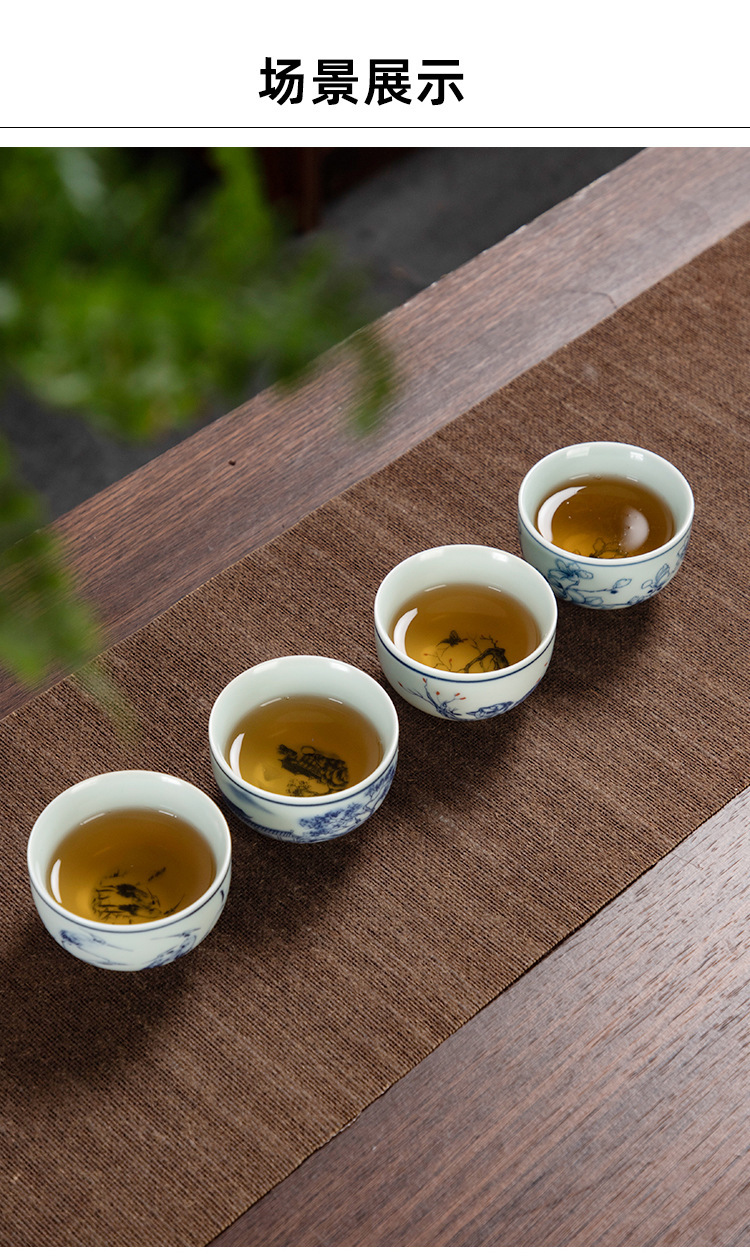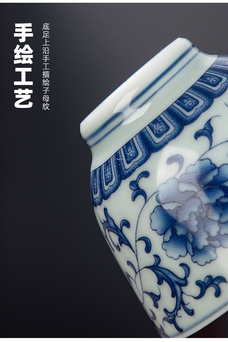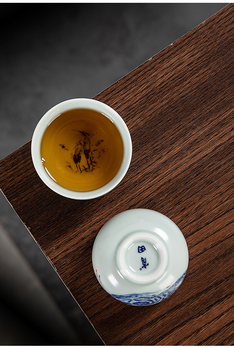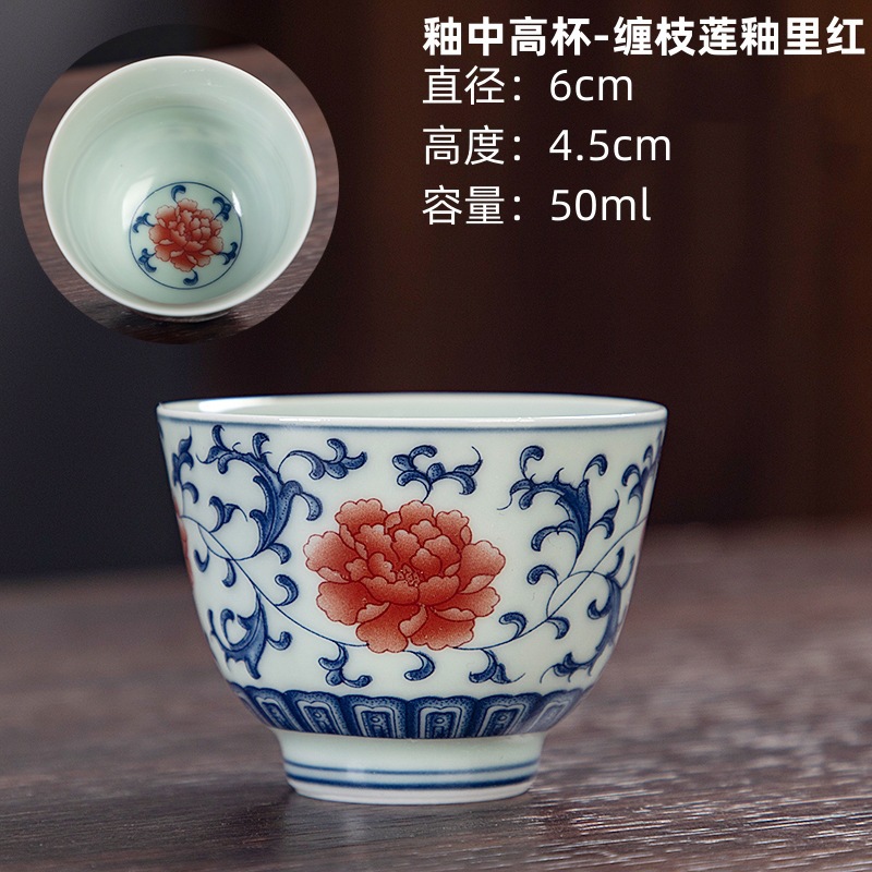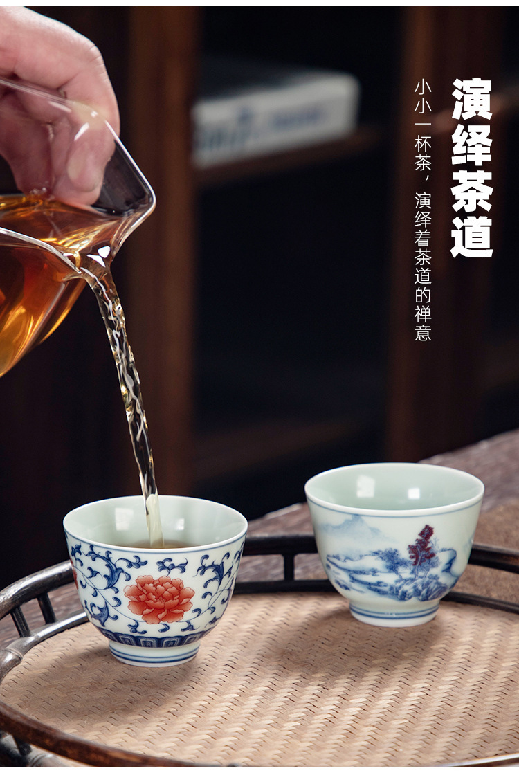 빈티지 파란색과 흰색 세라믹 쿵푸 컵 마스터 컵 언더 유약 컬러 개인 차 시음 컵 중국 스타일스토어 가기