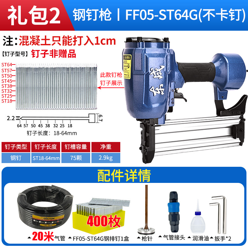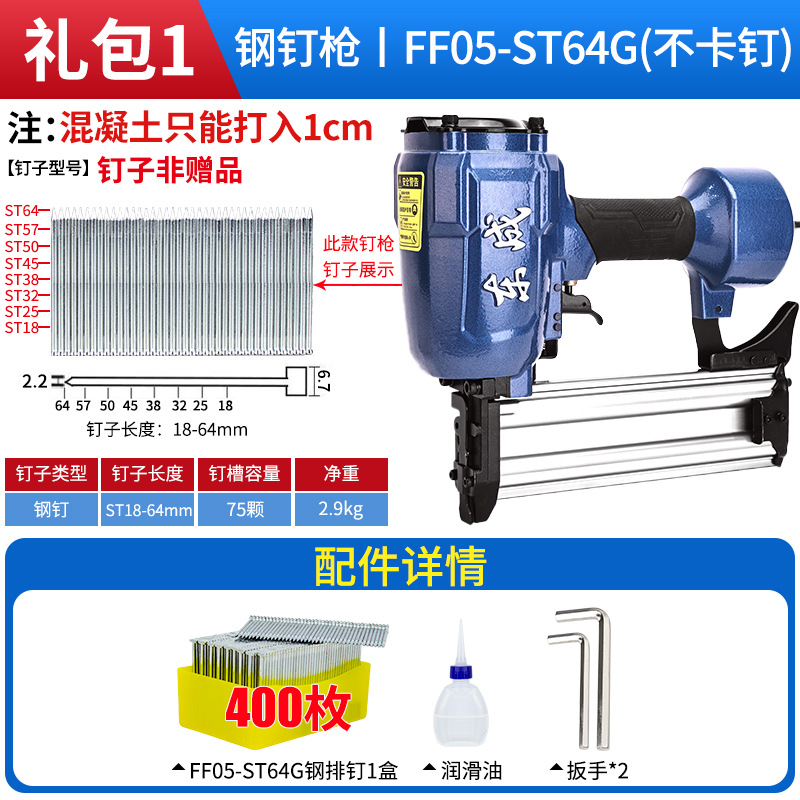 • [스틸 네일건] [못 걸림 없음, 안전 장치 있음] ST64G+ 선물 팩 1