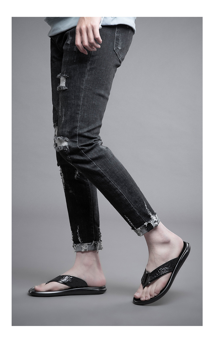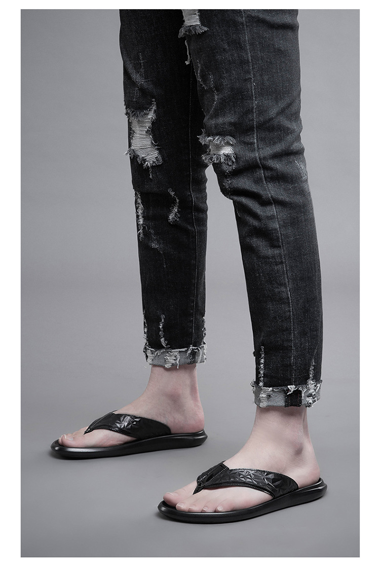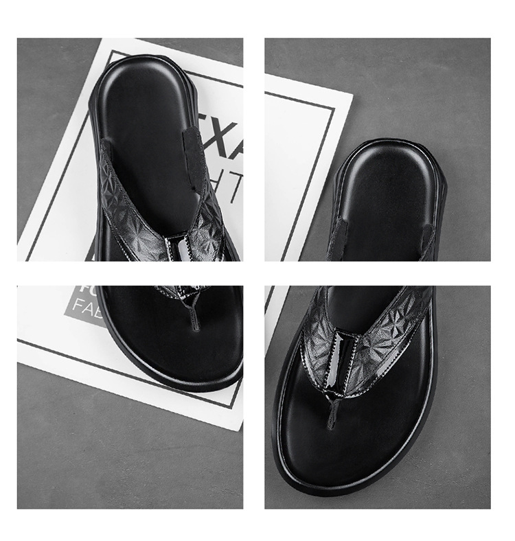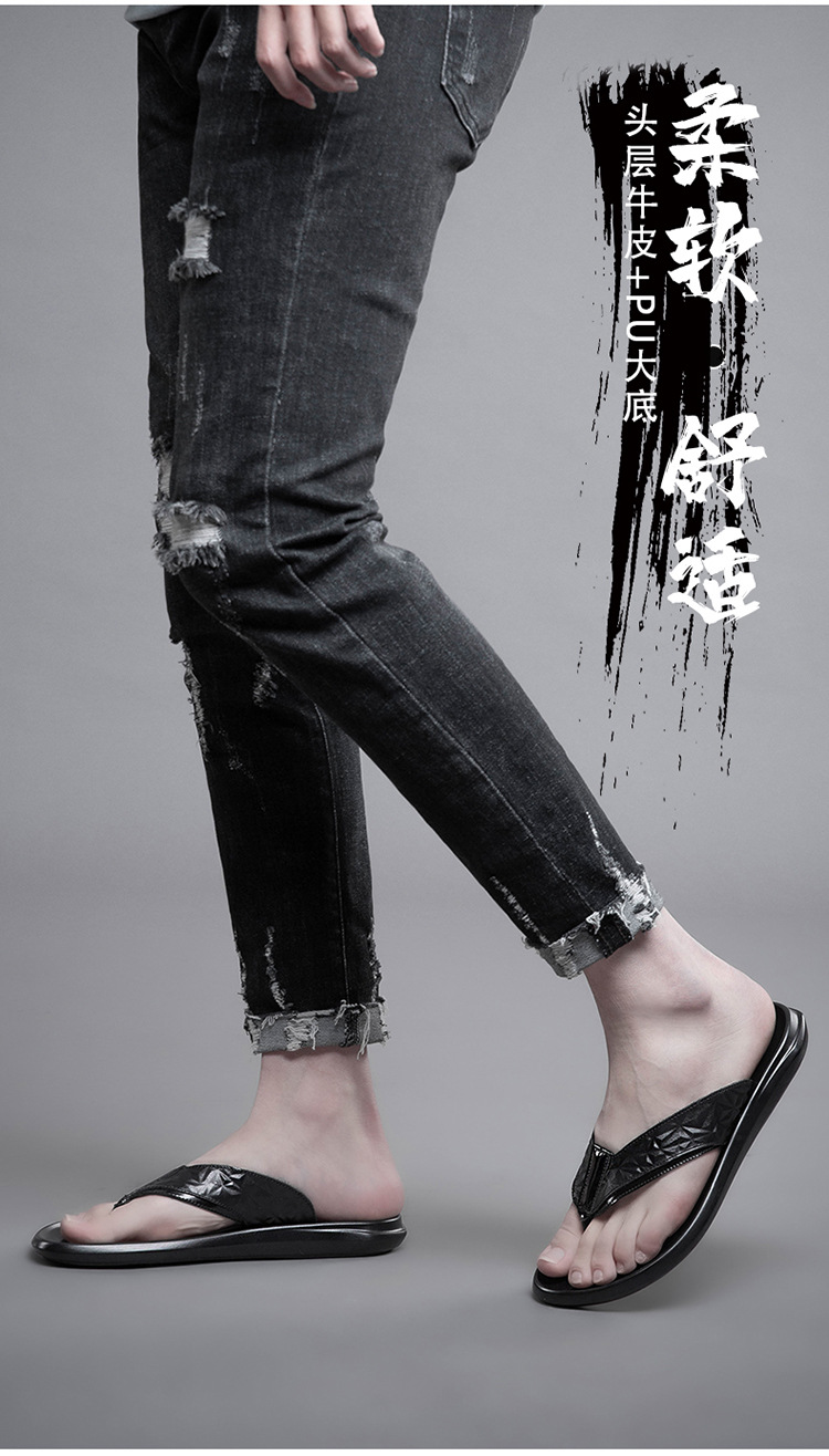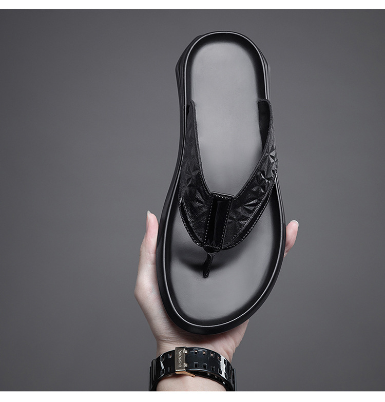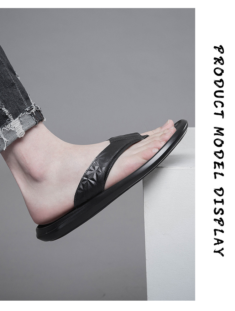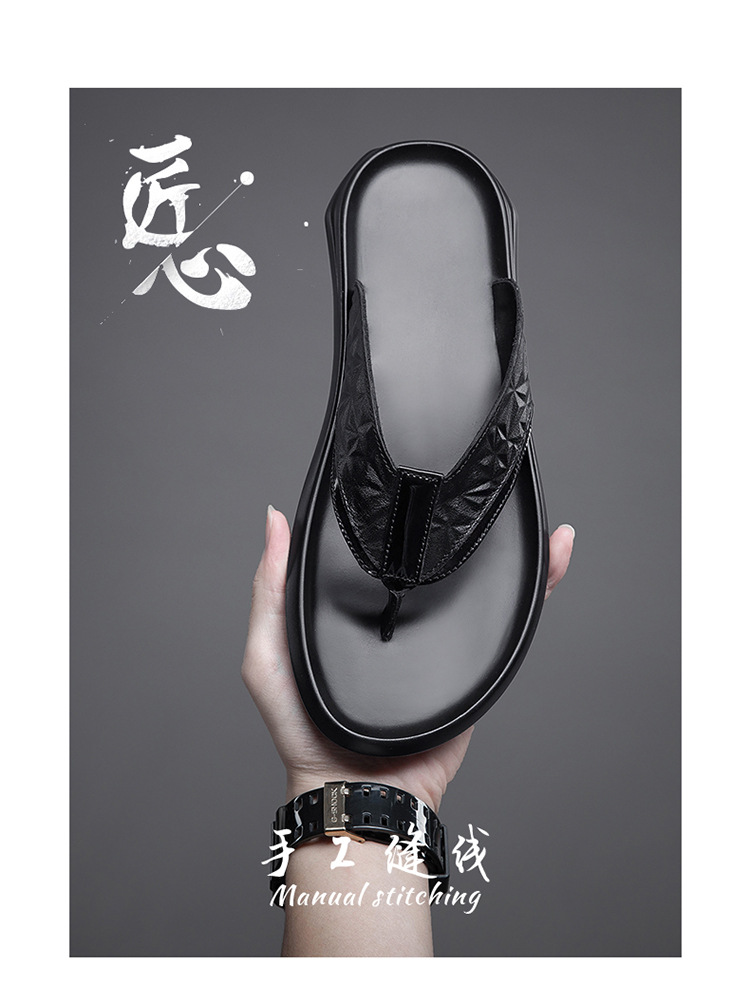 여름 소 가죽 클립 남성 플립 플롭 남성 정품 가죽 소프트 하단 외부 착용 미끄럼 방지 부목 야외 캐주얼 매일 슬리퍼