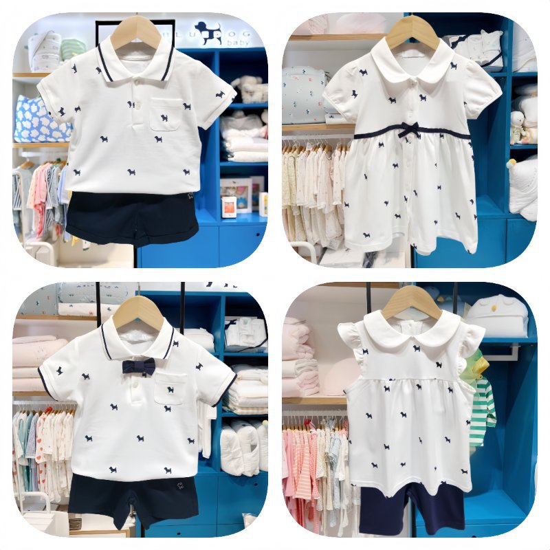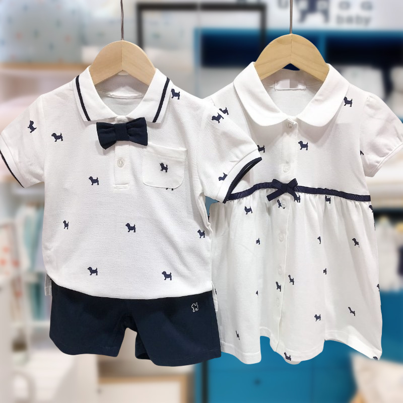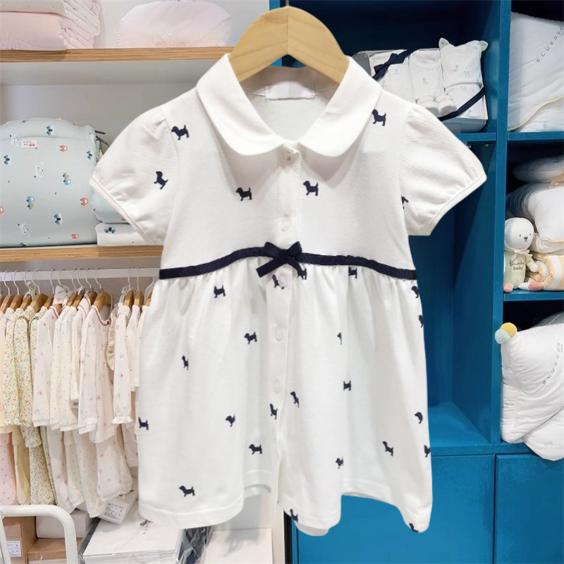 여름 새 소녀의 인쇄 허리 원피스 옷깃 짧은 소매 어린이 스커트 자매 스커트 착용 MS531603