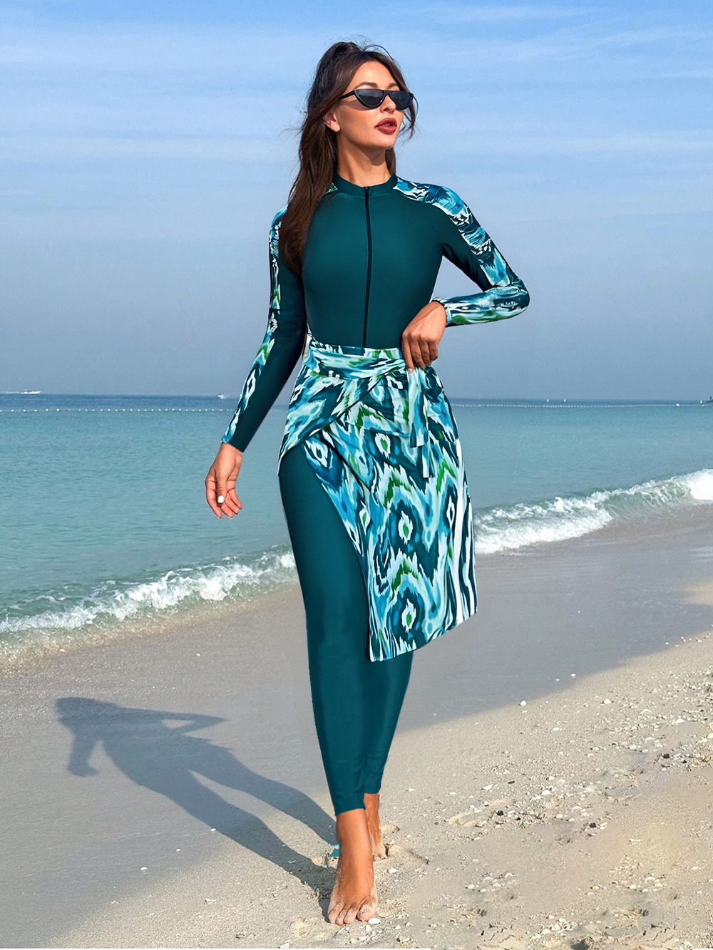 2025 새로운 서퍼 의류 여성 유럽 및 미국 국경 긴 소매 바지 태양 방지 빠른 건조 수영복 보수적 온천 수영복스토어 가기