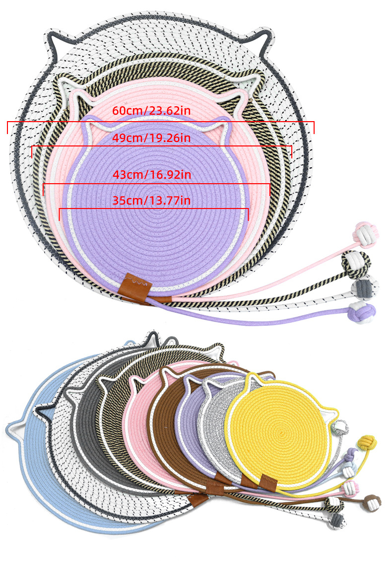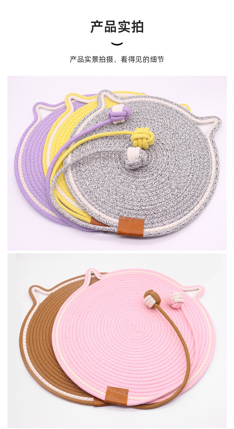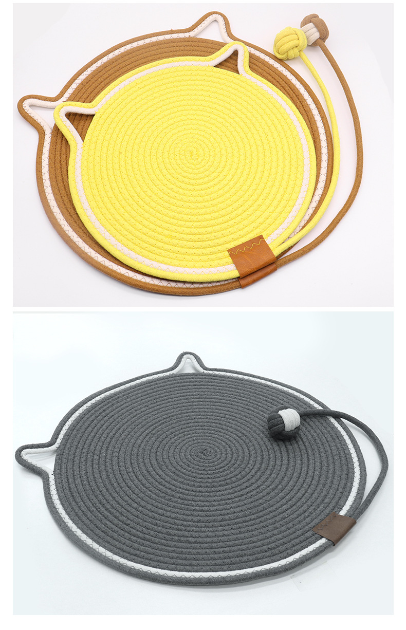 면 로프 볼로 짠 고양이 스크래치 패드가 있는 둥근 고양이 스크래치 패드, 내마모성 및 긁힘 방지 고양이 스크래치 패드, 부스러기가 없는 애완 동물 고양이 스크래치 패드스토어 가기