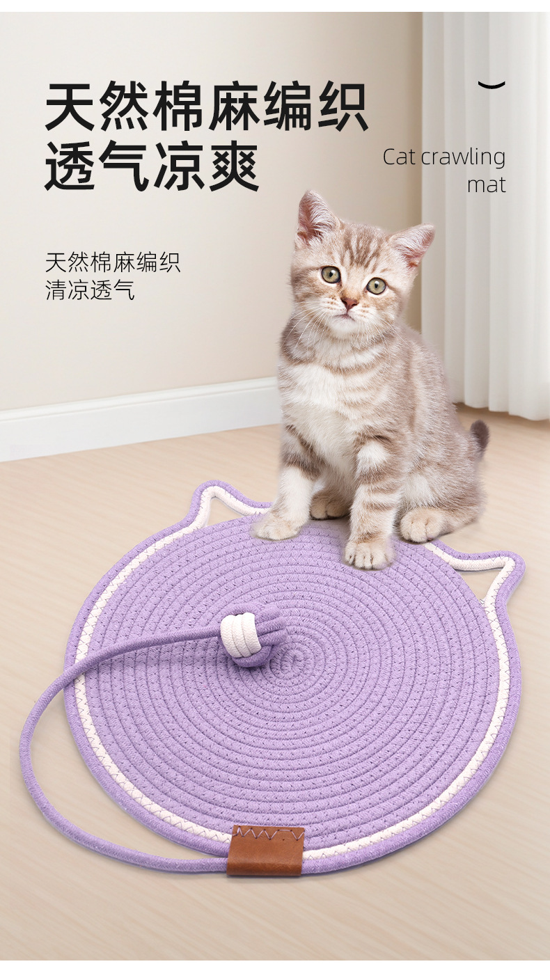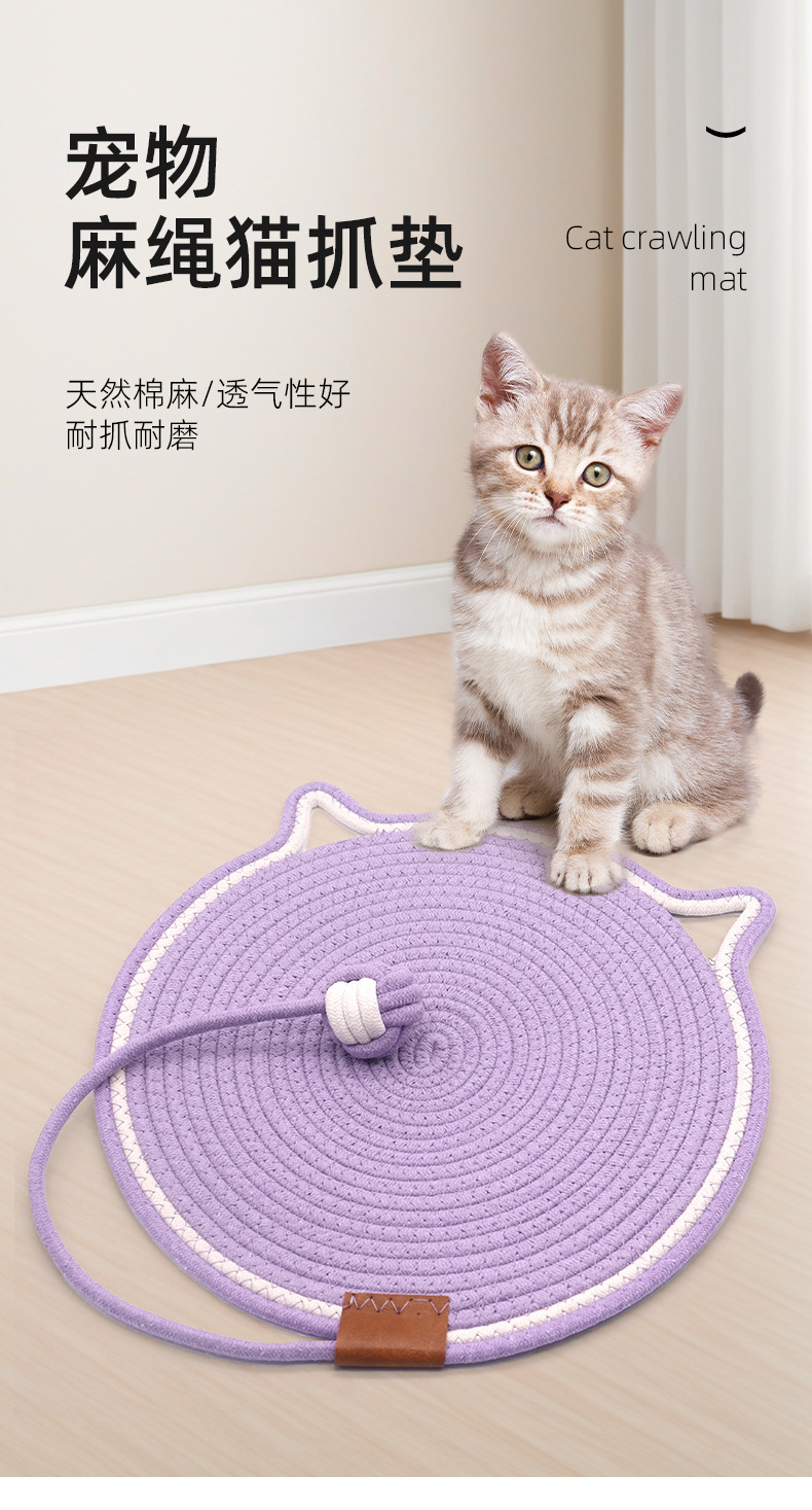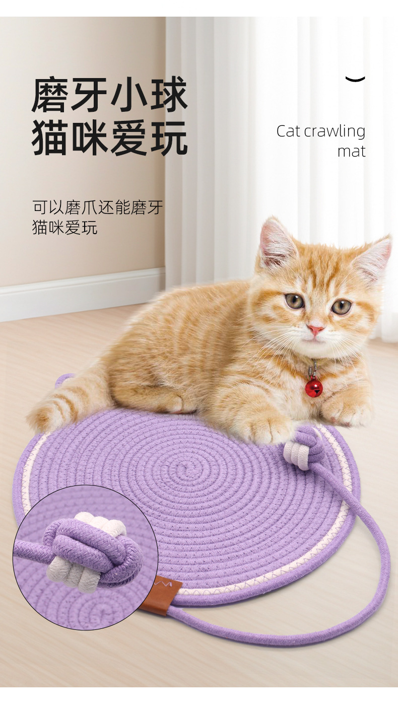 면 로프 볼로 짠 고양이 스크래치 패드가 있는 둥근 고양이 스크래치 패드, 내마모성 및 긁힘 방지 고양이 스크래치 패드, 부스러기가 없는 애완 동물 고양이 스크래치 패드스토어 가기